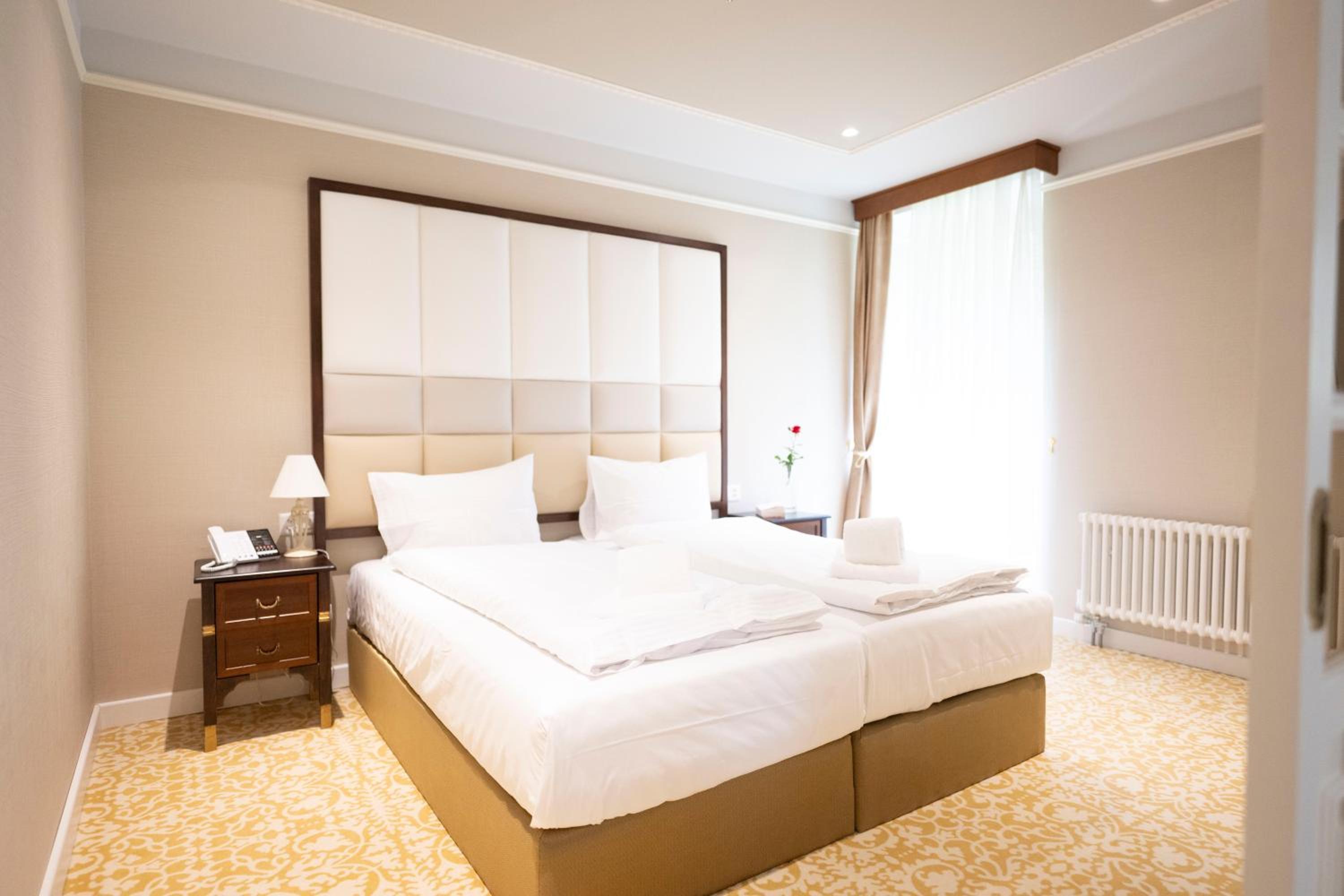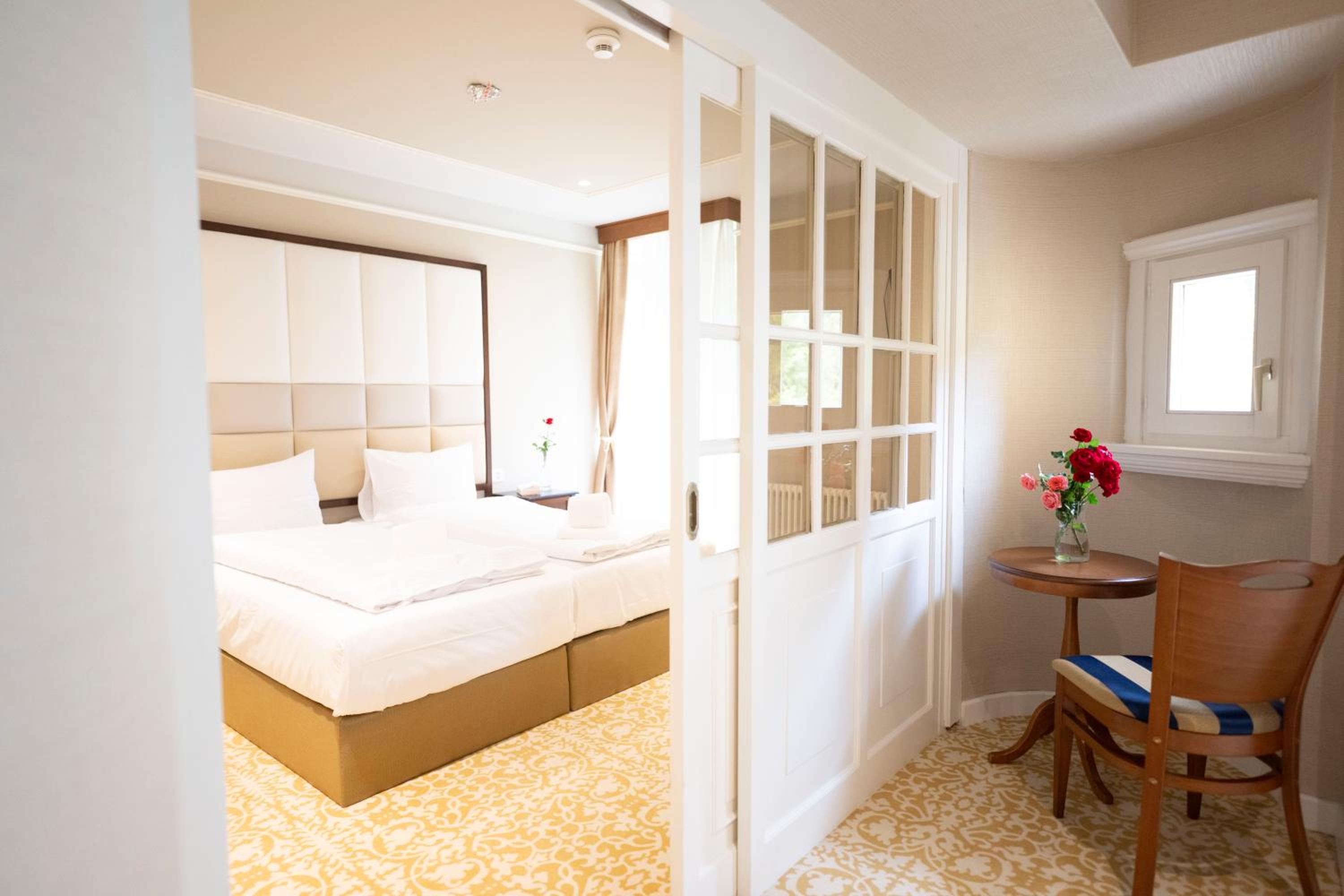 Veľkorysý hotel s príjemnou atmosférou. Veľmi pohodlné postele, krásna kúpeľňa. Prístup do bazénu a wellness 7:00-22:00. Check out o 11:00..Bohaté raňajky. Výhľad do parku a na hory má svoje čaro. Milý personál. Mali sme fajn cenu (last minute booking)