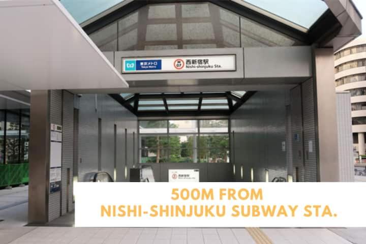 È vicino alle stazioni della metropolitana circa 500 mt. e 700/800 mt. dalla centralissima Shinjuku.