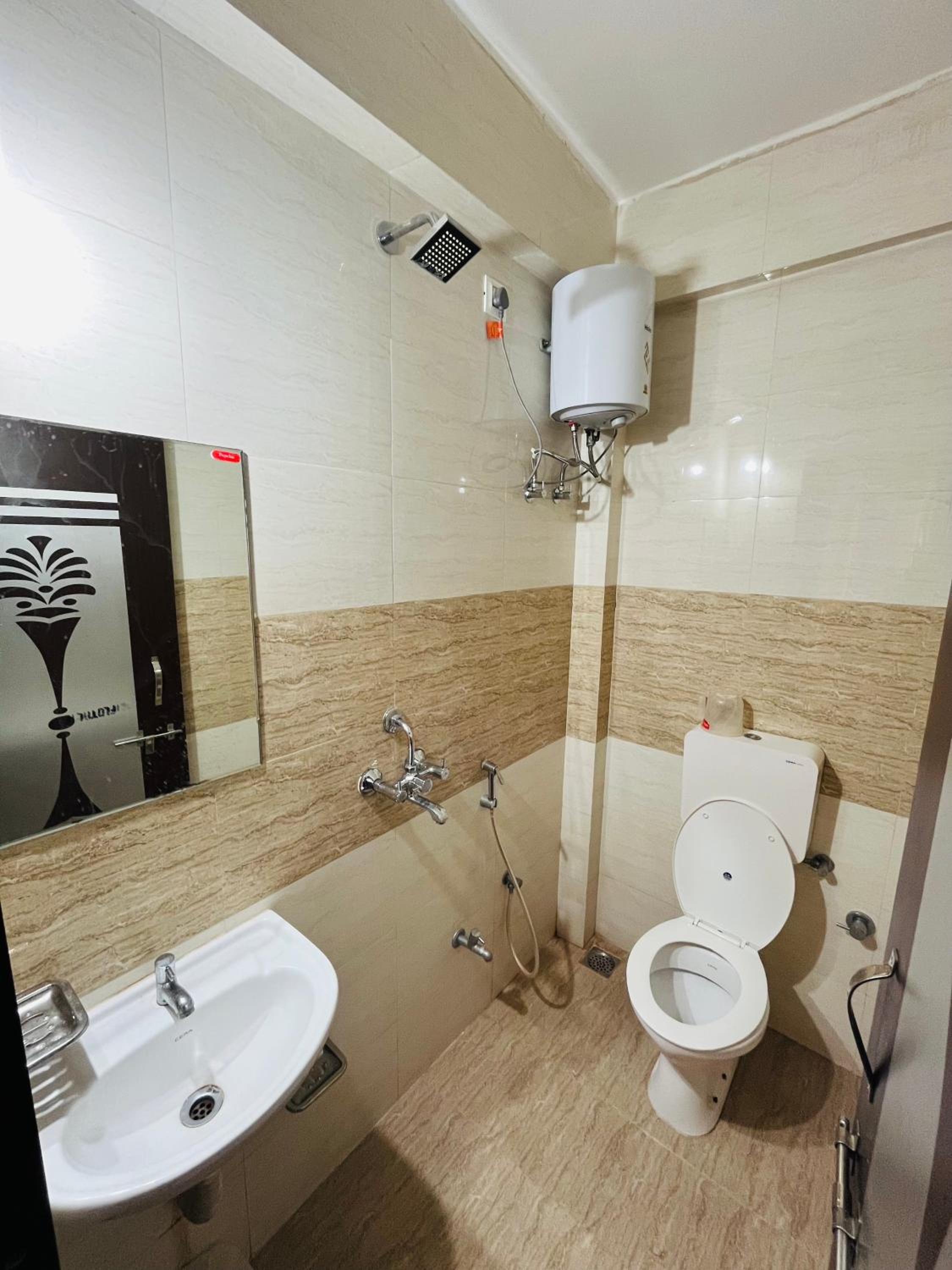 I booked a room for three people with one extra bed, but there was not much space for the extra bed. There was no hand wash, shower gel, or shampoo in the bathroom, and the bedsheets did not look clean.
