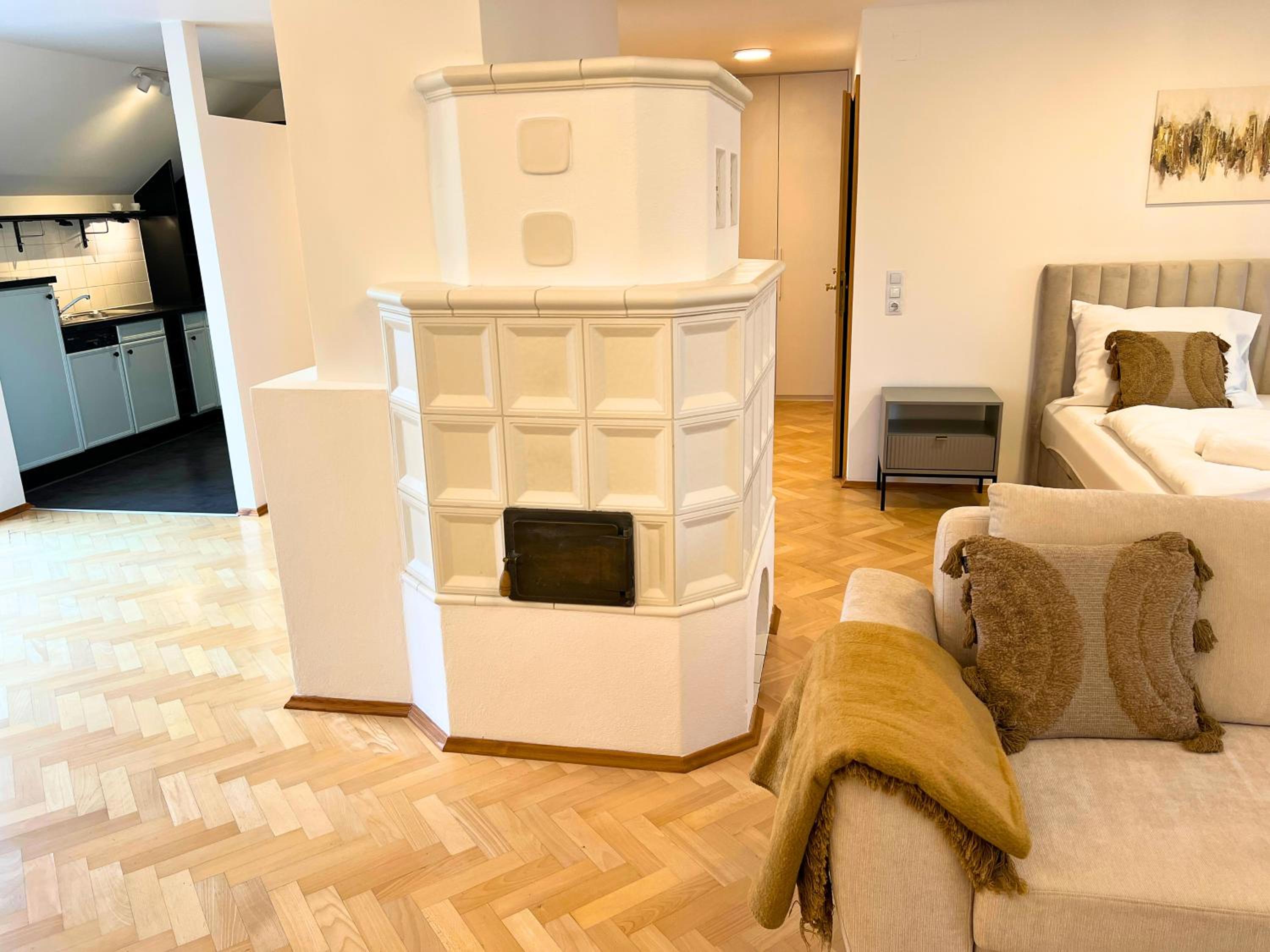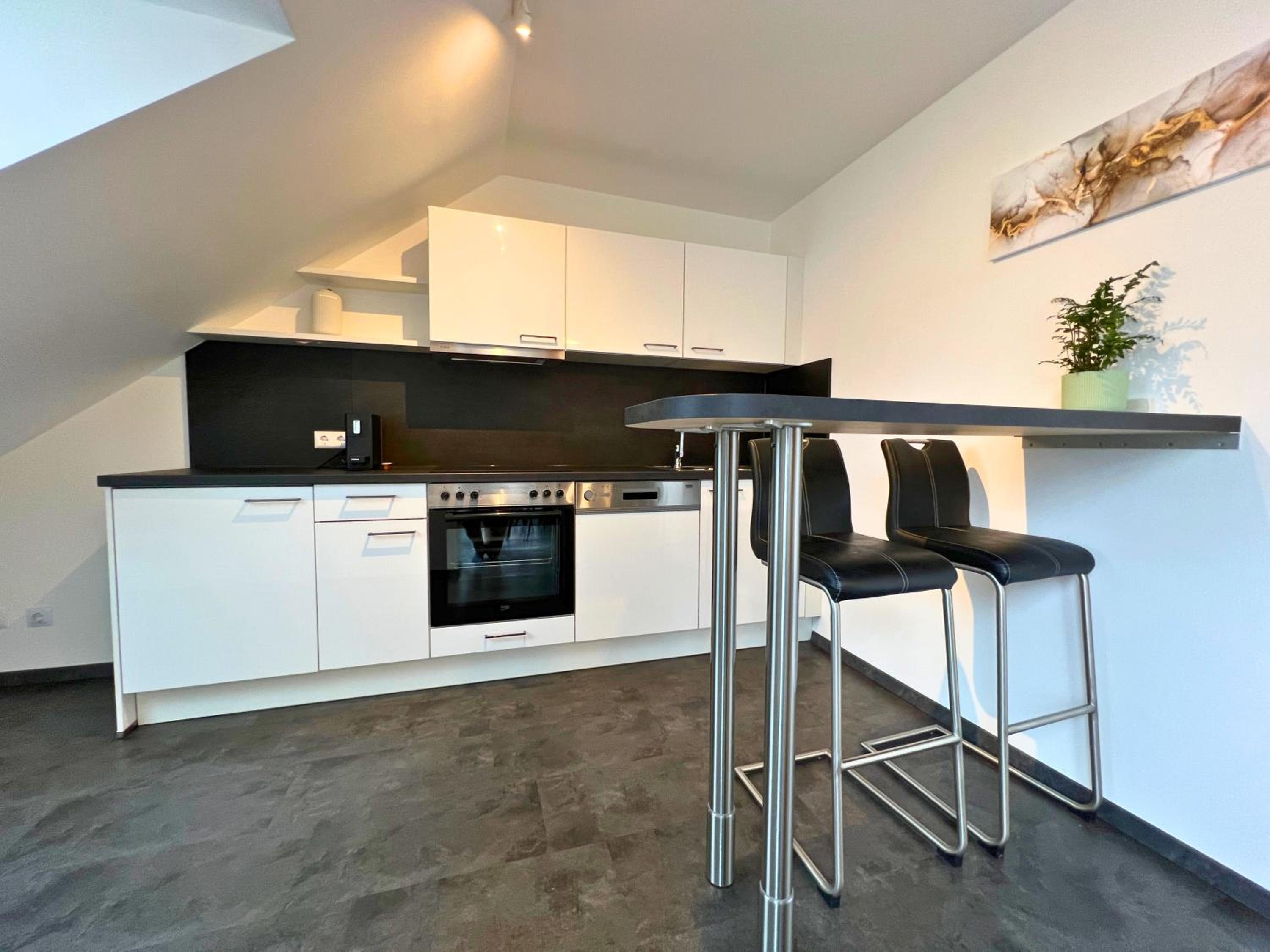 Die Lage ist zwar etwas außerhalb der City, diese aber trotzdem leicht zu Fuß erreichbar. Auf Grund des Zugangscodes ist das Übernehmen bzw. Verlassen der Wohnung völlig problemlos und ohne großen Aufwand zu bewerkstelligen.
