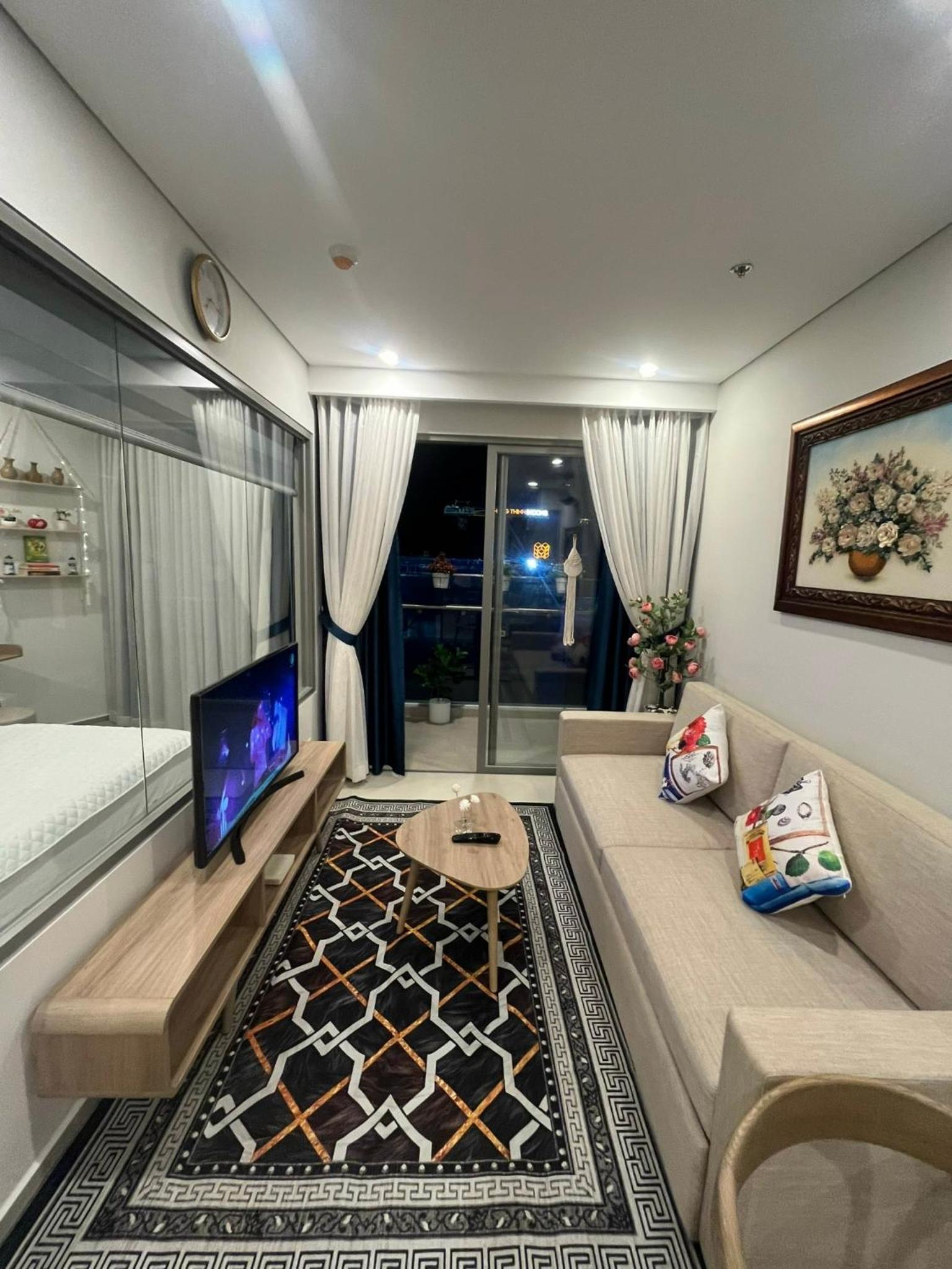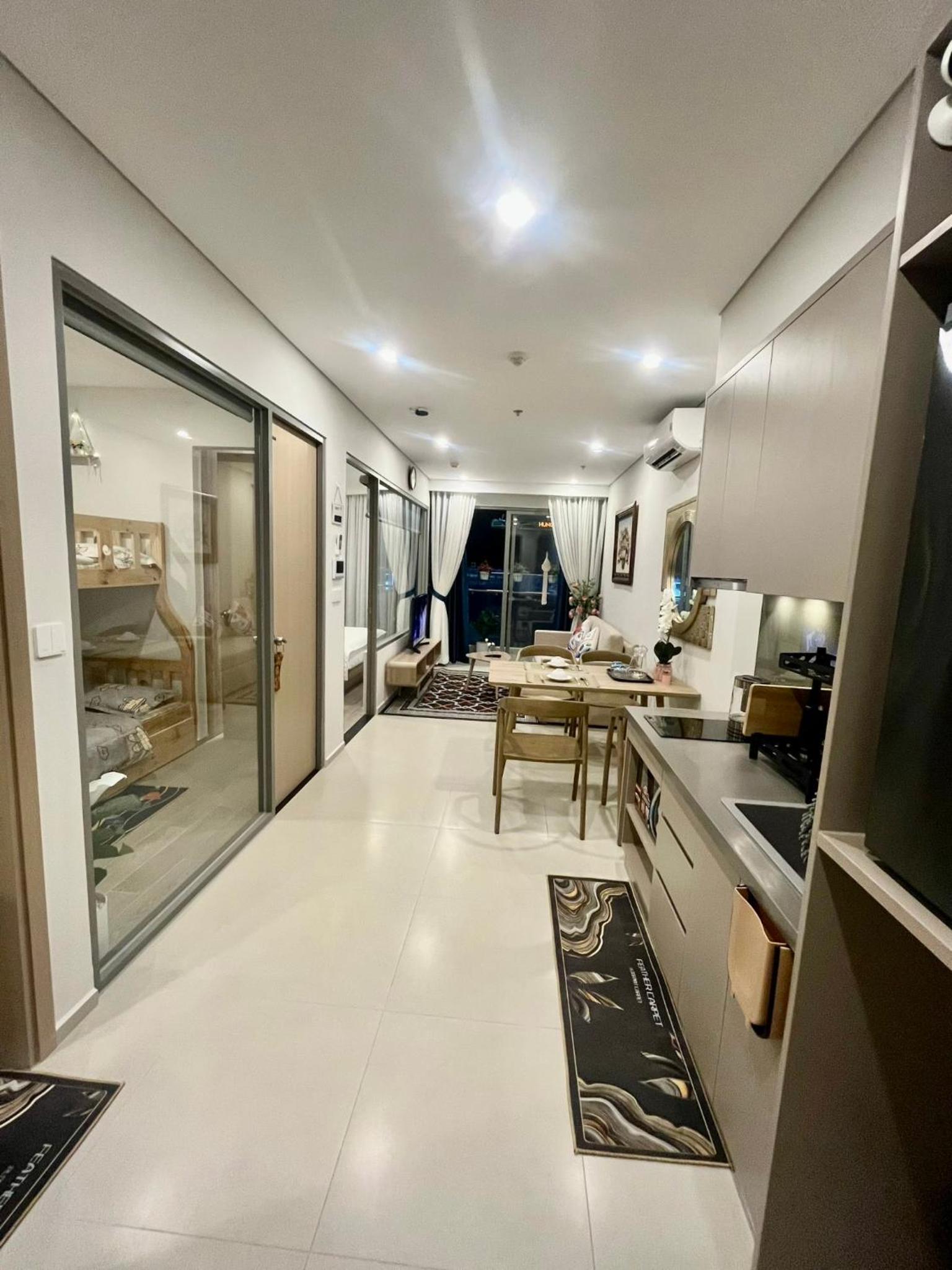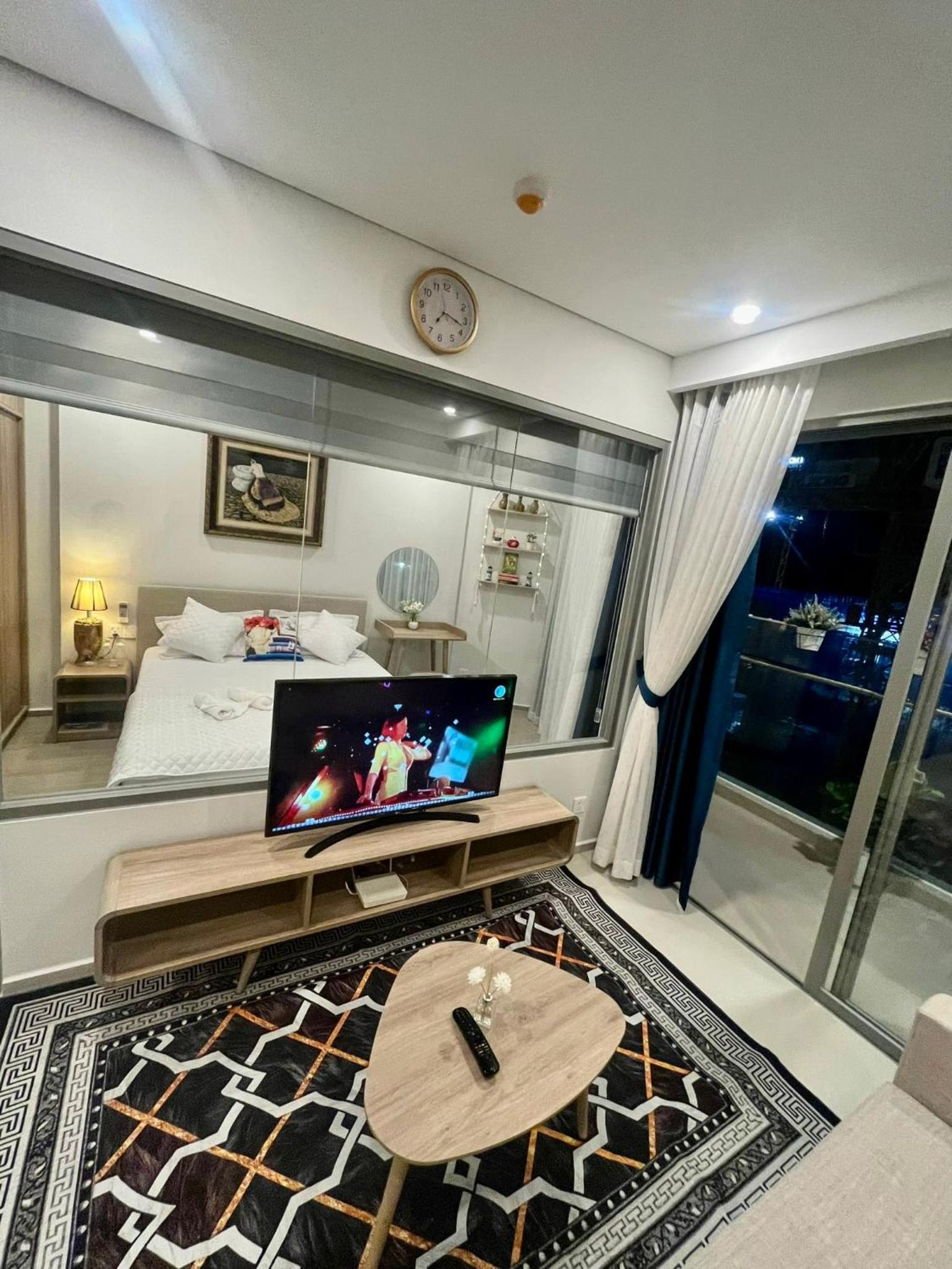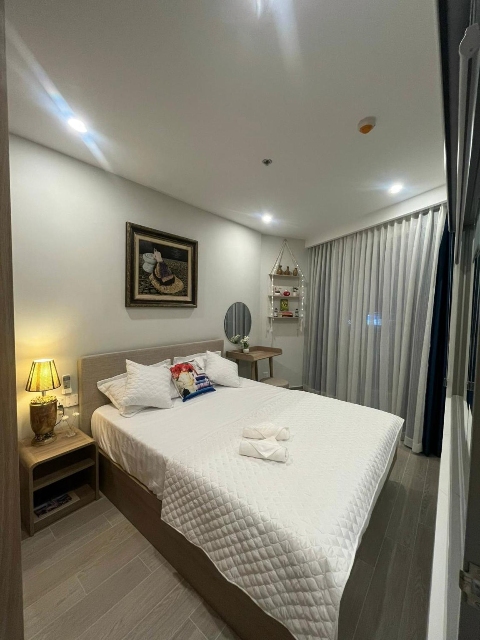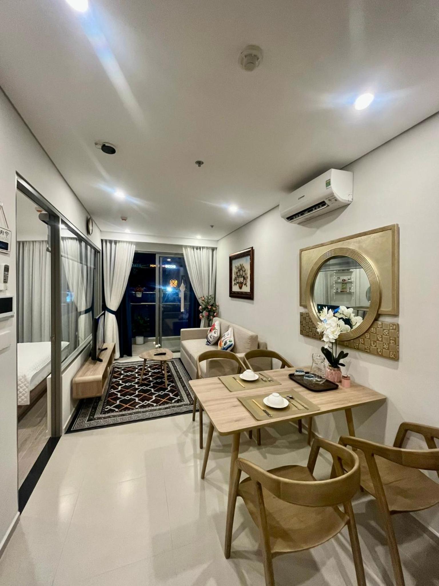 Modern Comforts: This 2-bedroom aparthotel boasts a fully equipped kitchenette, perfect for preparing meals, along with a spacious living room and a flat-screen TV for entertainment. Book now to experience the ultimate blend of luxury and convenience at Premium 2pn The Sóng 5 Sao.