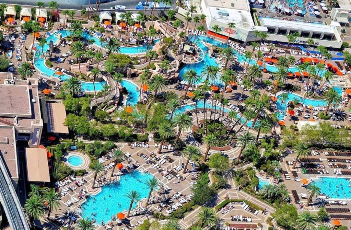 Experience the ultimate luxury in Las Vegas with a spacious aparthotel featuring a balcony, pool views, and mountain views. Enjoy modern amenities including air conditioning, a fully equipped kitchen, and comfortable living spaces.