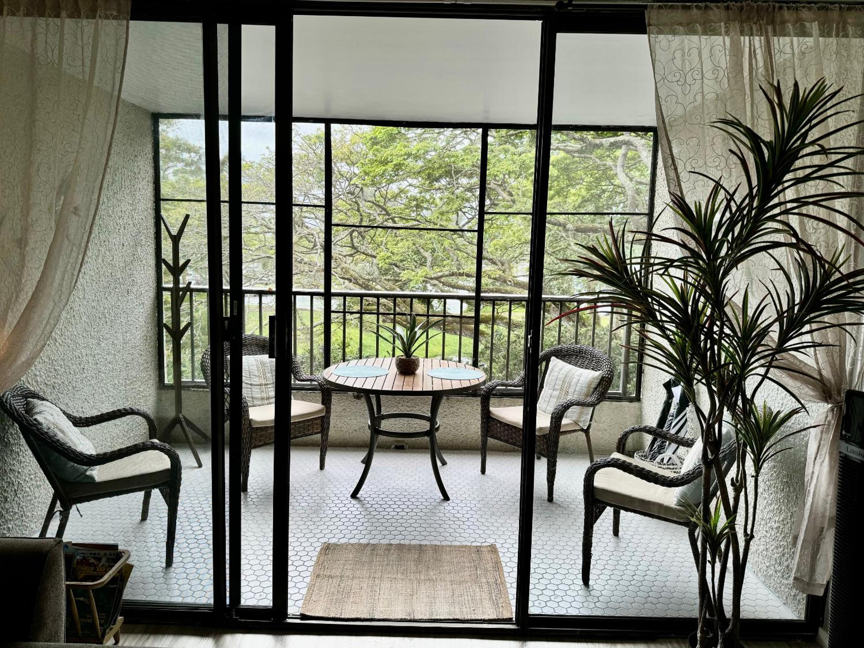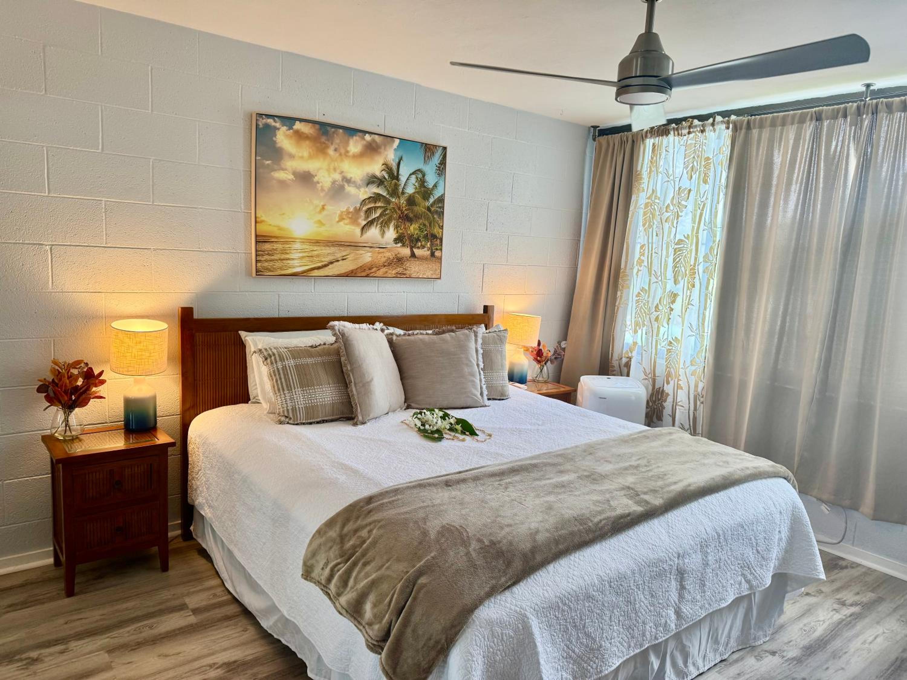 The apartment was nice, well stocked kitchen and nicely decorated. We were disappointed to find out that only the main bedroom had an air conditioner in it. The street traffic and noise made it hard to enjoy the lanai and since the second bedroom didn’t have A/C our kids had a hard time sleeping with the noise and heat.