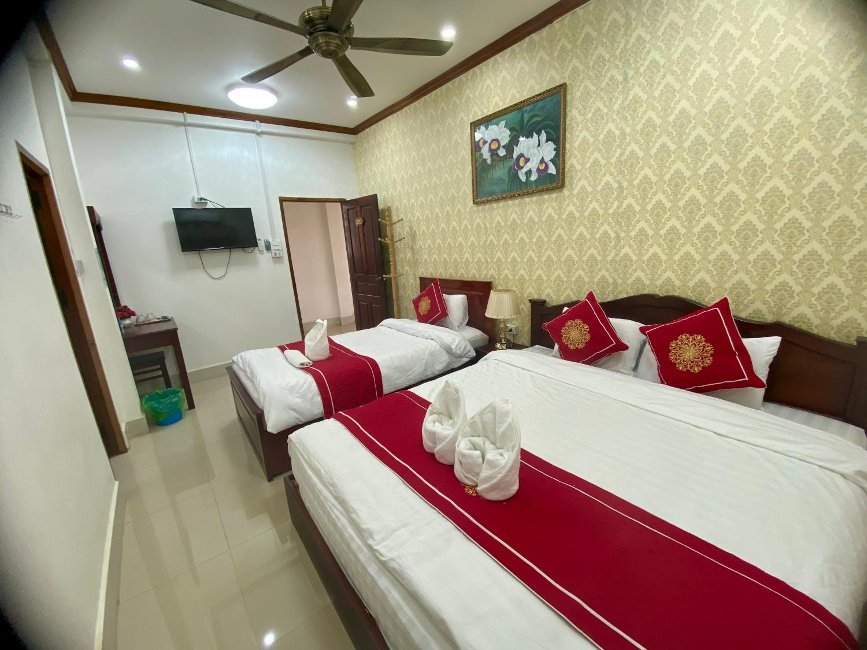 The manager was so friendly and helpful. The bed comfy everything clean. Good breakfast included. Great location 5 mins from night market 2 mins from Mekong. Super quiet