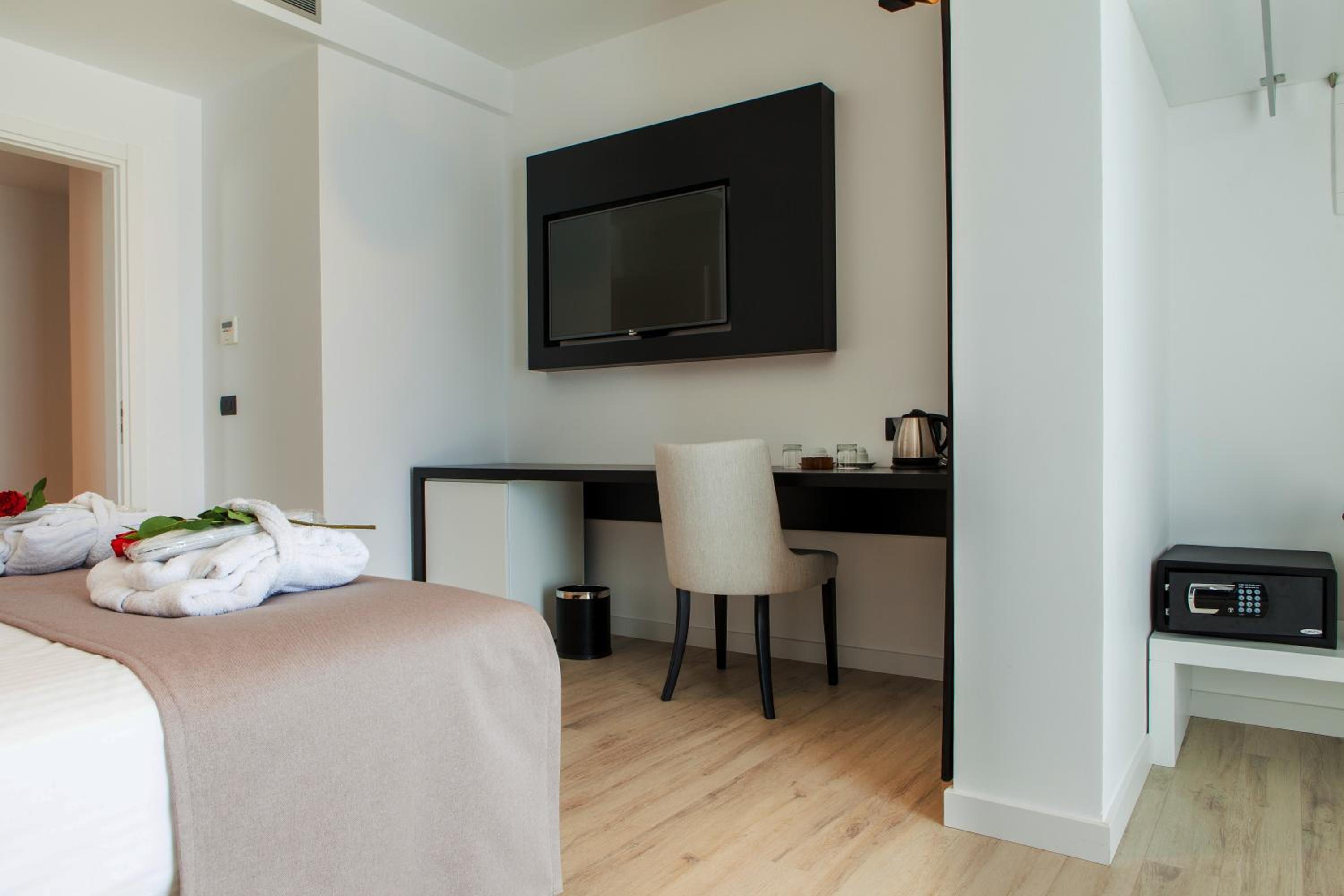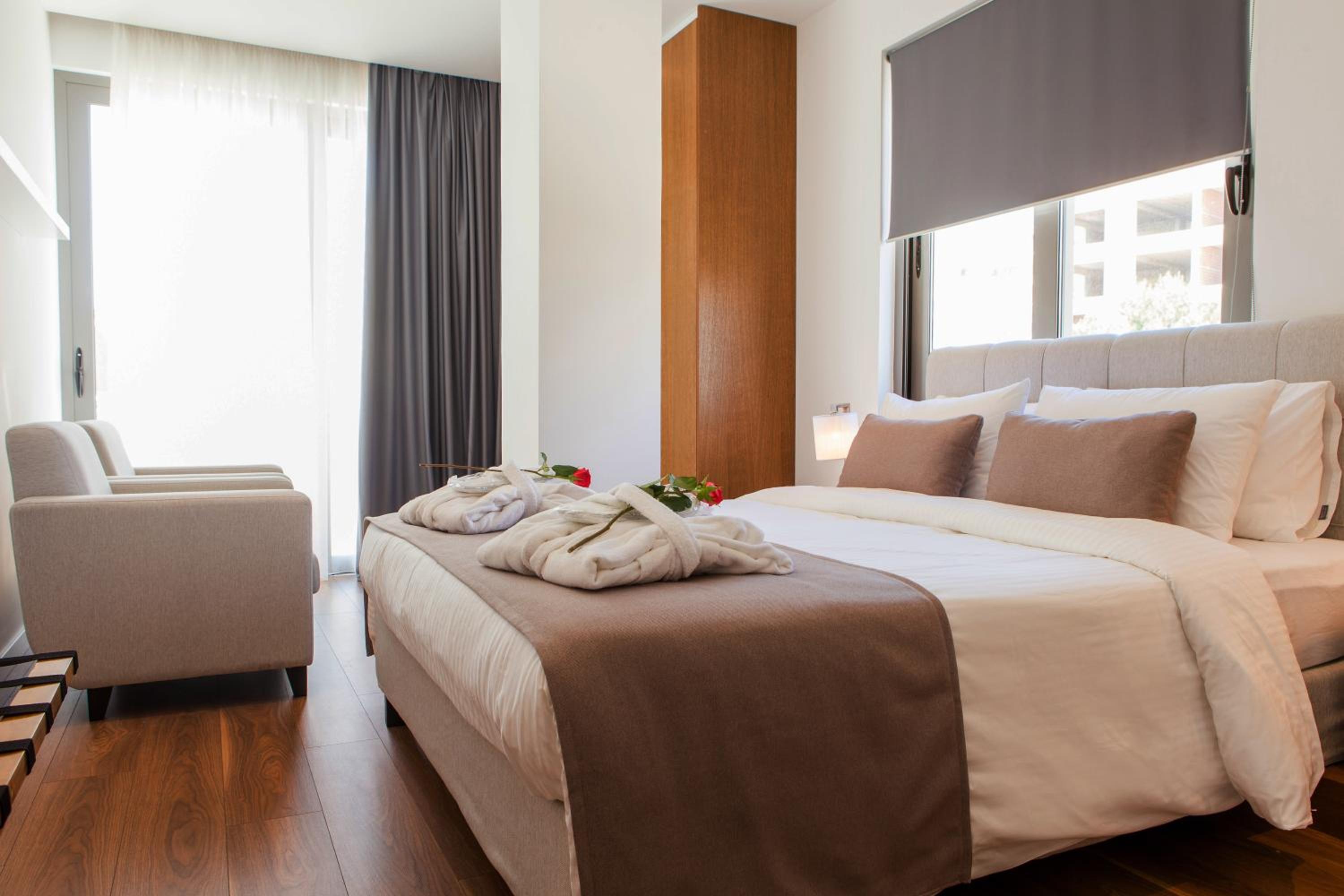 Nous avons passé trois jours parfaits dans cet hôtel, pour un anniversaire de couple. Un grand merci à Athina, la manager, qui nous a fait la surprise d’un surclassement en apprenant l’occasion : une belle chambre décorée spécialement, avec un verre de vin et des fruits frais à notre arrivée.