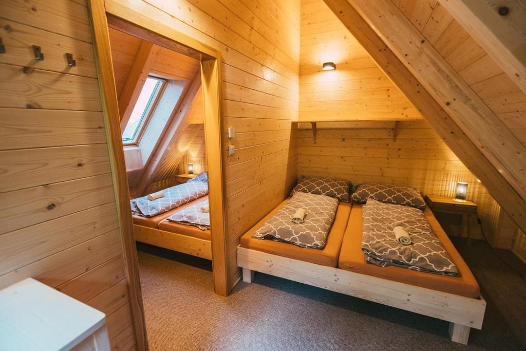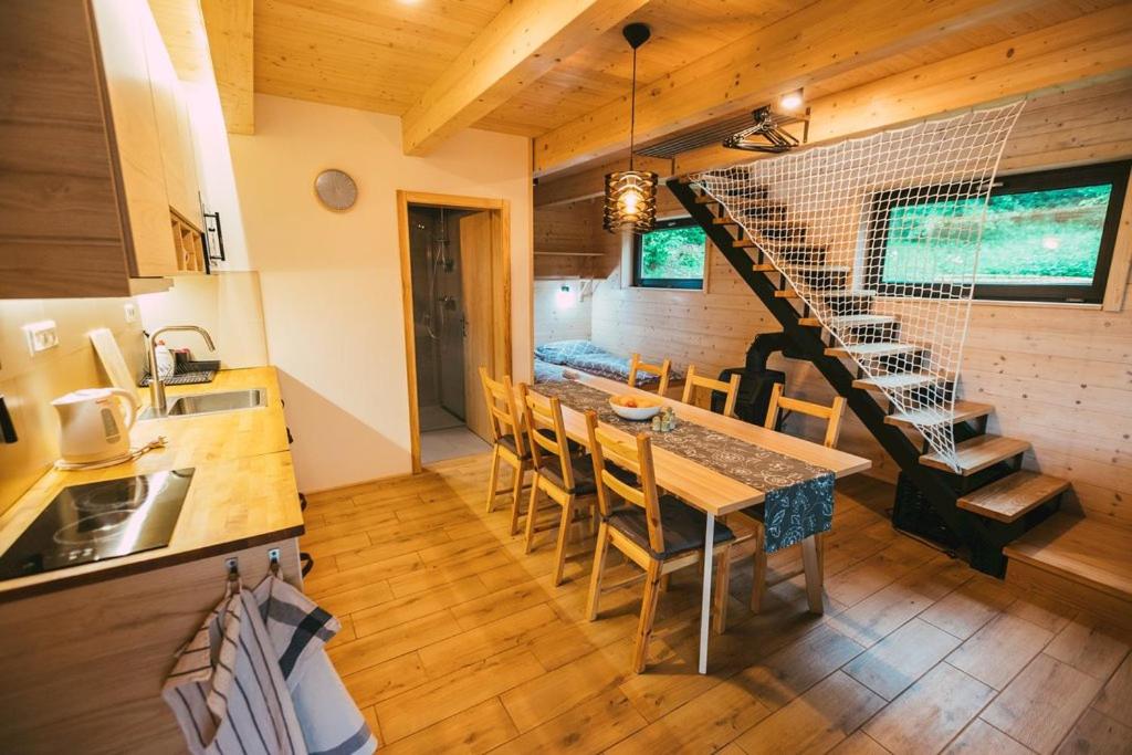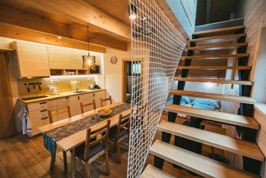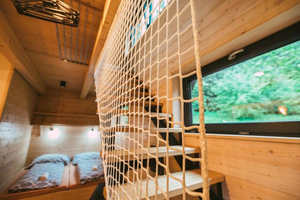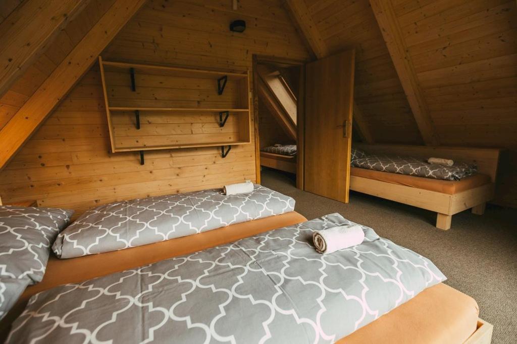 Warto zwrócić uwagę, że domek jest podzielony na dwie oddzielne części, co może być utrudnieniem gdy są w nim 2 oddzielne grupy ludzi.