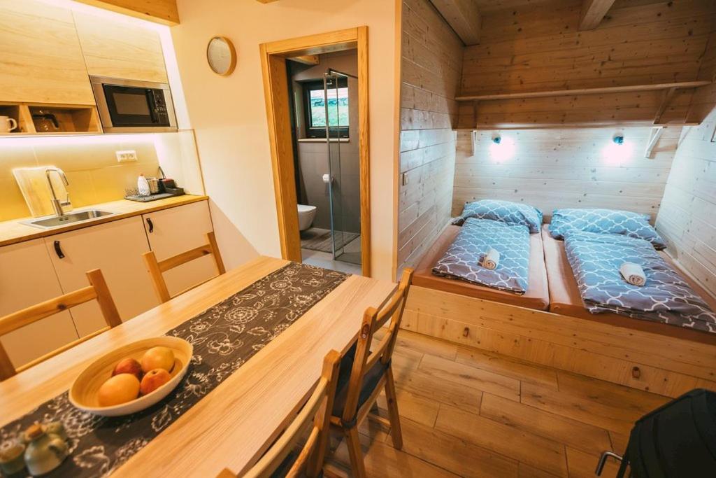 Pre 7ludi iba jedna kupelna a WC bolo trochu malo a od cesty bolo priamo vidiet dovnutra chaty cez chodbu-postacili by nejake obdobne zaluzie ako boli na kupelni. Ale inak absolutne niet co vytknut.