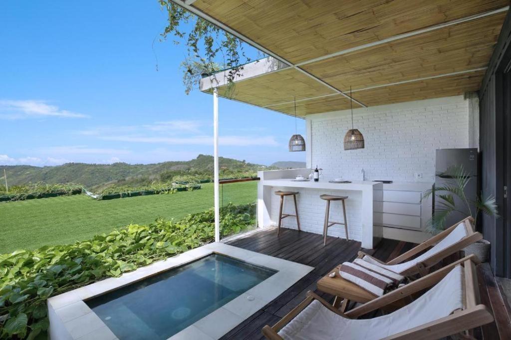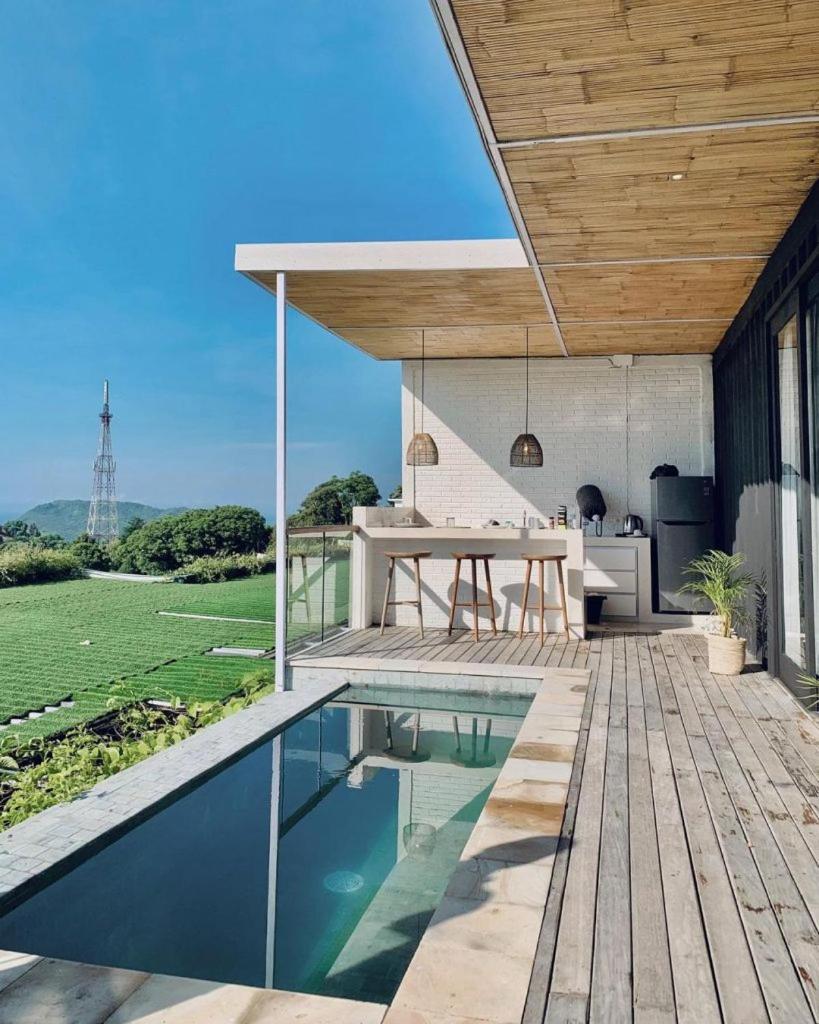 Enjoy the serene garden views and unwind on the balcony at Bunglow Pandan Dure.