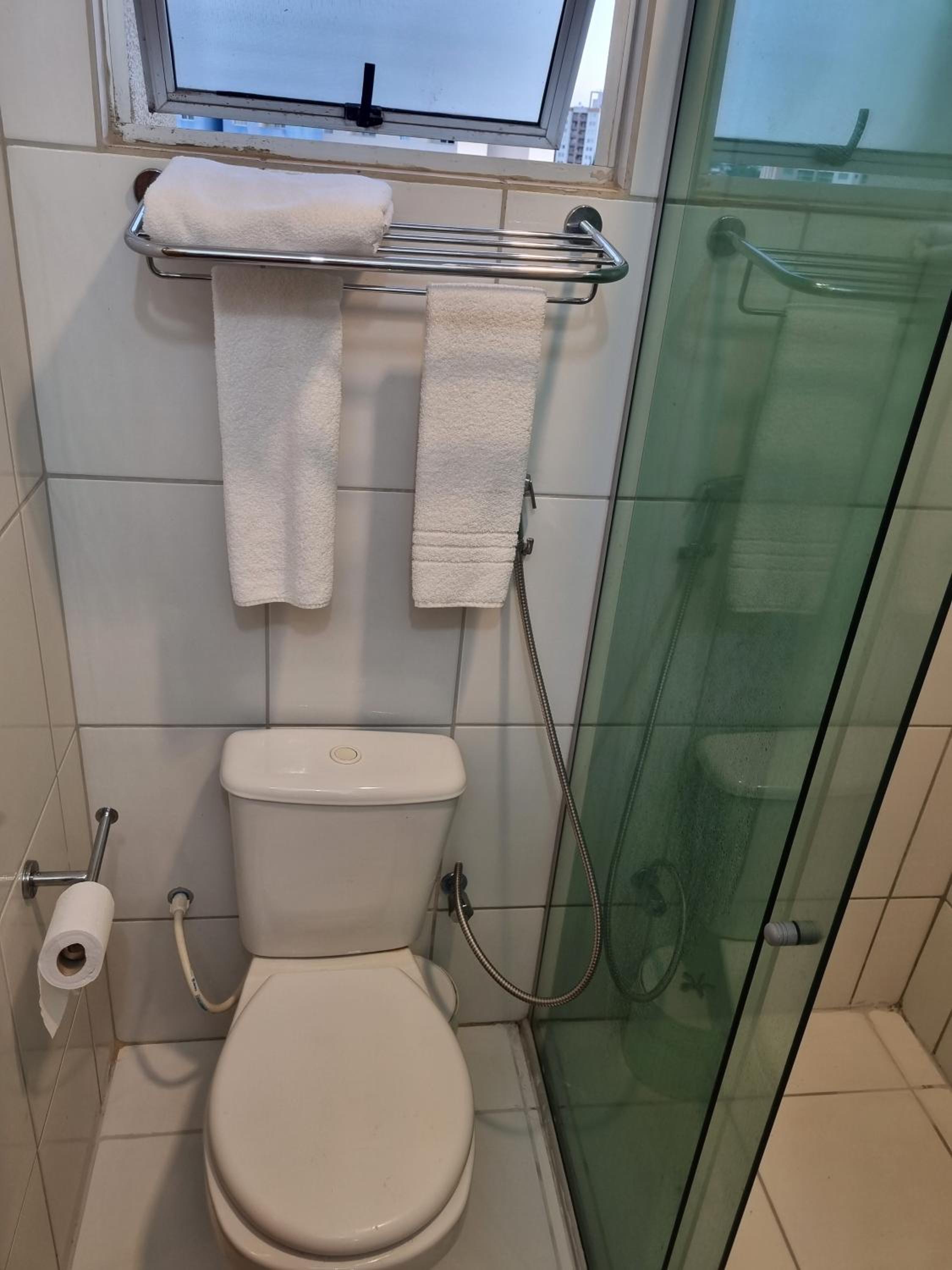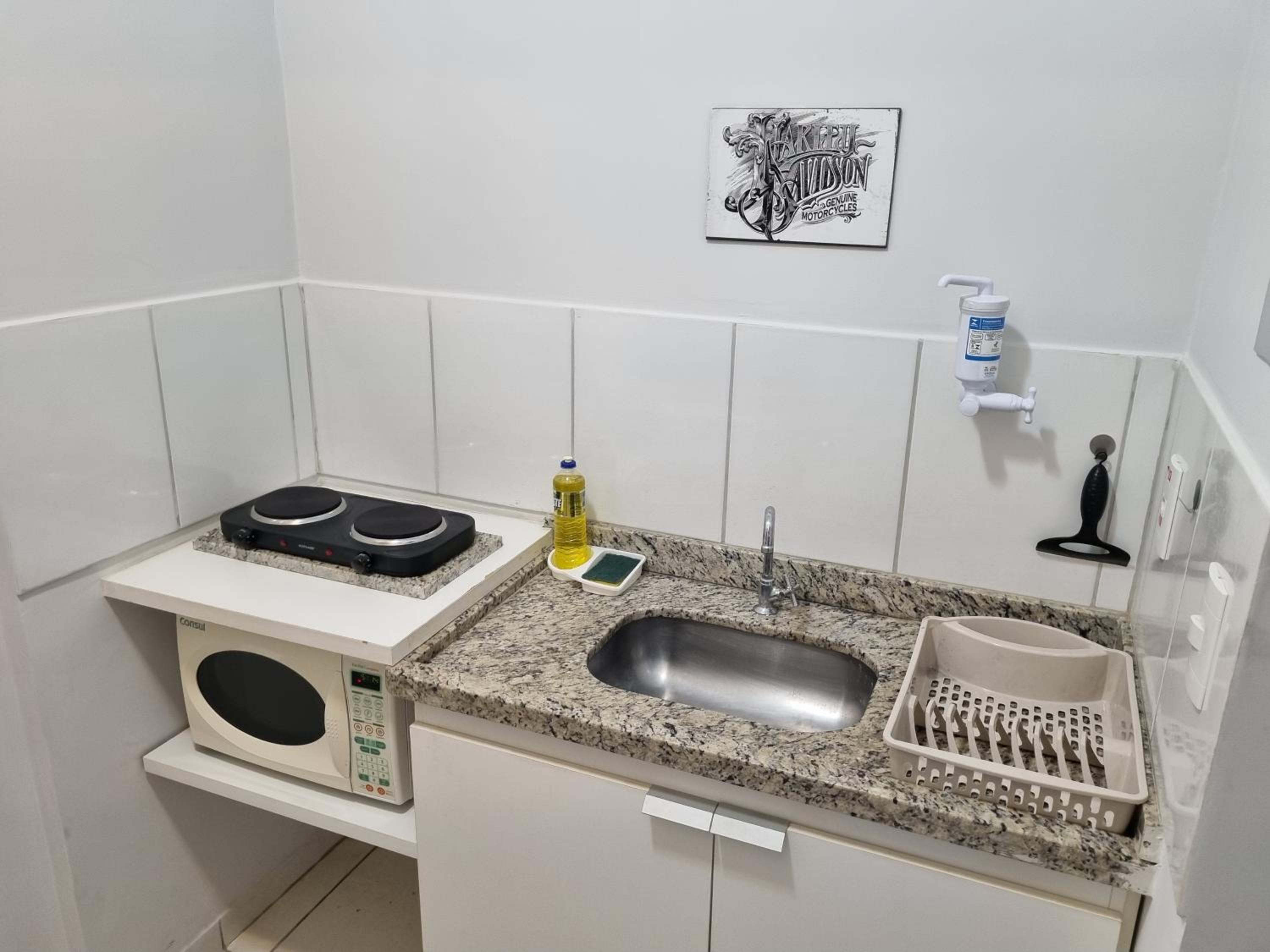 Possui todos os utensílios de cozinha necessário, fogão elétrico funcionando as duas chapas, panela de arroz elétrica, microondas, cafeteira, copos, pratos e talheres em quantidade ótima. Disponível pano de chão para secar os pés, pano de pia, toalhas e lençóis branquinhos, além dos travesseiros. Chuveiro potente e com ótima queda de água, varal grande para secar as roupas, sofá-cama super confortável. Eu amei todo o apartamento e achei super limpo. Tinha muitas tomadas para utilização.
