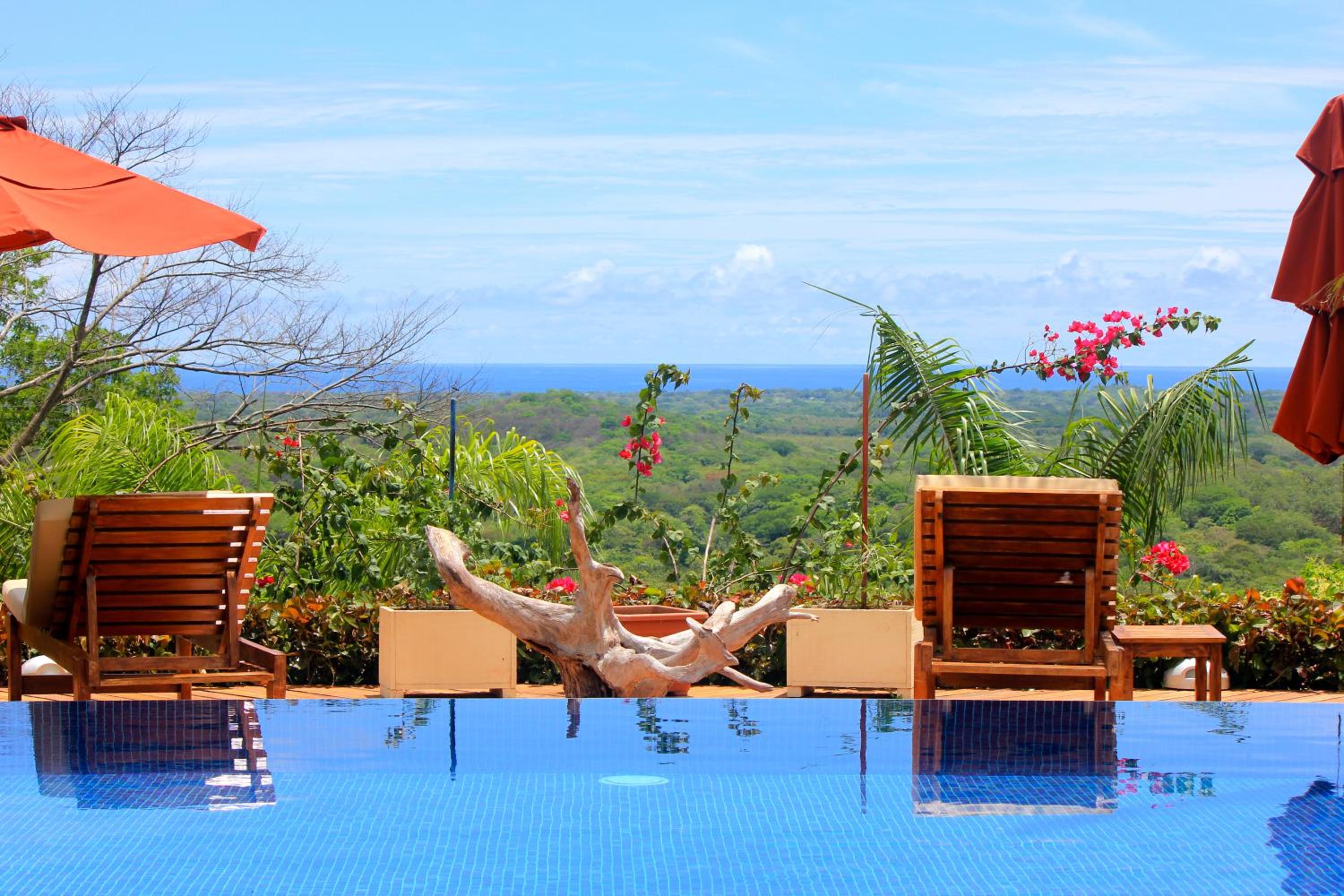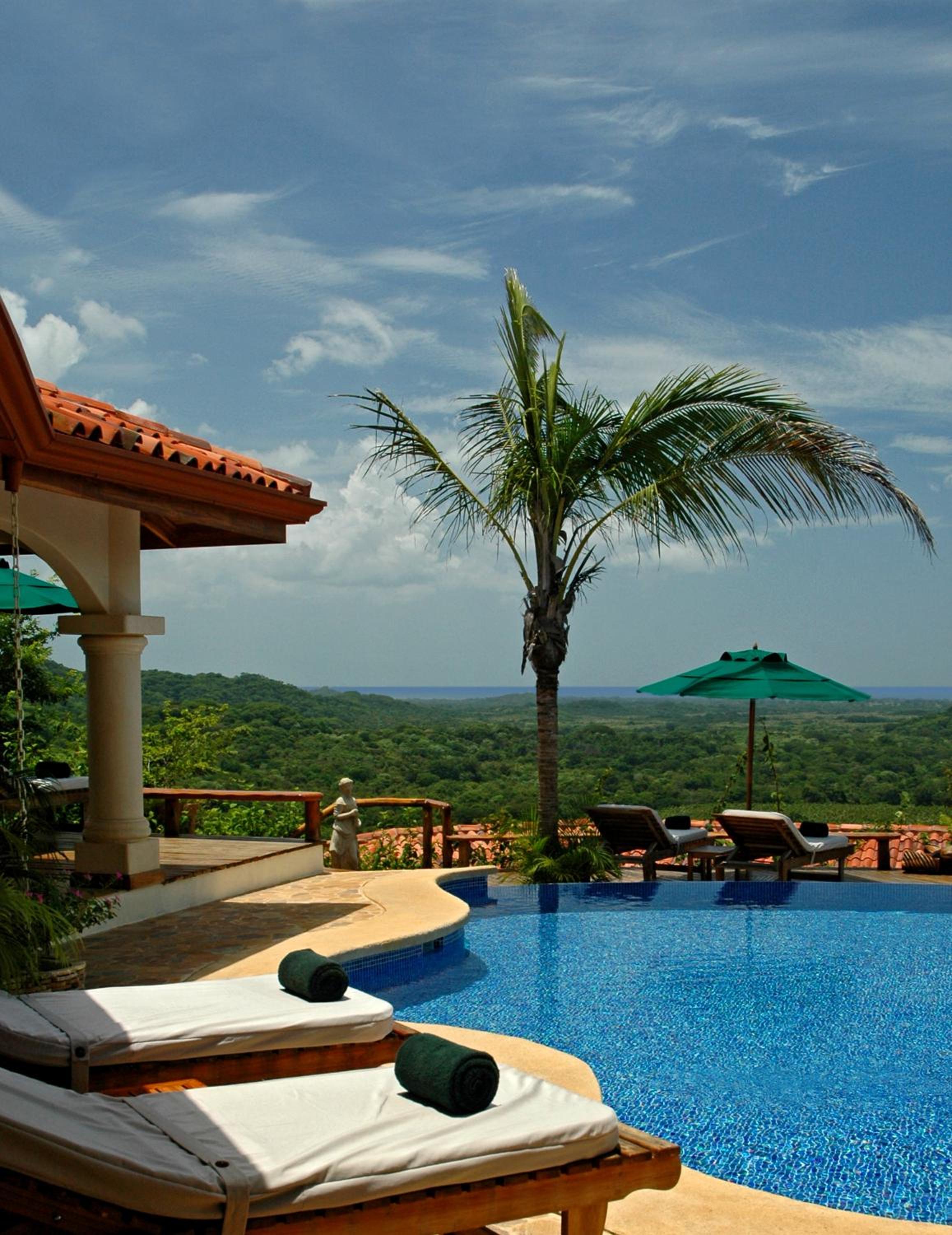 Los Altos de Eros offers a luxurious experience with a large swimming pool overlooking the Pacific Ocean, a spa, and a wellness center. The rooms feature air conditioning, terraces, and picturesque views of the pool, forest, or oceanfront.