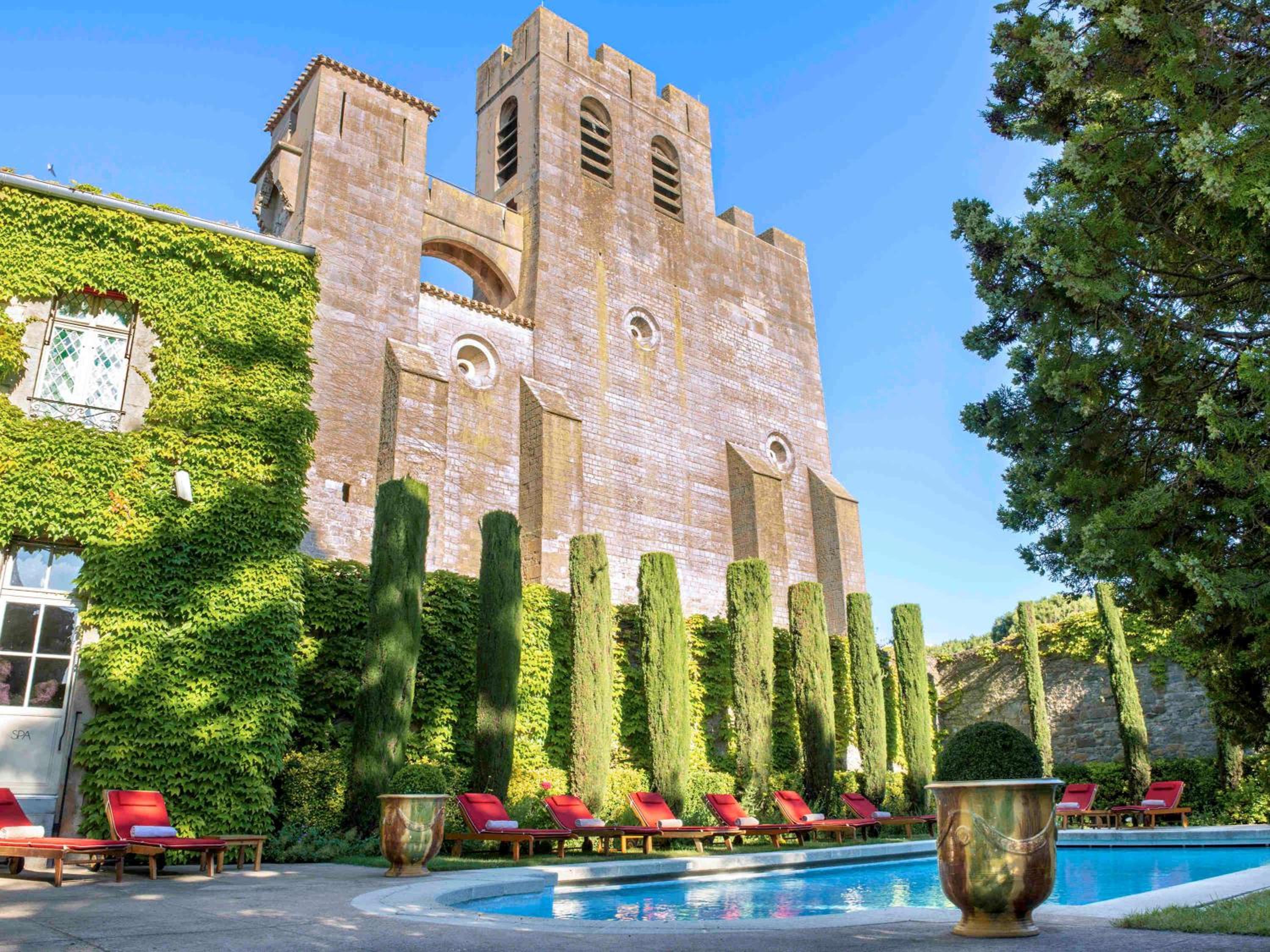Enjoy the serene gardens and outdoor pool offering stunning views of Saint Nazaire Basilica at Hotel de la Cite Carcassonne.