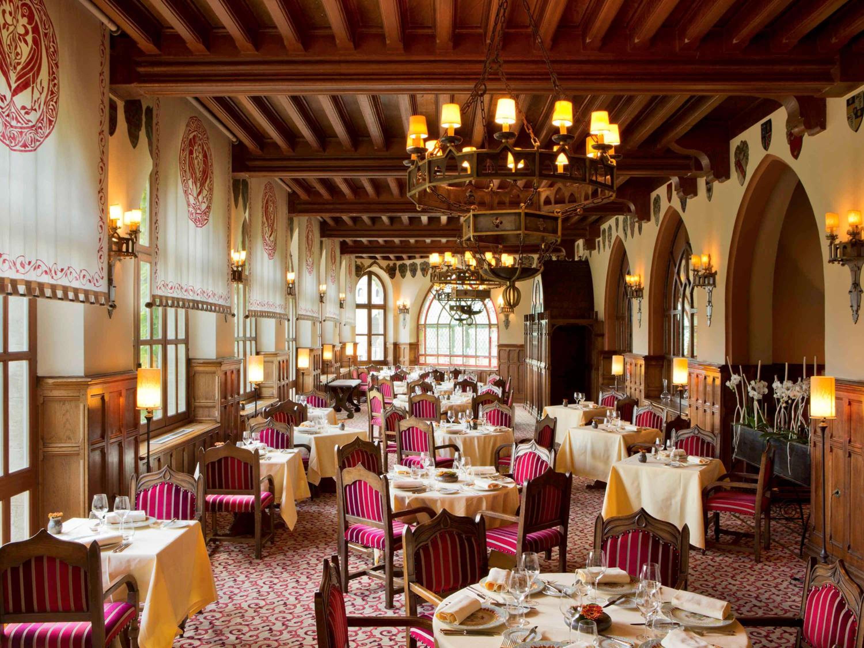Indulge in homemade pastries for breakfast, savor regional dishes in the brasserie, or dine at the Michelin-starred Barbacane restaurant. Don't miss out on the garden bar offering tapas with a view of the ramparts during summer.