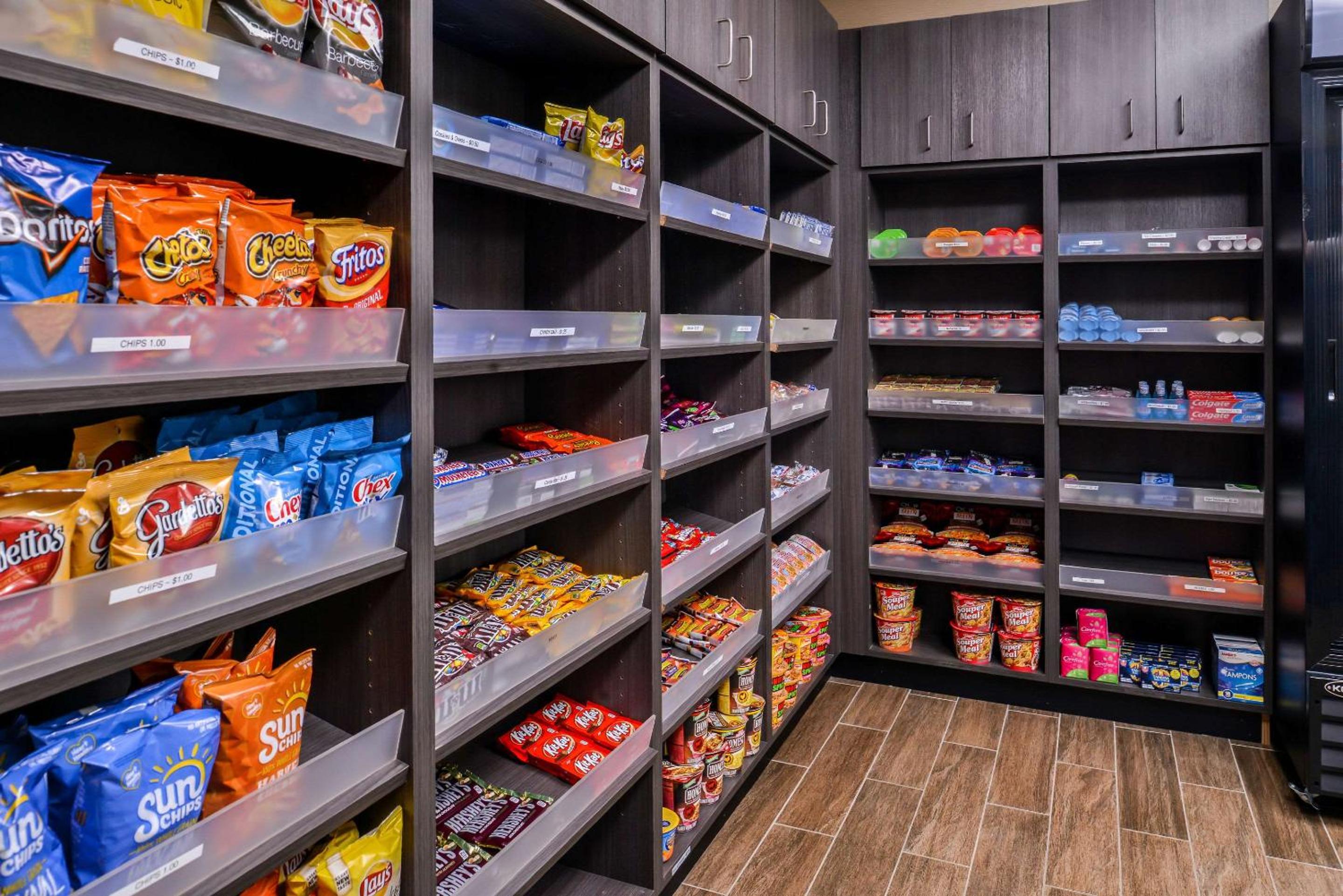 No self-service vending machines. Snacks/drinks were in a room that required a key from the office.