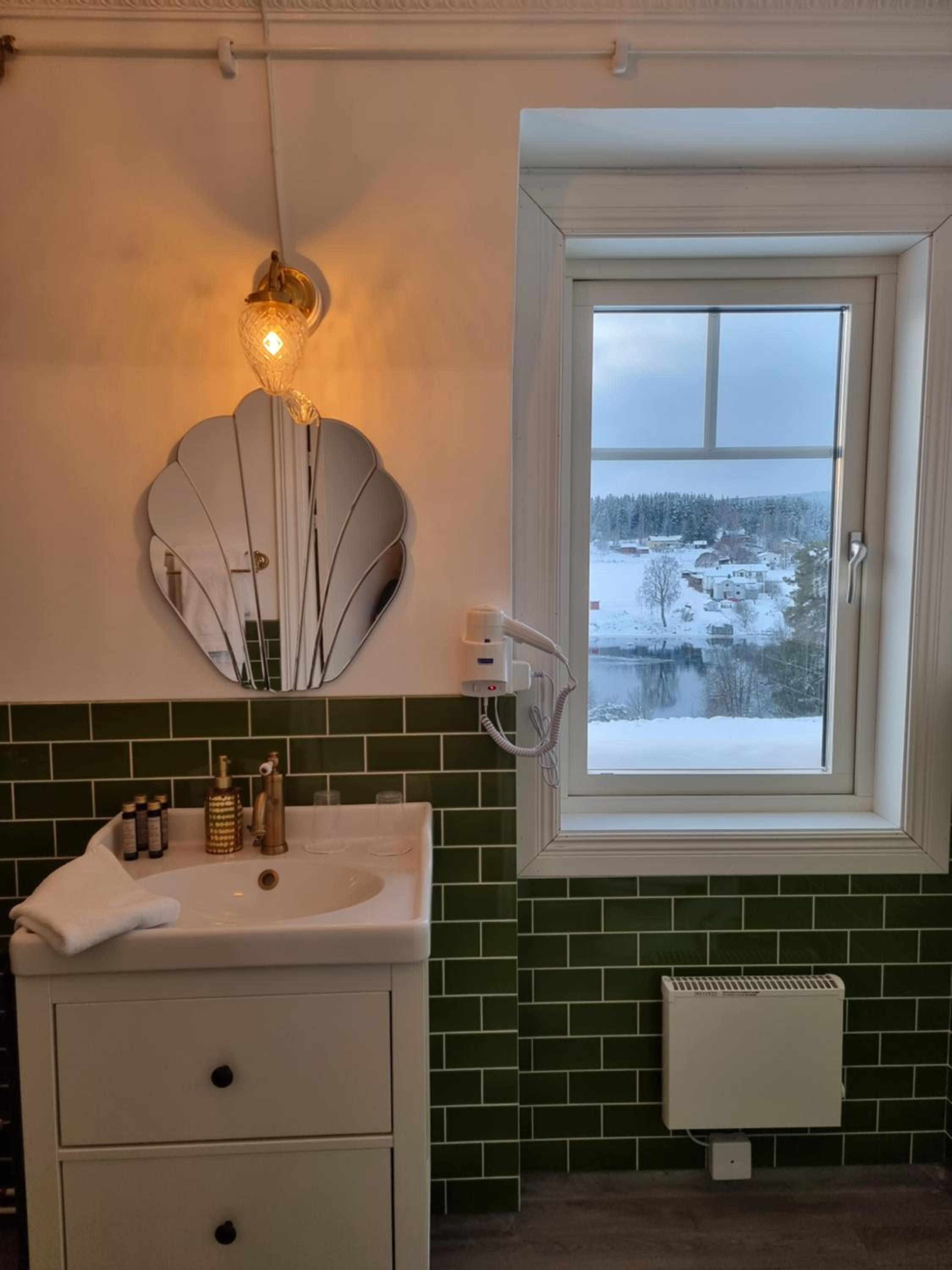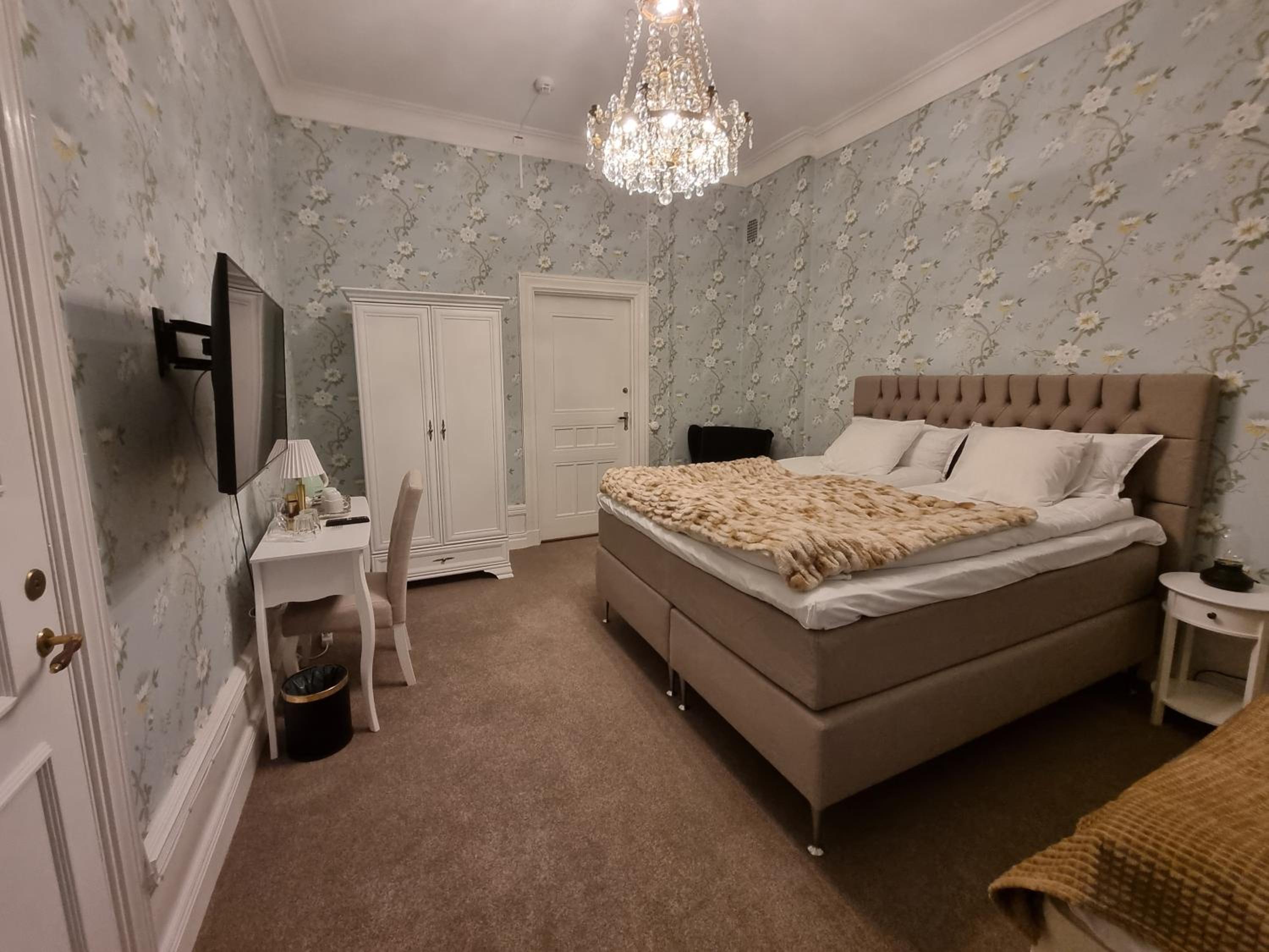 Väldigt fint renoverat rum och badrum och sköna sängar. Herrgården i övrigt var väldigt charmig. Frukosten var helt ok, det fanns det viktigaste.