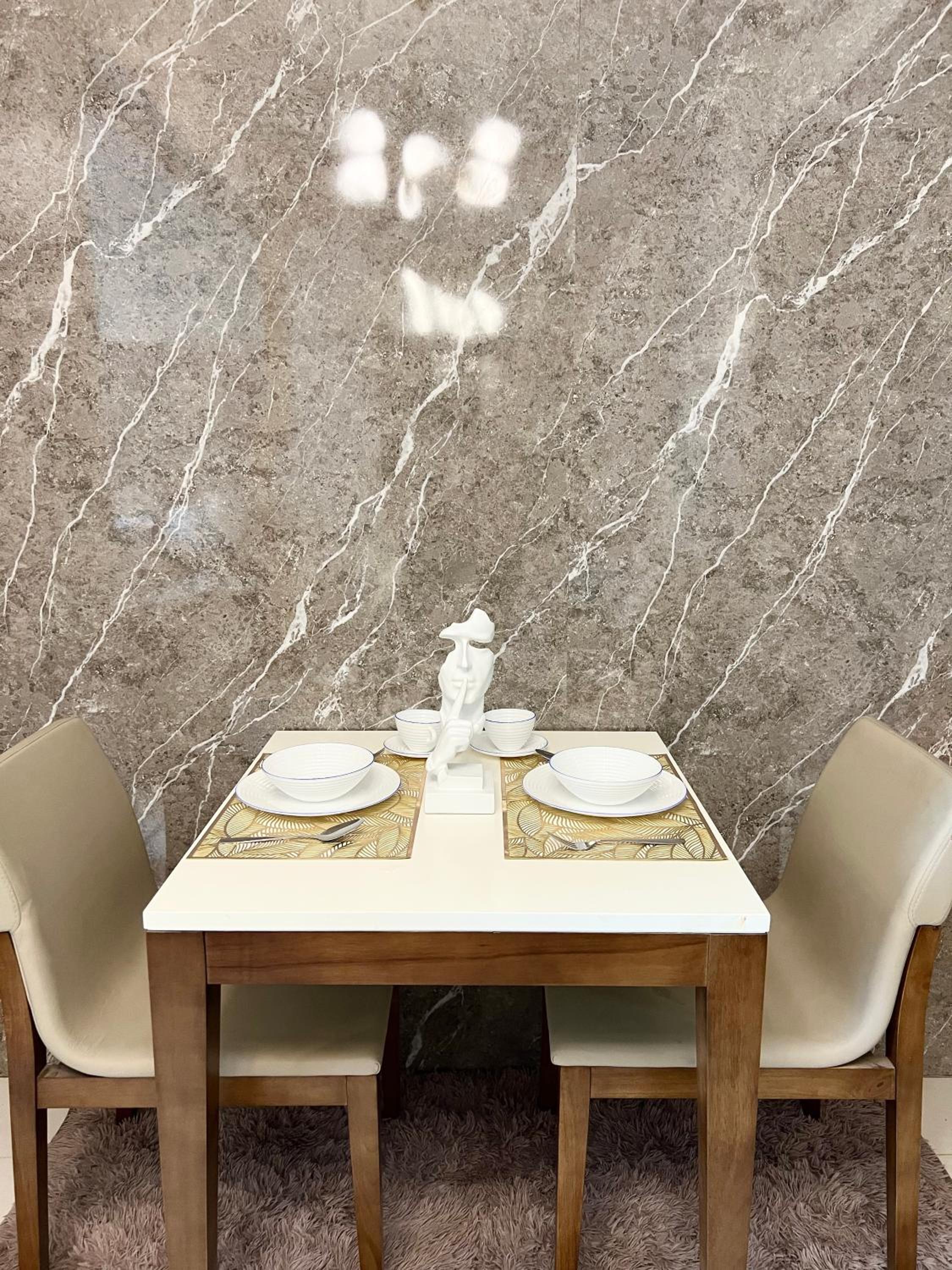 The apartment is very nice, the kitchen table was already nicely prepared with plates and ready for the food and drinks to be put on. The apartment vibe is very nice, stylish accessorized, clean, quite comfortable bed and pillows. The host is very quick in replying and is there to assist in need.