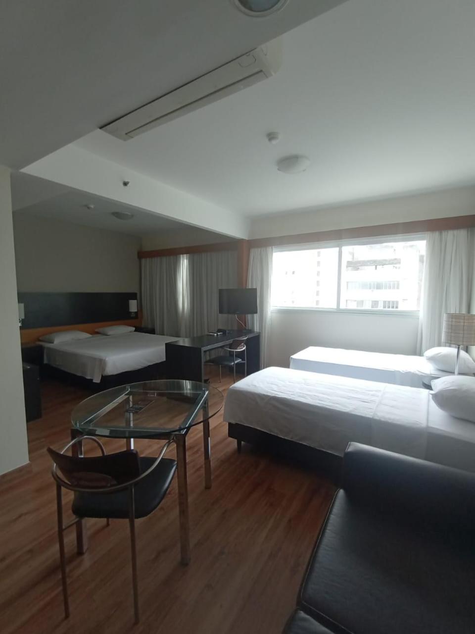Acomodação excelente!! Camas confortáveis, chuveiro muito bom, quarto espaçoso. Possui filtro na bancada da mini cozinha. A equipe do local é muito educada e solícita. A academia é básica, mas com aparelhos bem cuidados. Boa localização do flat.