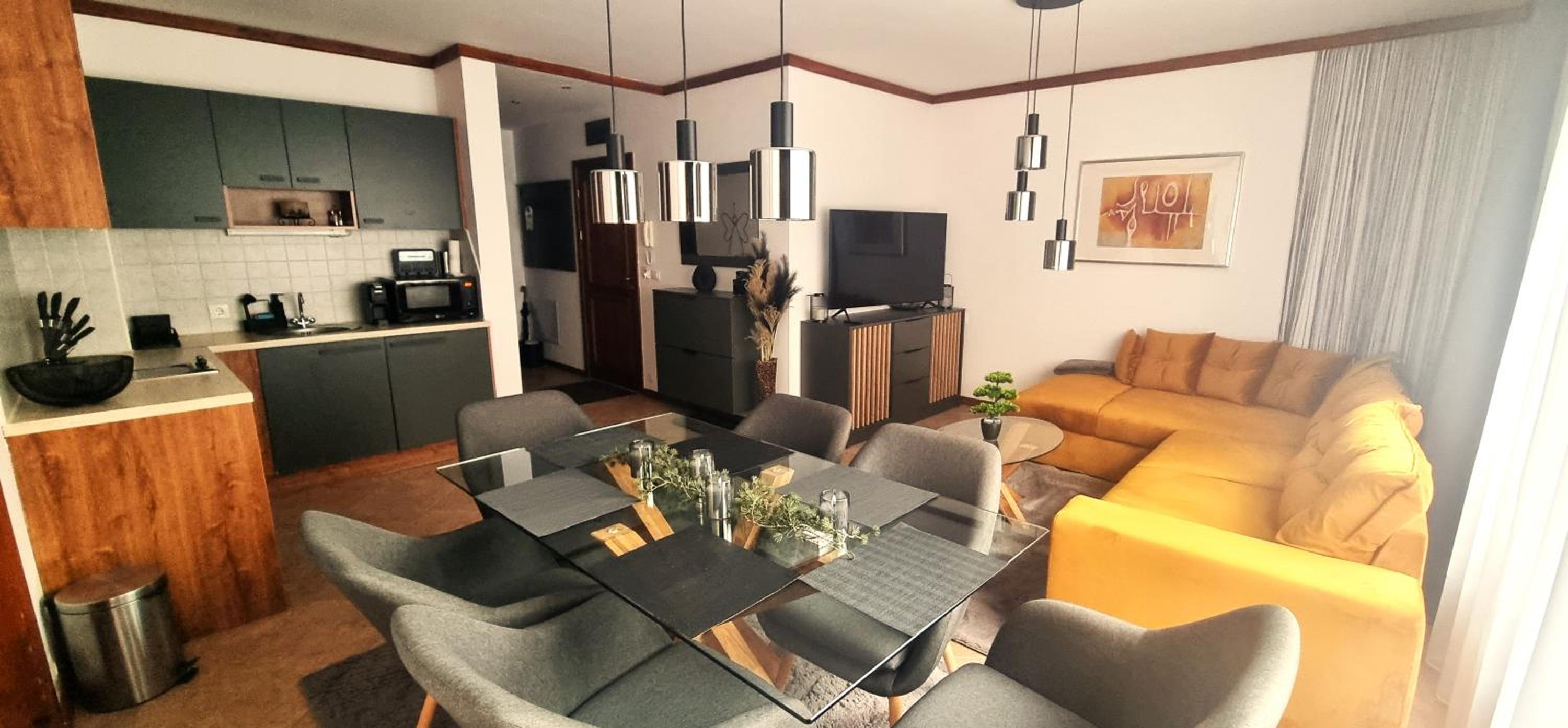 The apartment was great. Very comfortable, very practical and squeaky-clean! The kitchen has everything needed even for long stays. All cooking tableware, utensils, spices. Full oven, microwave, dishwasher (which we didn't need to use), coffee machine. There are different types of coffee capsules, different types of tea, which shows thoughtfulness about the guests' taste preferences. And we had a lovely compliment from the owners which we enjoyed a lot. You can feel the attention to details both at the place and the host's hospitality. We definitely recommend it to everyone looking for a cozy place that feels like home.