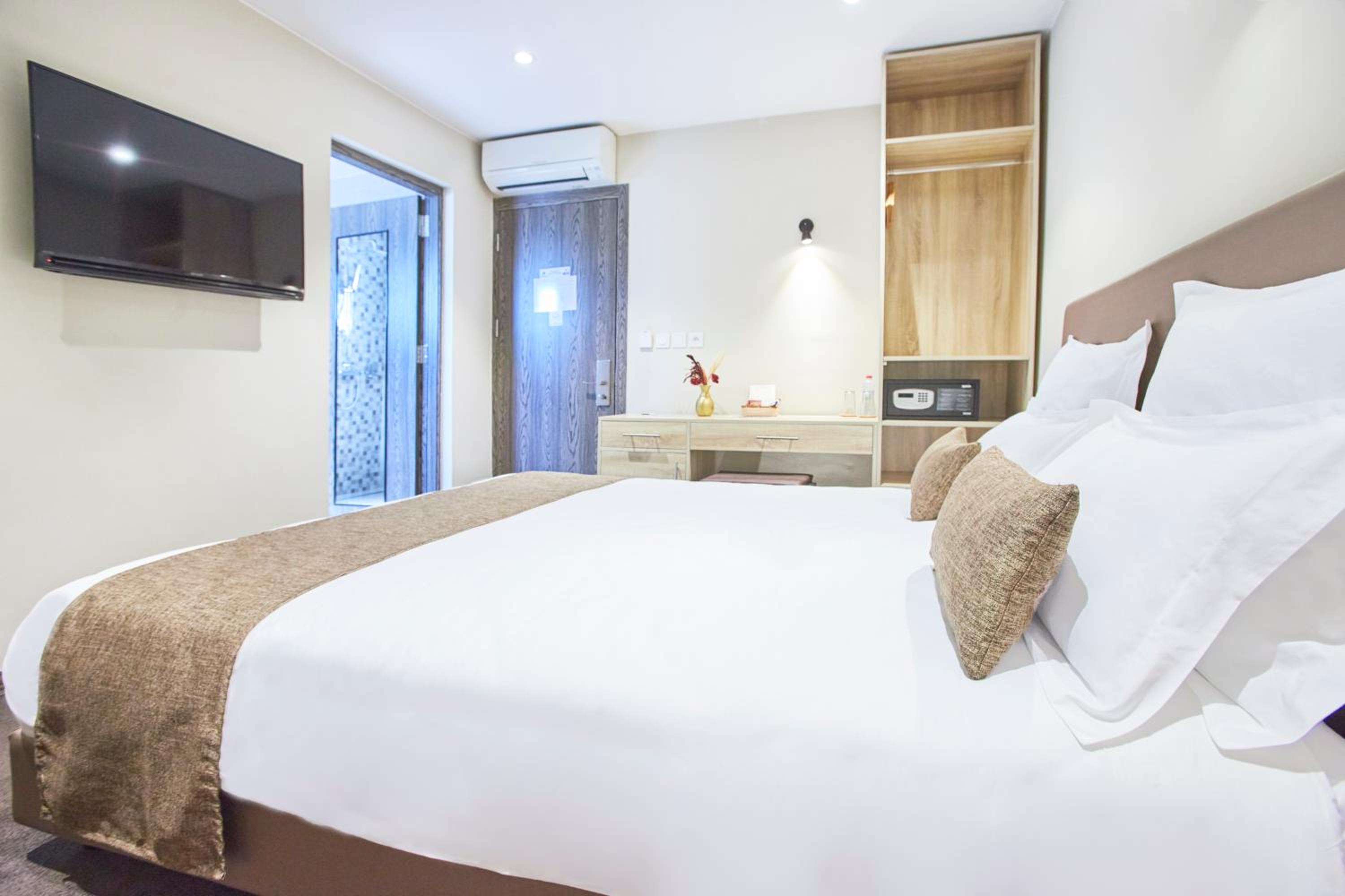 Guests can unwind in air-conditioned rooms equipped with modern amenities such as flat-screen TVs, safety deposit boxes, and private bathrooms. The hotel ensures a cozy stay with complimentary WiFi, bed linen, and towels provided in each room.