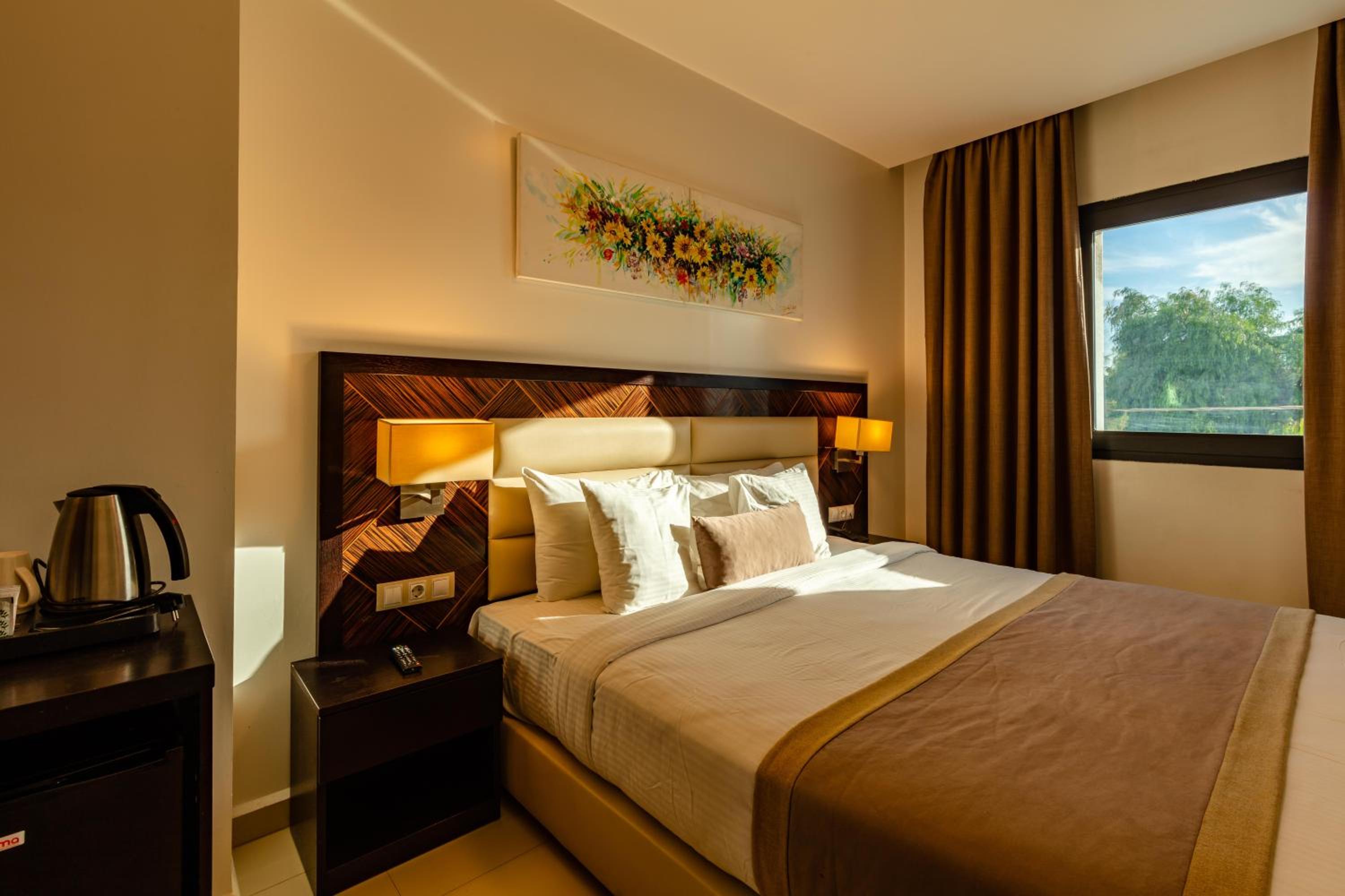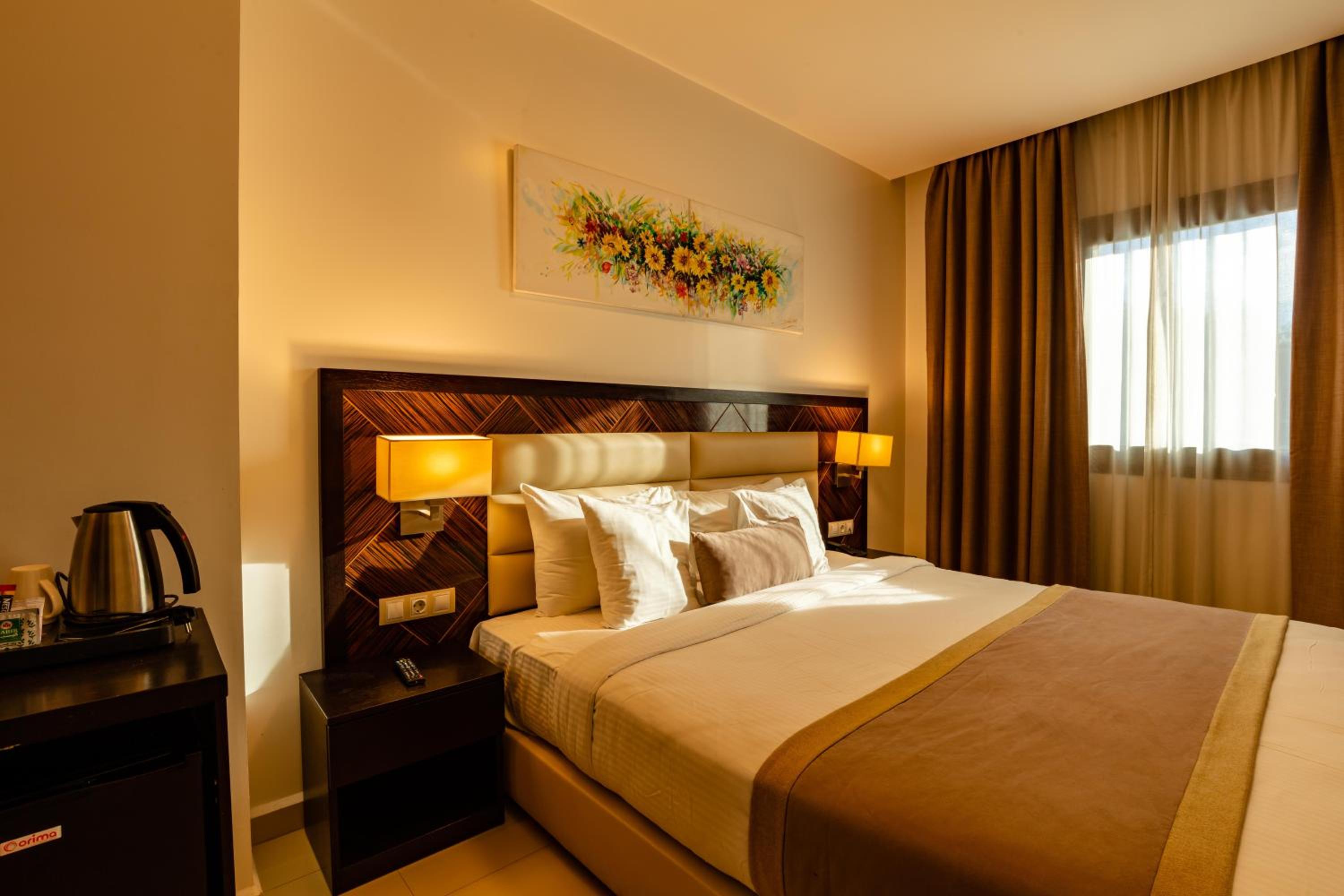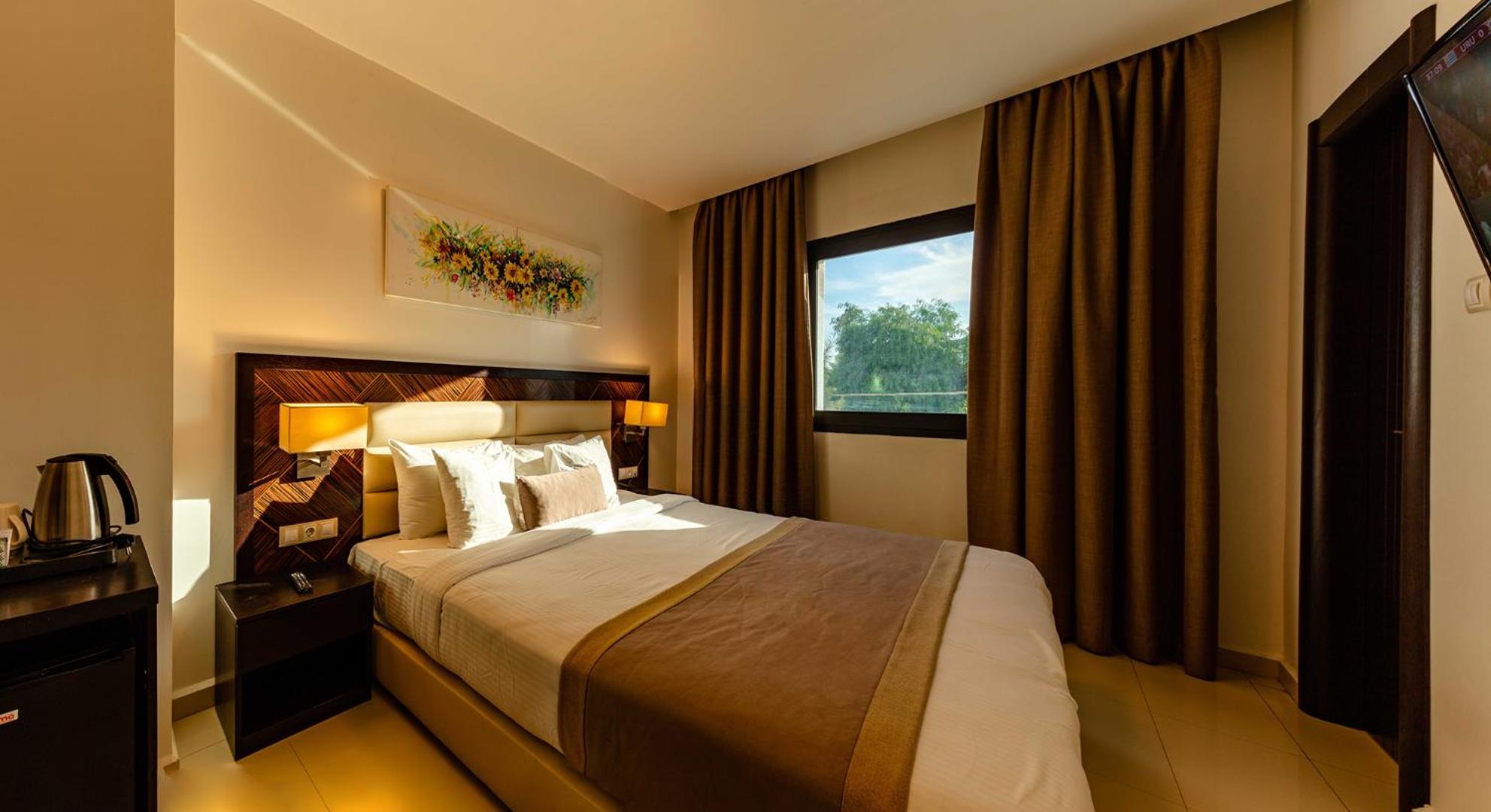 Relax in the air-conditioned rooms equipped with essential amenities such as a desk, kettle, fridge, and flat-screen TV. The private bathroom includes a shower, and for added security, a safety deposit box is also available.