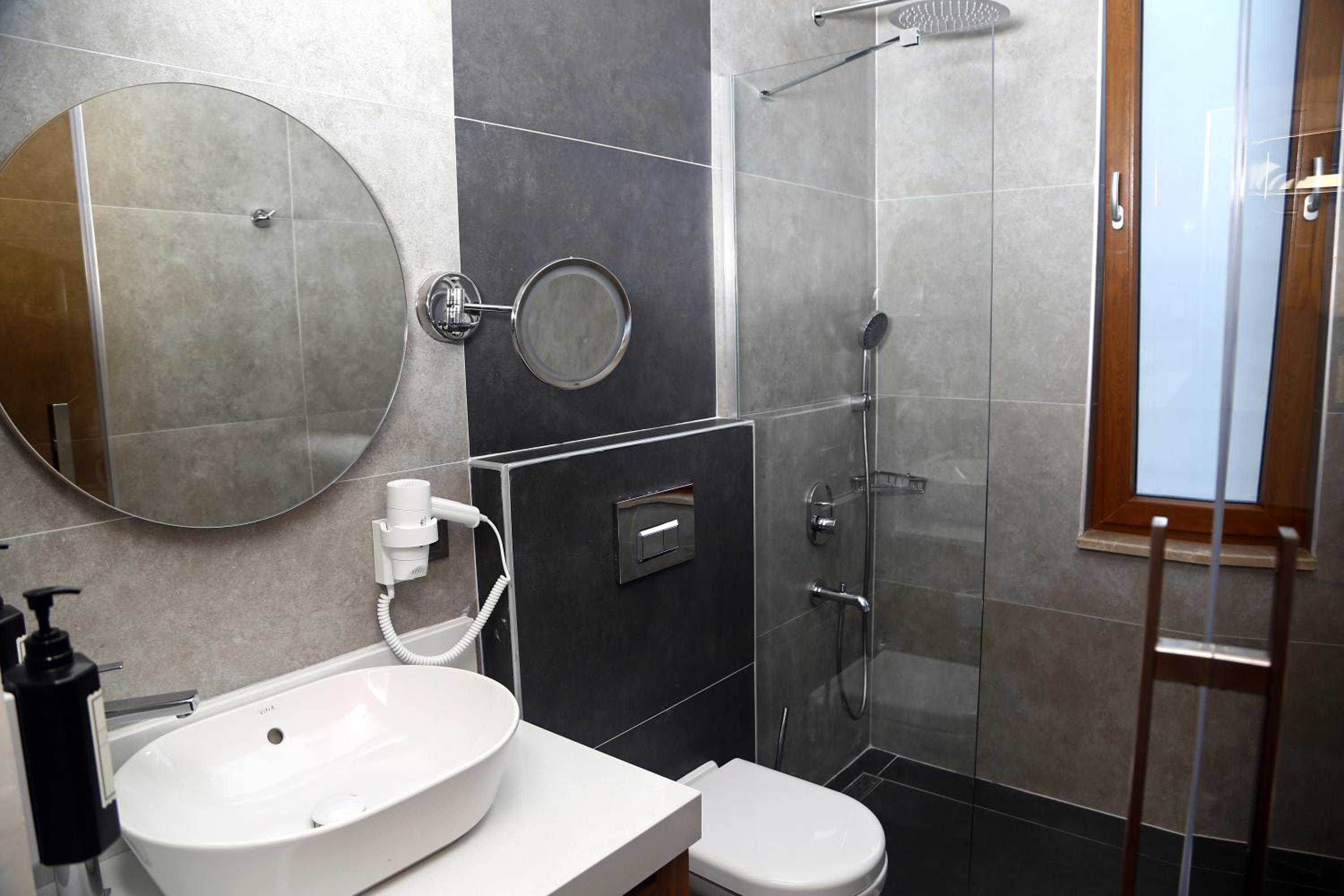 Smrad na záchodě , Nefunkční minibar, ve sprše slabý proud vody, ne každý den výměna ručnů, doplnění vody