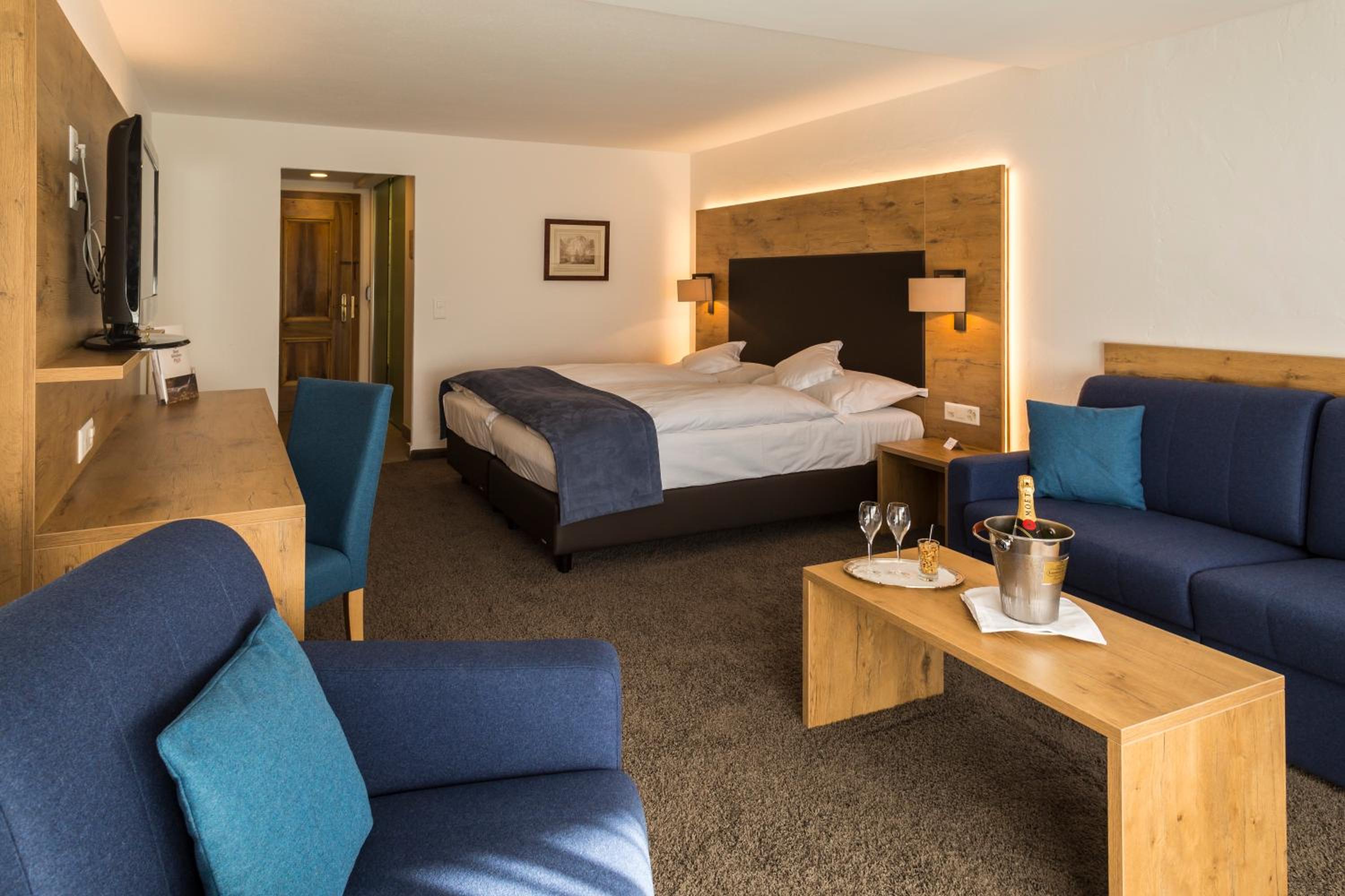 The outdoor hot tub with views of the Matterhorn was a highlight, and the basement pool and spa were perfect after a long day on the slopes. The spa itself was excellent, with a dry sauna, wet sauna, hot tub, and multiple relaxation areas — all very clean and thoughtfully laid out, with plenty of space to unwind. Our room was spacious, quiet, and offered an incredible view of the Matterhorn, and the bed was extremely comfortable. Breakfast had a very good variety, and we also loved the afternoon tea in the lobby, which was a relaxing way to end the ski day. Above all, the staff went out of their way to be helpful and were truly one of the highlights of our stay. The hotel strikes a great balance between cozy comfort and a contemporary, well-designed spa.