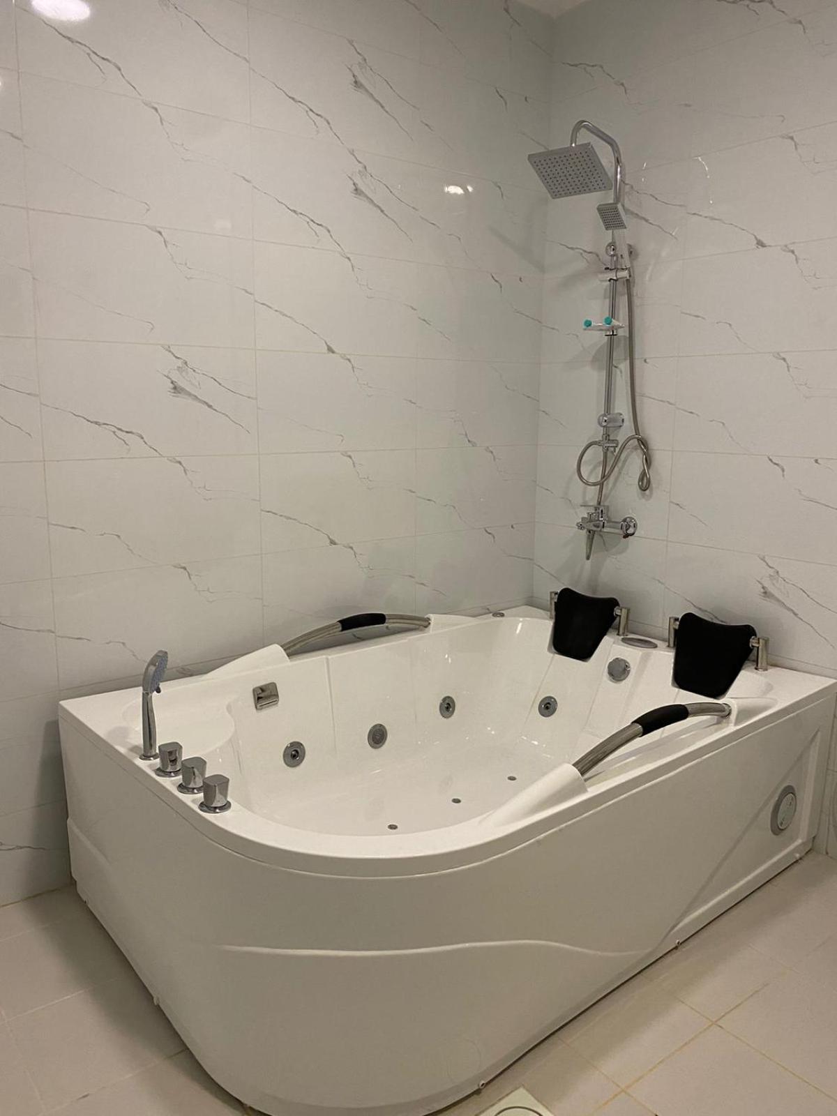 Unwind in our hot tub or enjoy a delicious meal with our convenient room service. Our attentive staff, fluent in Arabic and English, are available 24/7 at the reception to cater to all your needs.