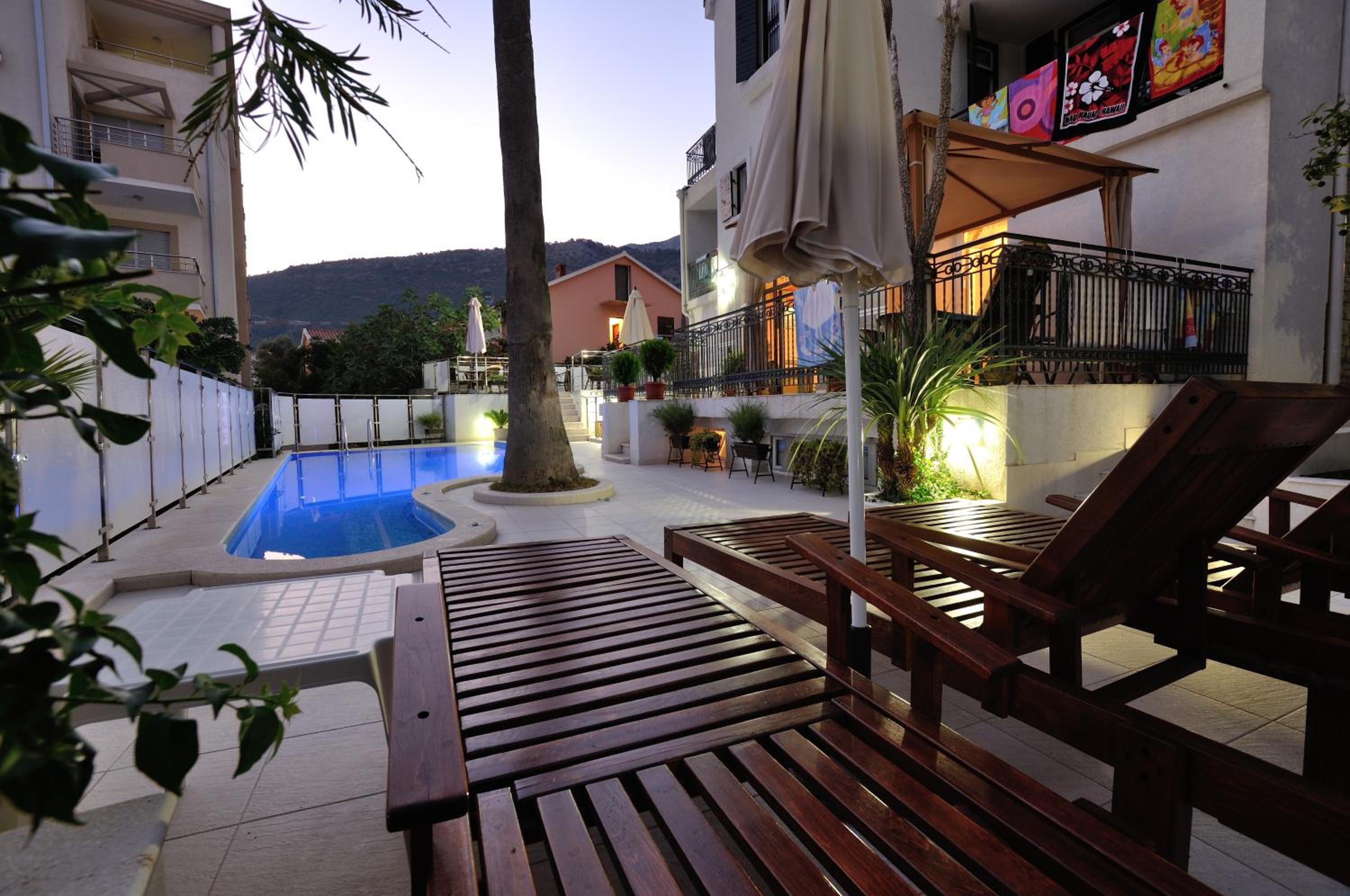 Emplacement et disponibilité de stationnement (7 euros /jour). Petits déjeuners copieux et variés. La piscine. Petrovac est un endroit plus paisible pour rayonner sur la côte.