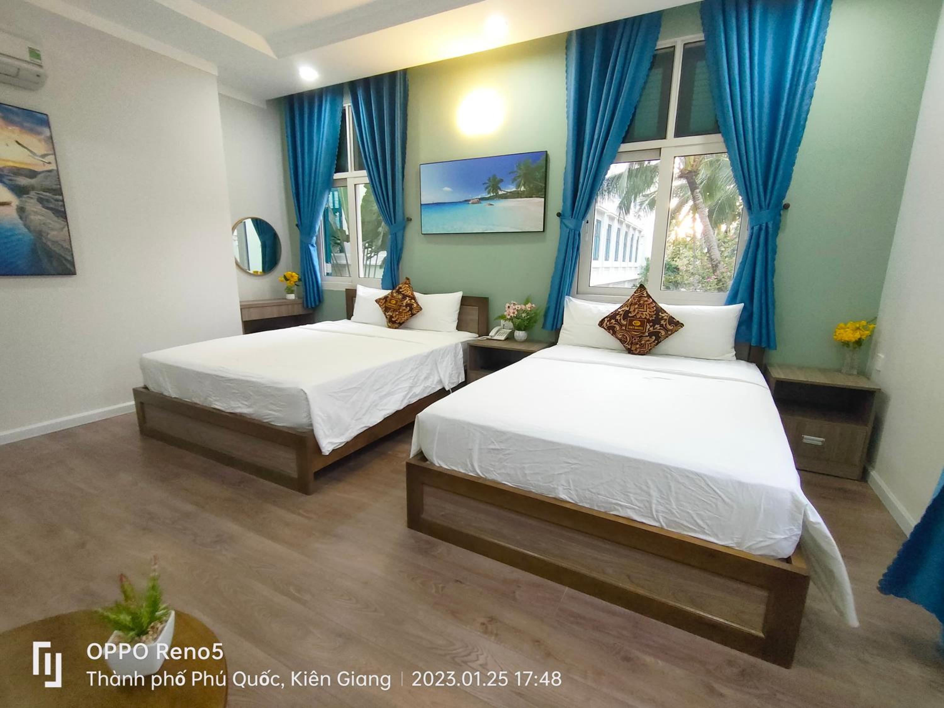 V&T Hotel, located in Phu Quoc, offers a luxurious stay with modern amenities. The rooms feature air conditioning, flat-screen TVs, and private bathrooms with complimentary toiletries.