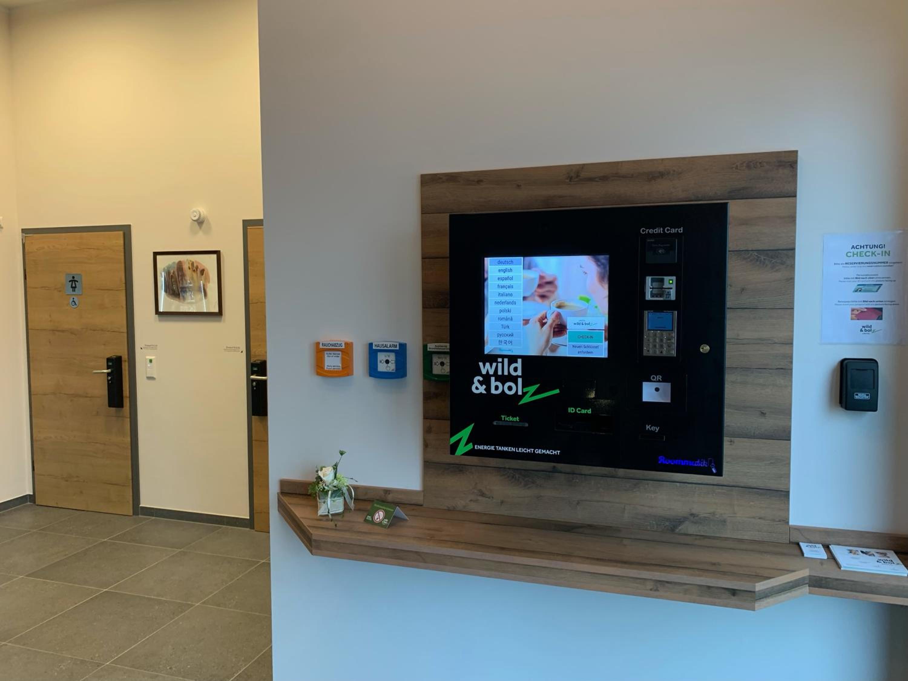 Sehr sauber, war auch jemand vor Ort falls man Hilfe brauchte, Self Check in hat super funktioniert, Ausstattung modern und zweckmäßig, Automaten vor Ort mit Getränken und Snacks