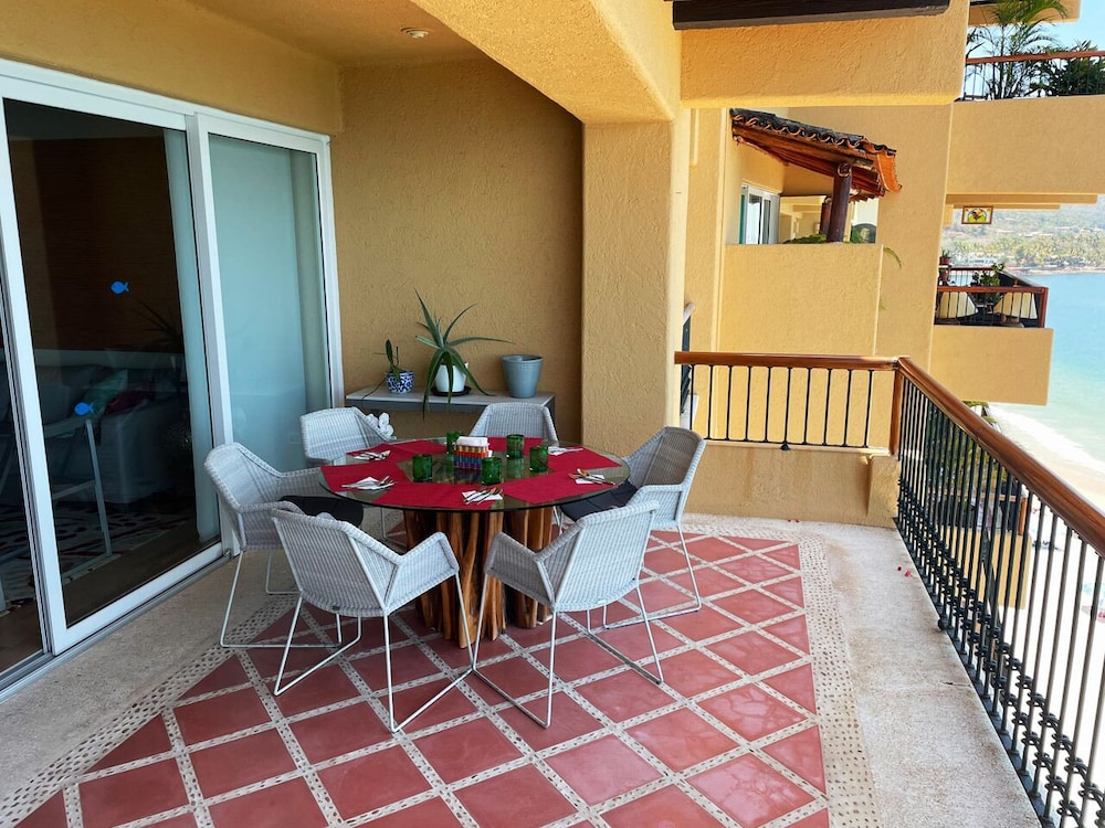 Take in panoramic views of Bay of Banderas and Punta Negra Beach from the terrace and garden of the property.