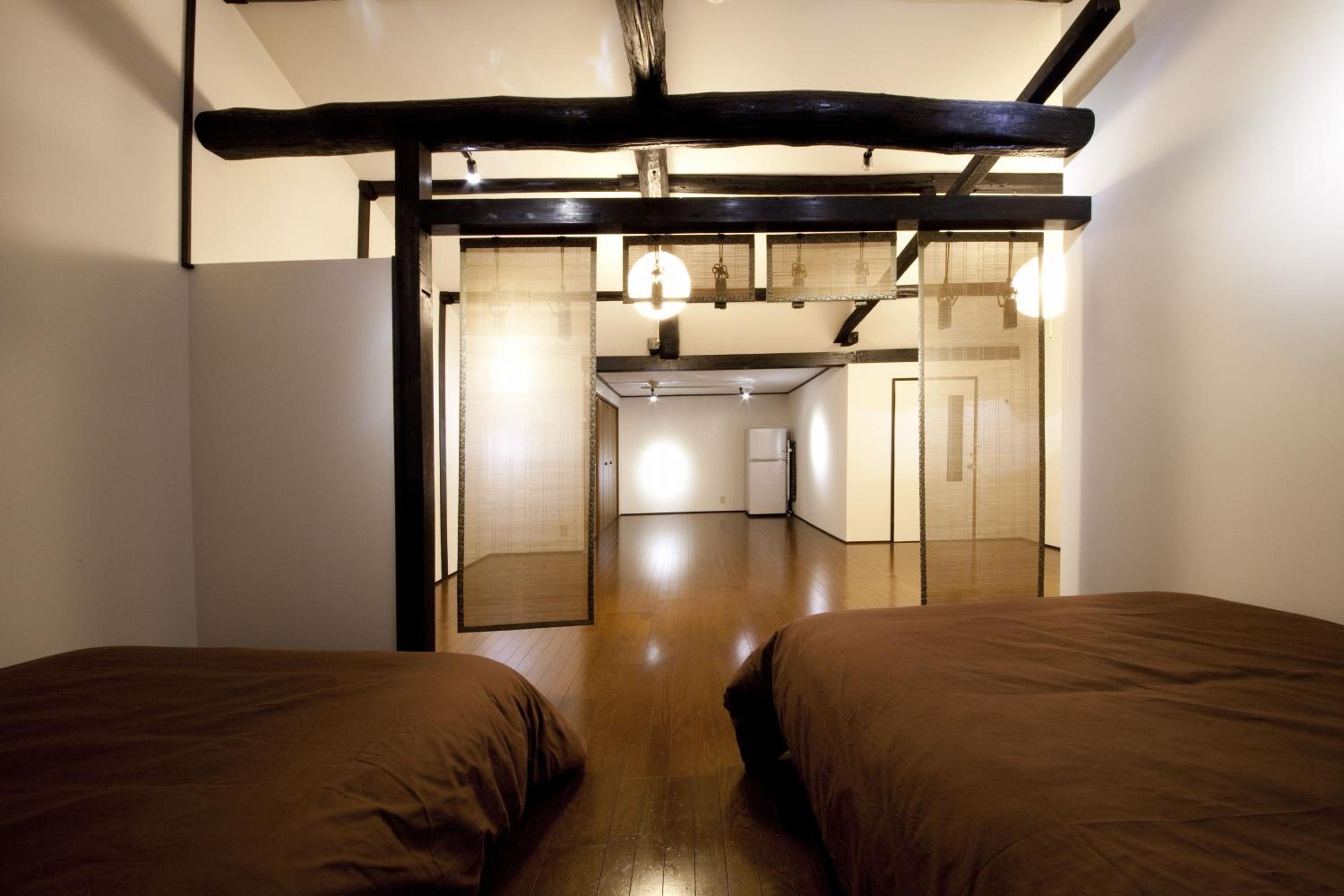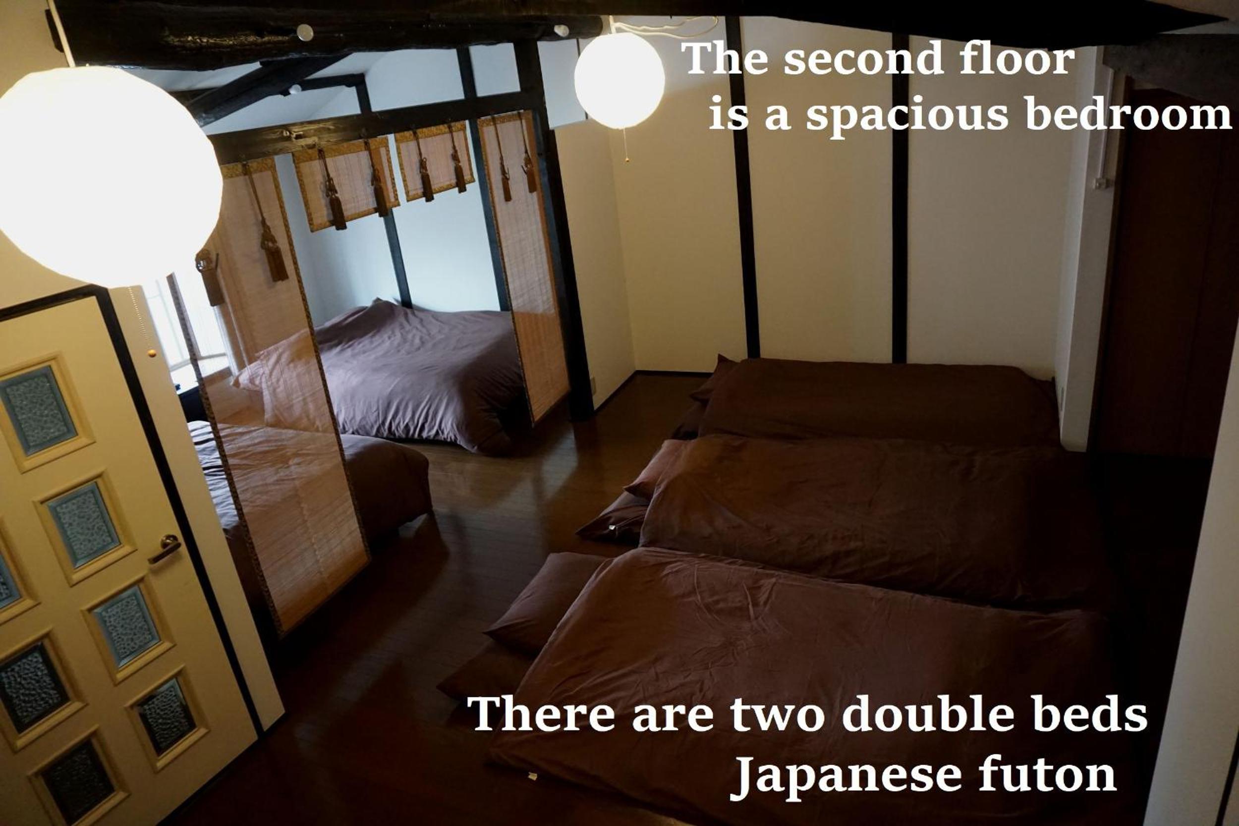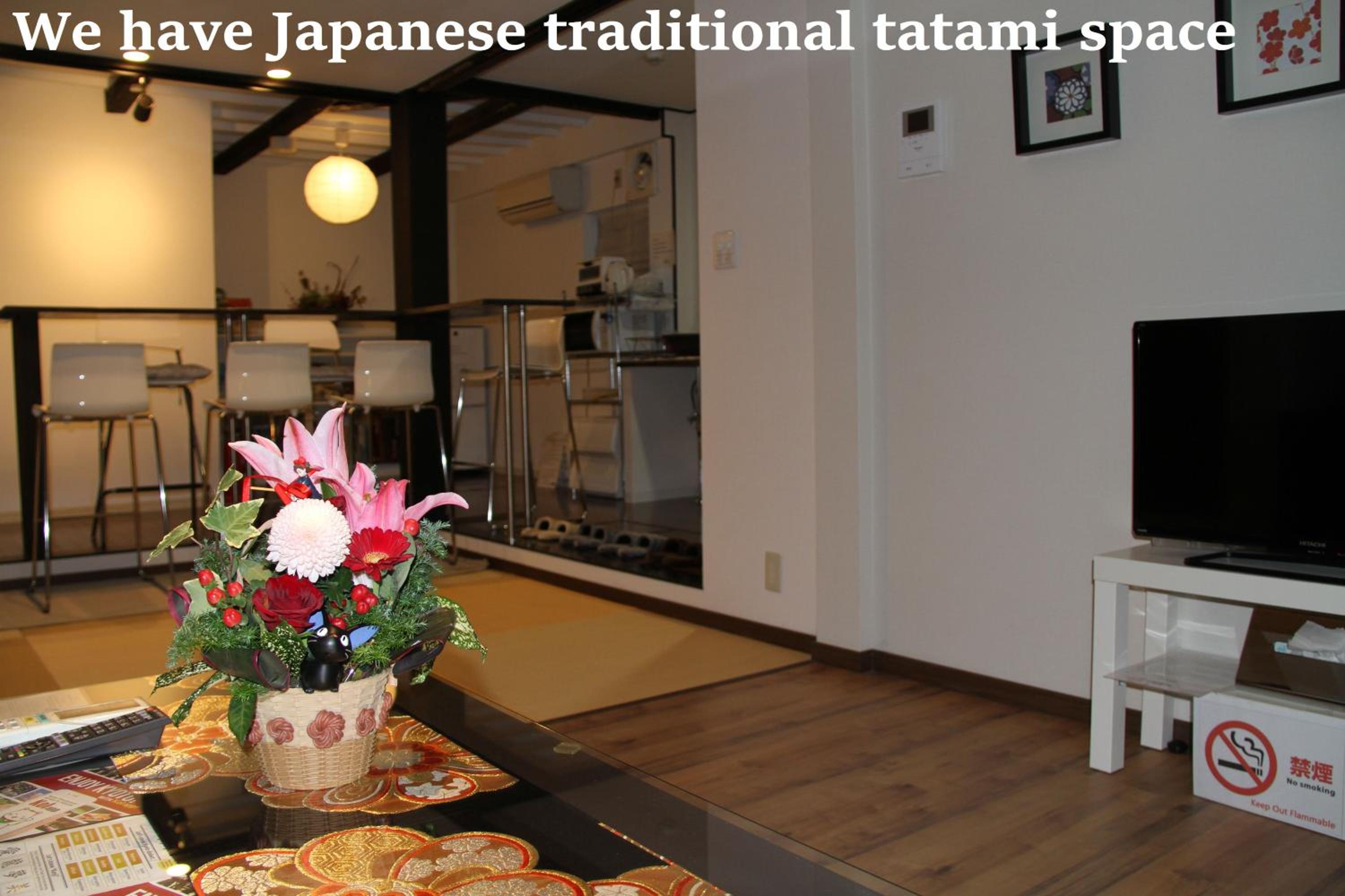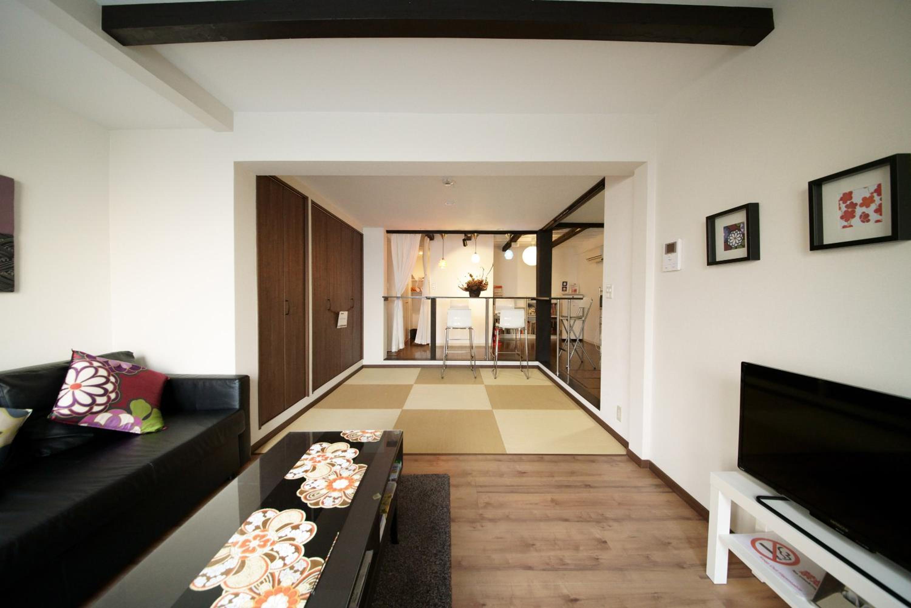 The property has a separate entry foyer (great for storing the stroller, shoes, jackets, extra luggage etc ) as well as defined kitchen, dining, living areas, bath and shower room, laundry and the huge upstairs sleeping area I would not have thought I could find a place so spacious in Kyoto, especially for this price.