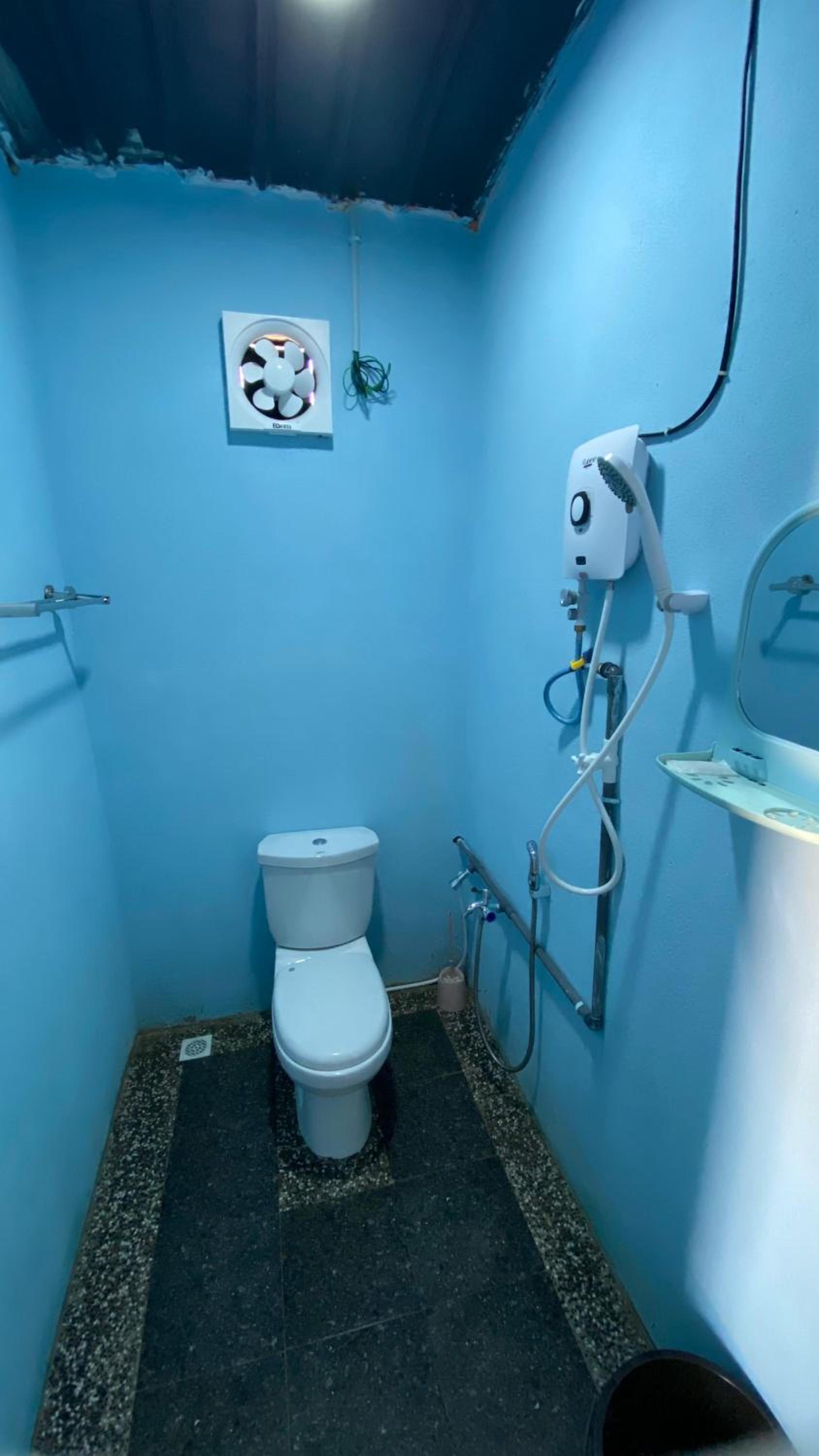 the toilet not very fragrant,don't have bucket and dipper for more easy to clean. the space for prayer is very small and only can be done in front of toilet.