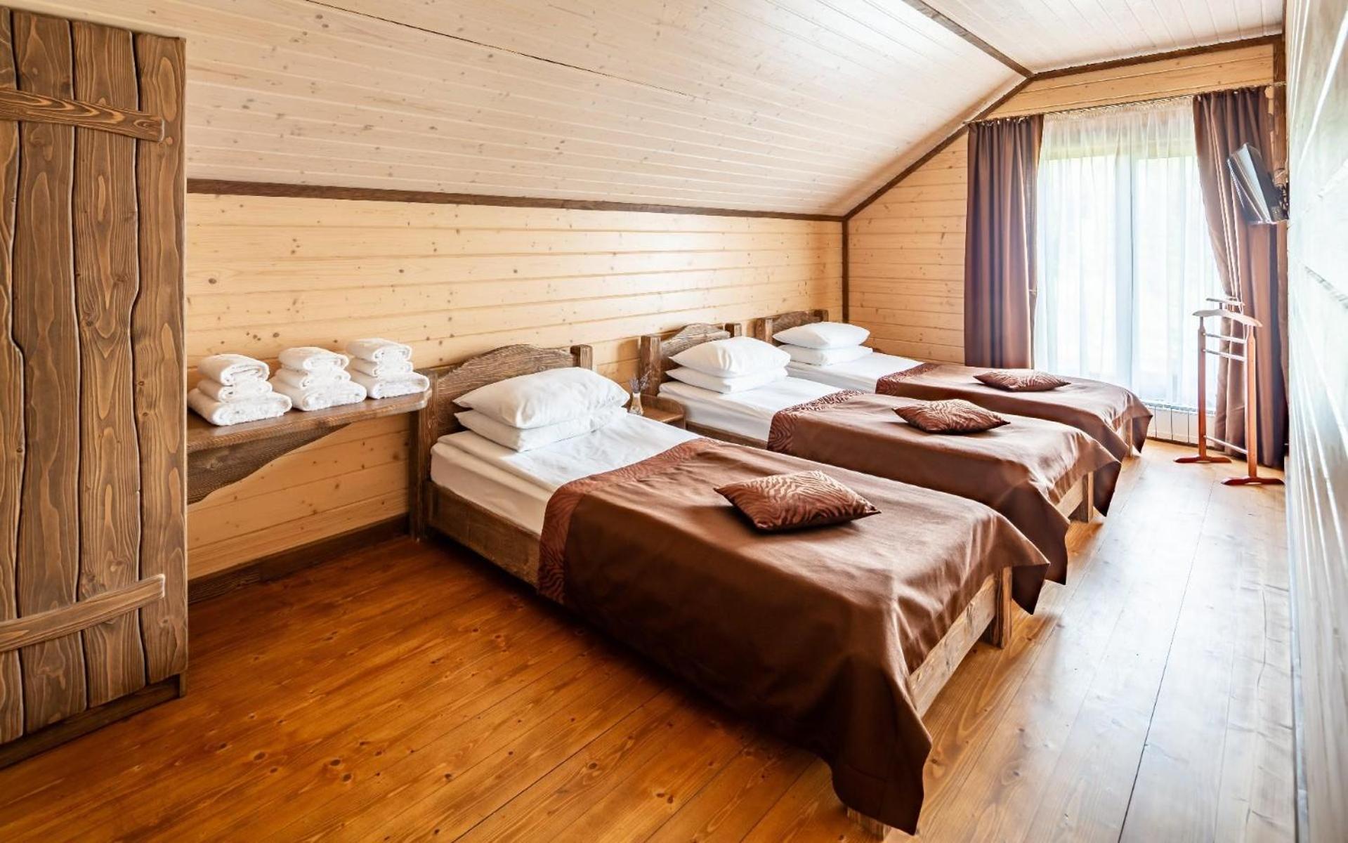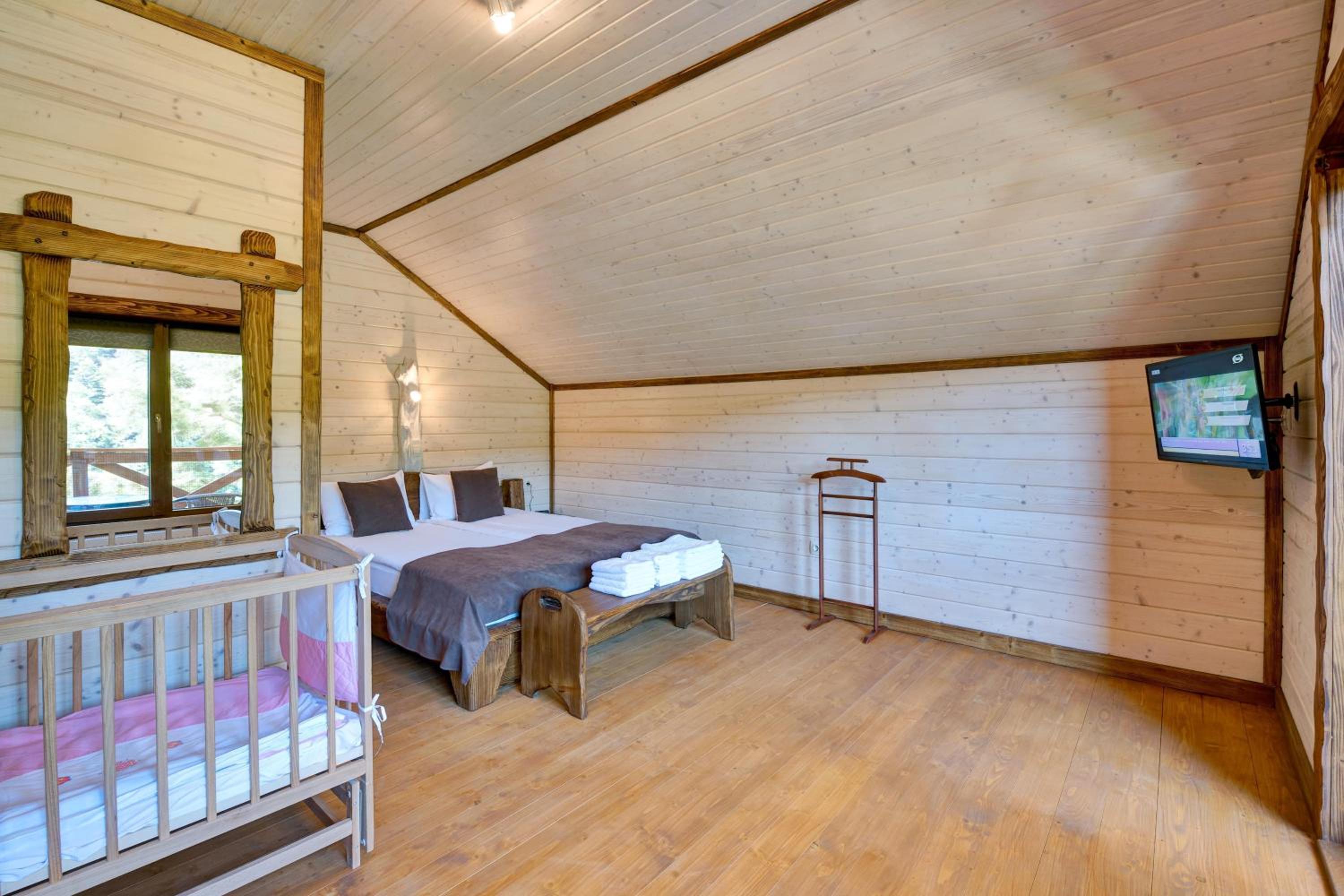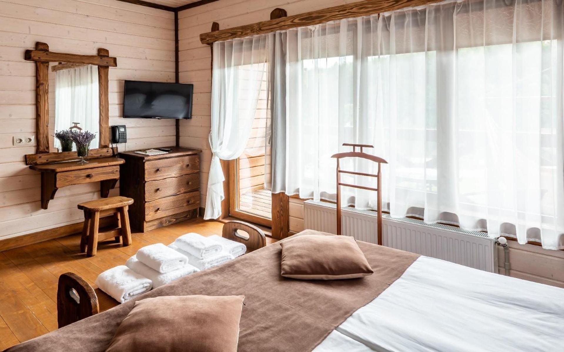 Номер зручний, хороше ліжко, дуже добре що є тераска. В номері міні кухня з водою, чайником і мікрохвильовкою. В номері були рушники, хороші халати, якісні тапочки. Також пледи, що необхідно при зміні погоди в горах.