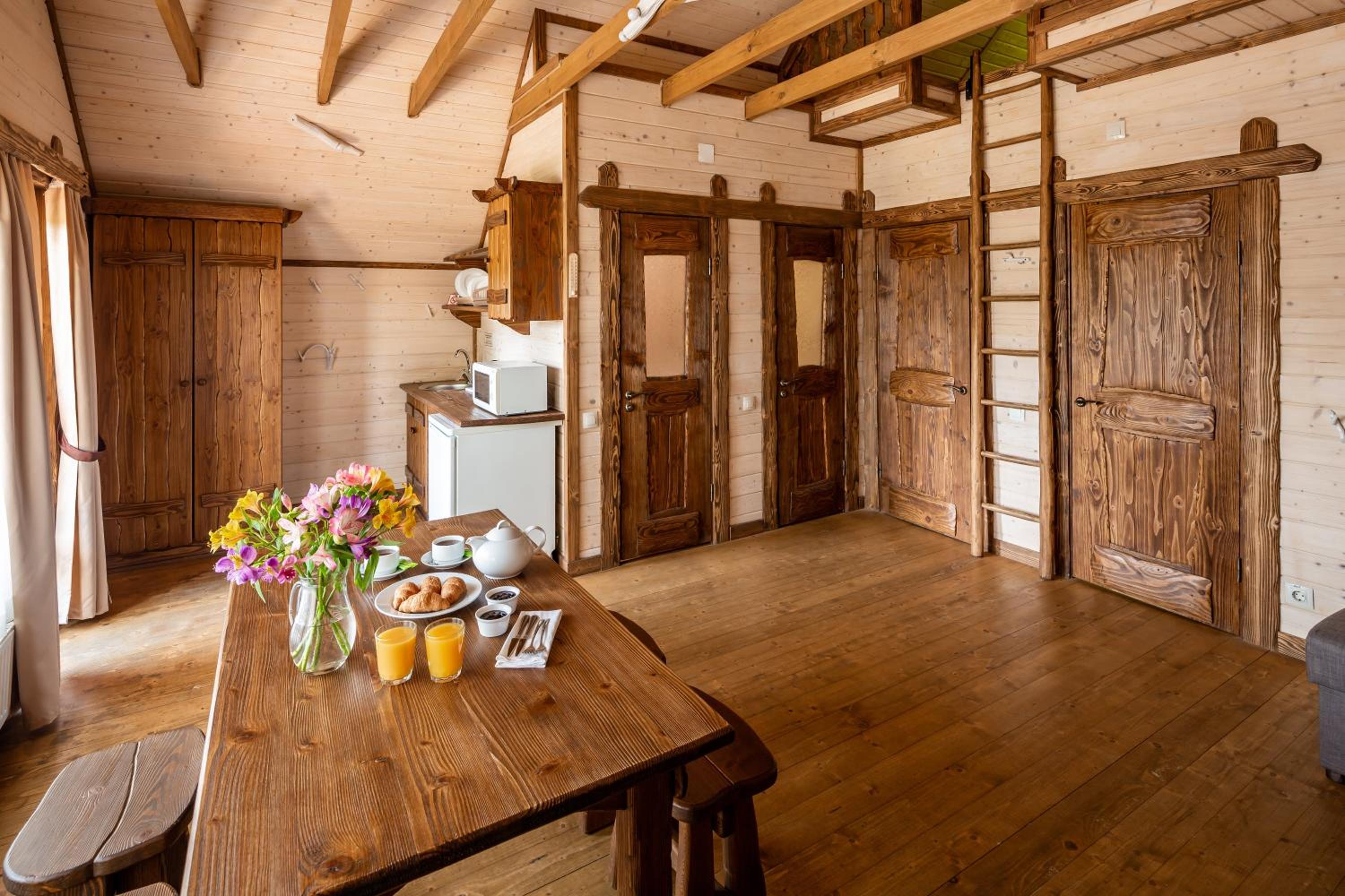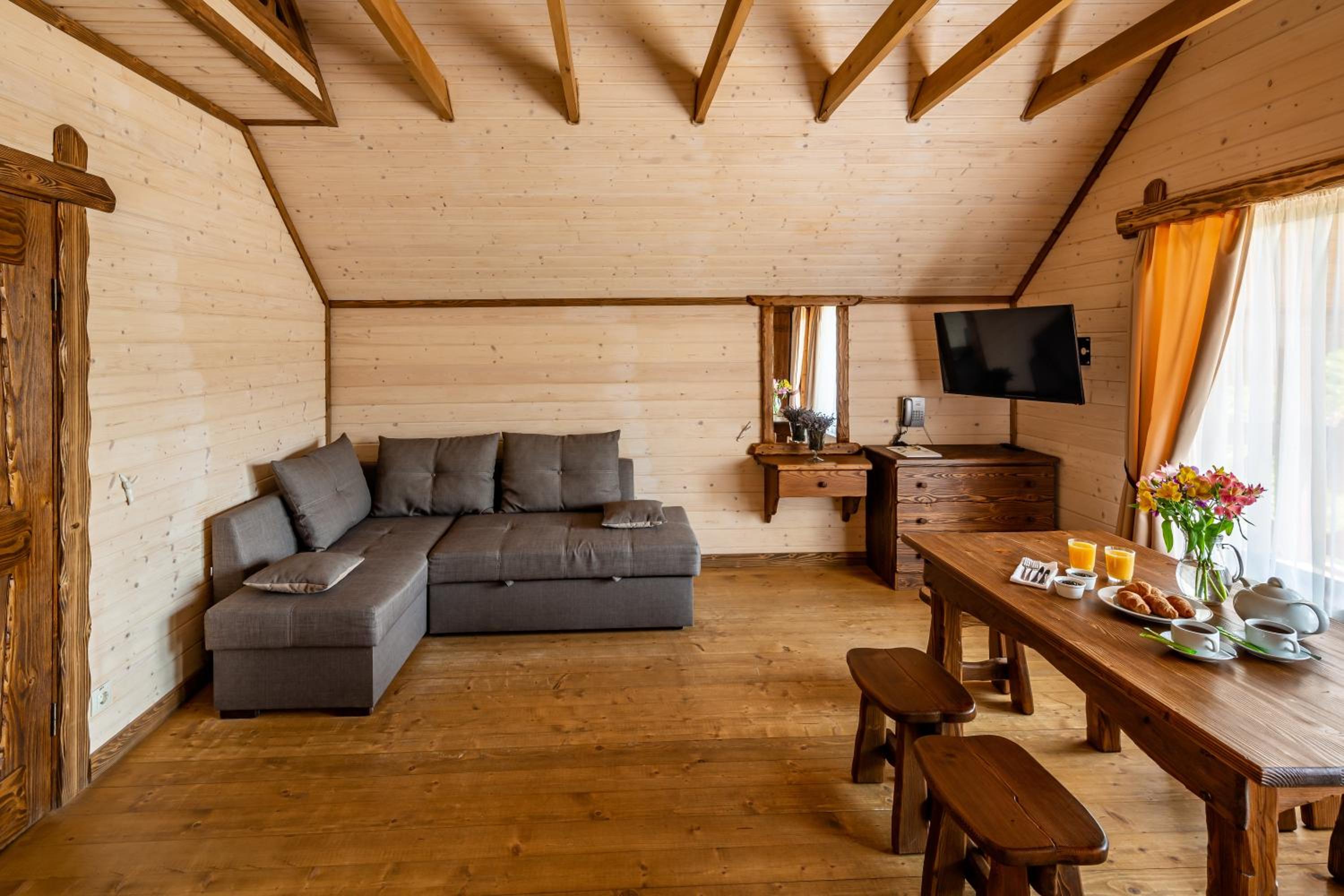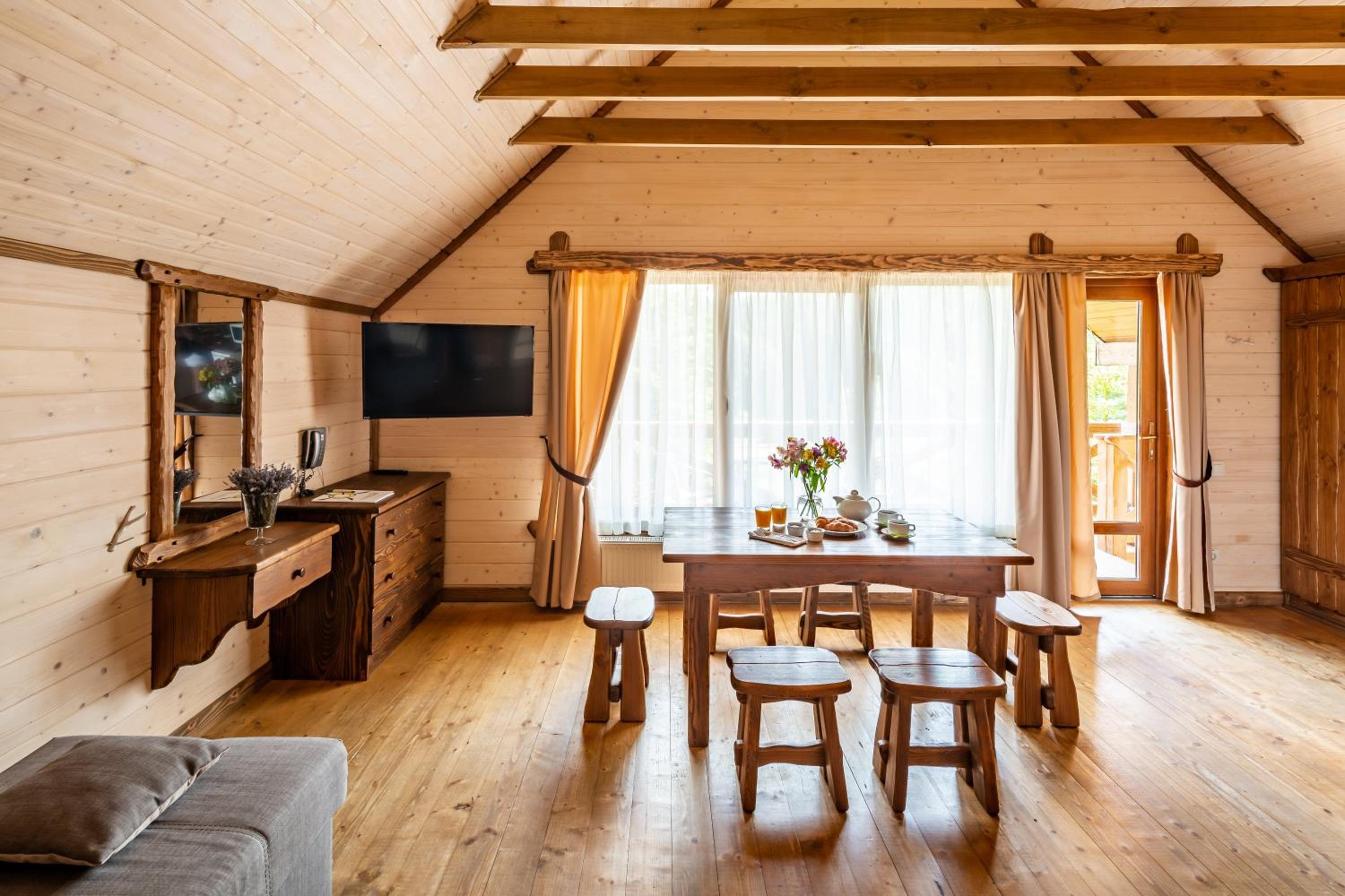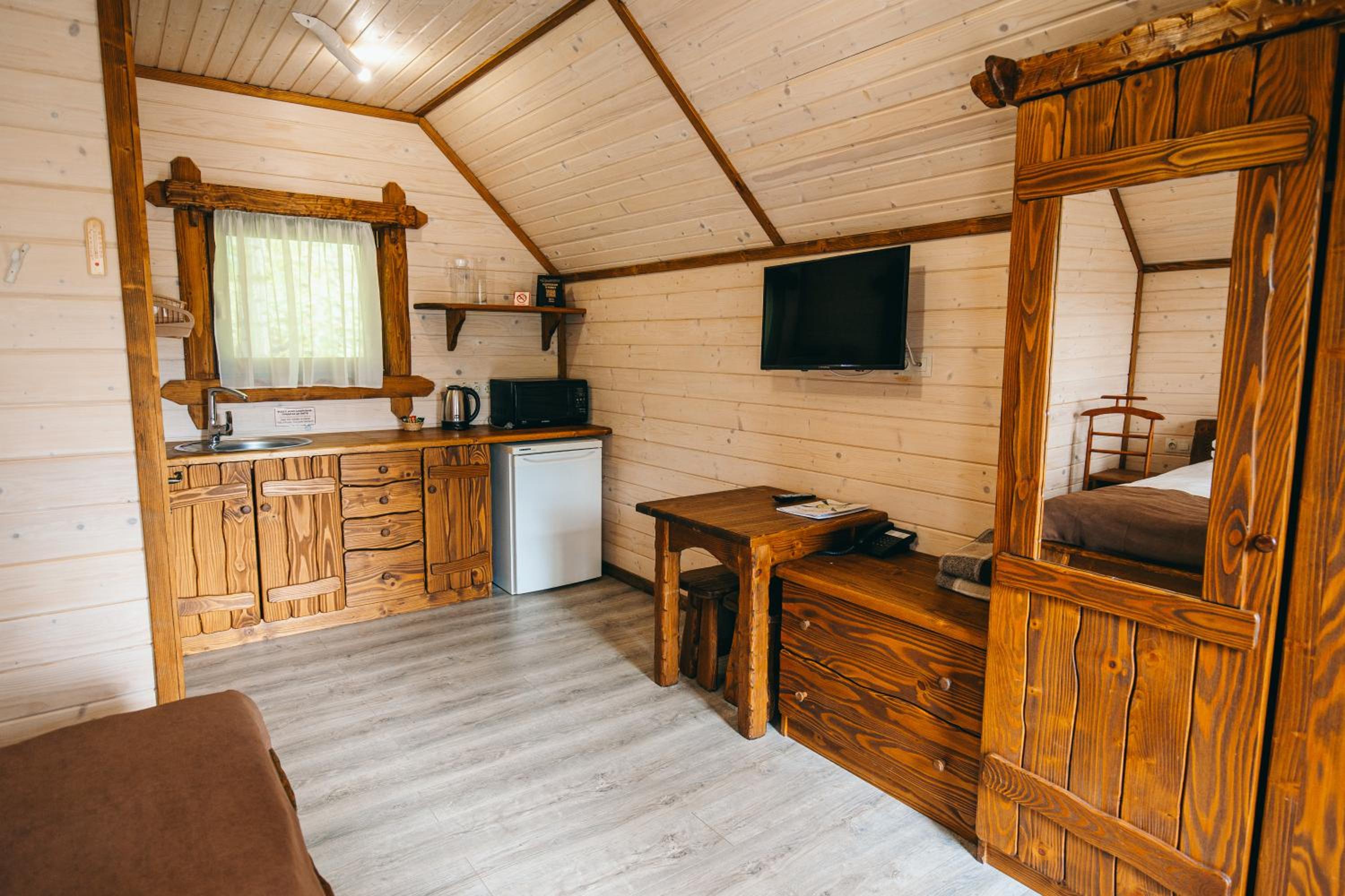 Номер зручний, хороше ліжко, дуже добре що є тераска. В номері міні кухня з водою, чайником і мікрохвильовкою. В номері були рушники, хороші халати, якісні тапочки. Також пледи, що необхідно при зміні погоди в горах.