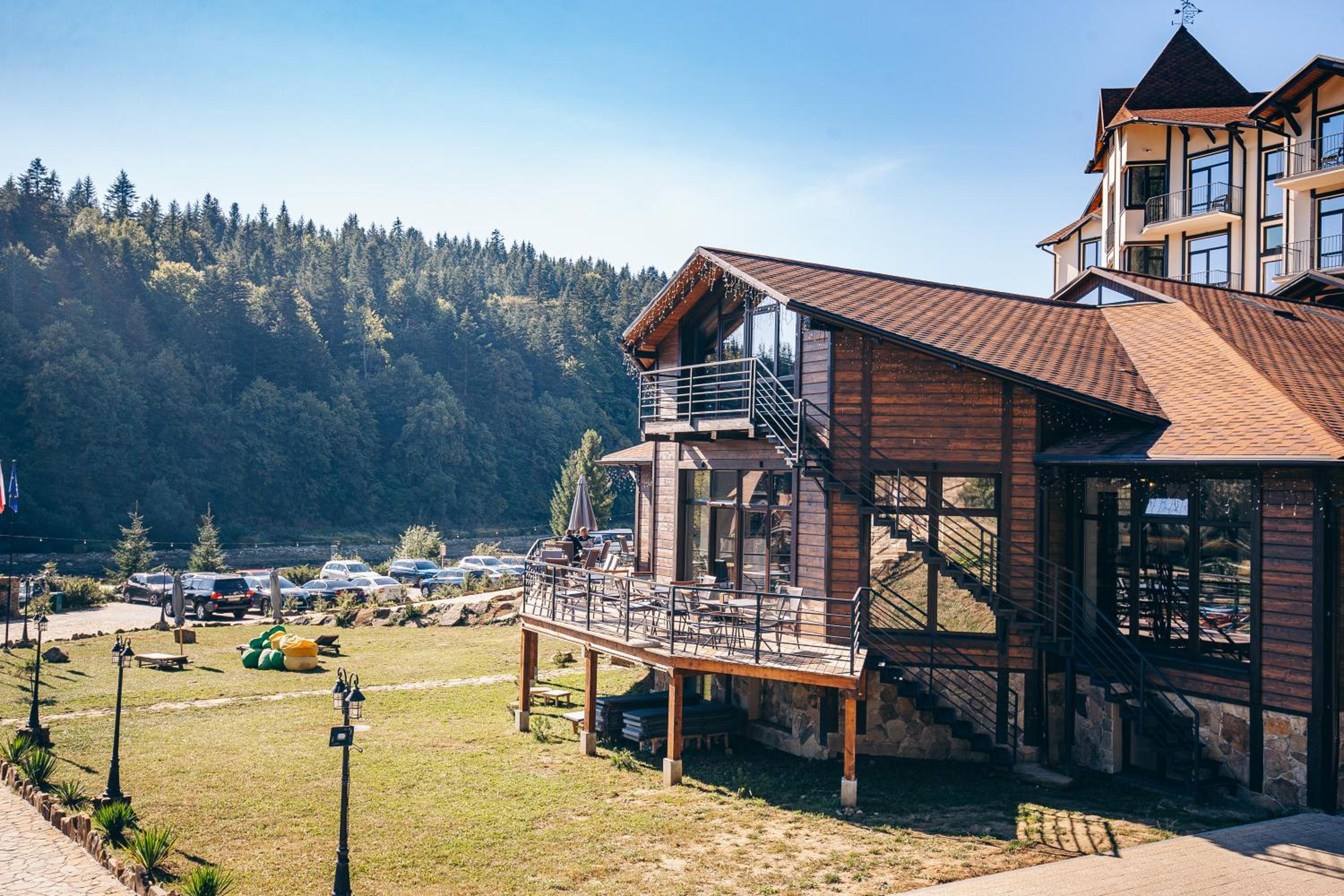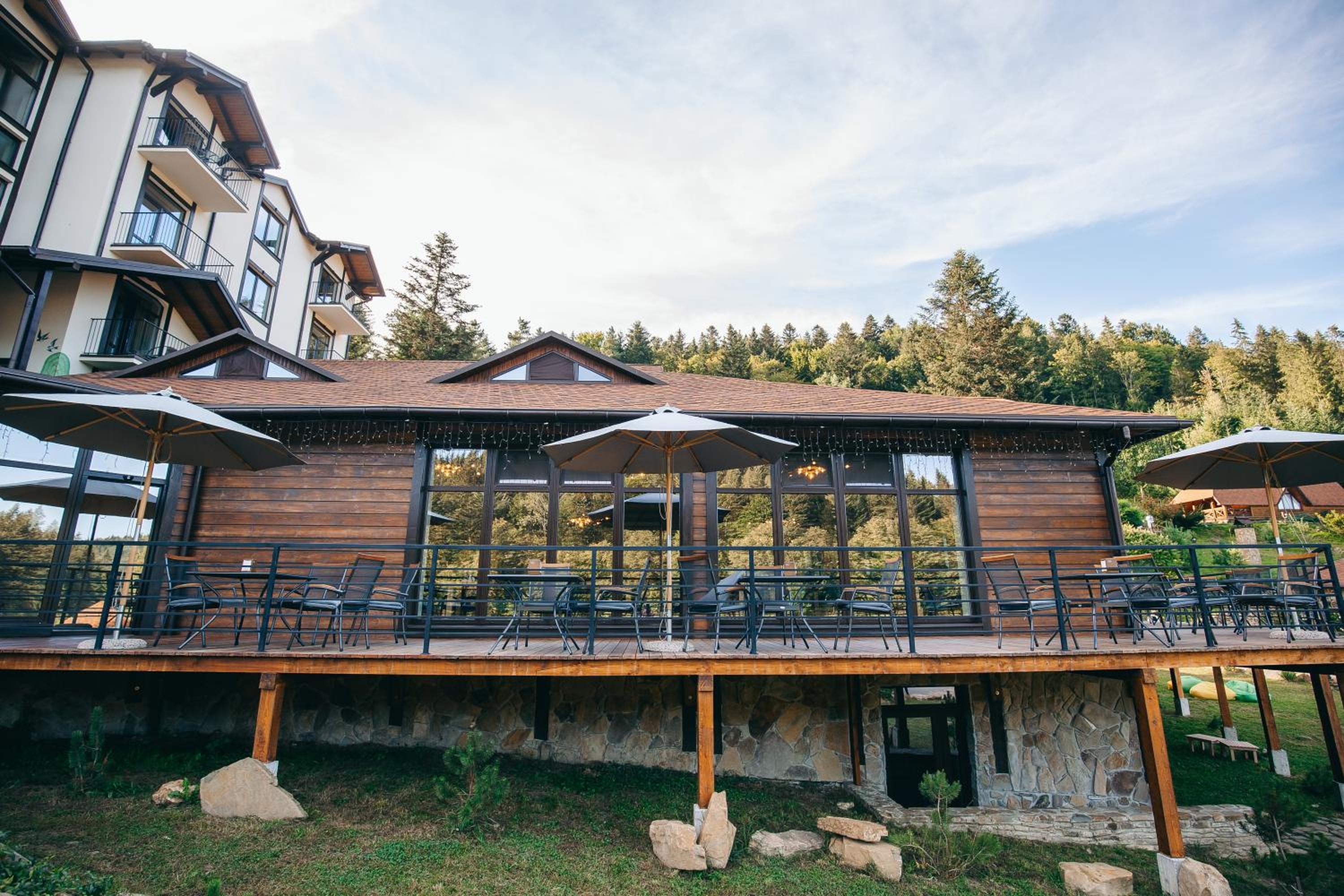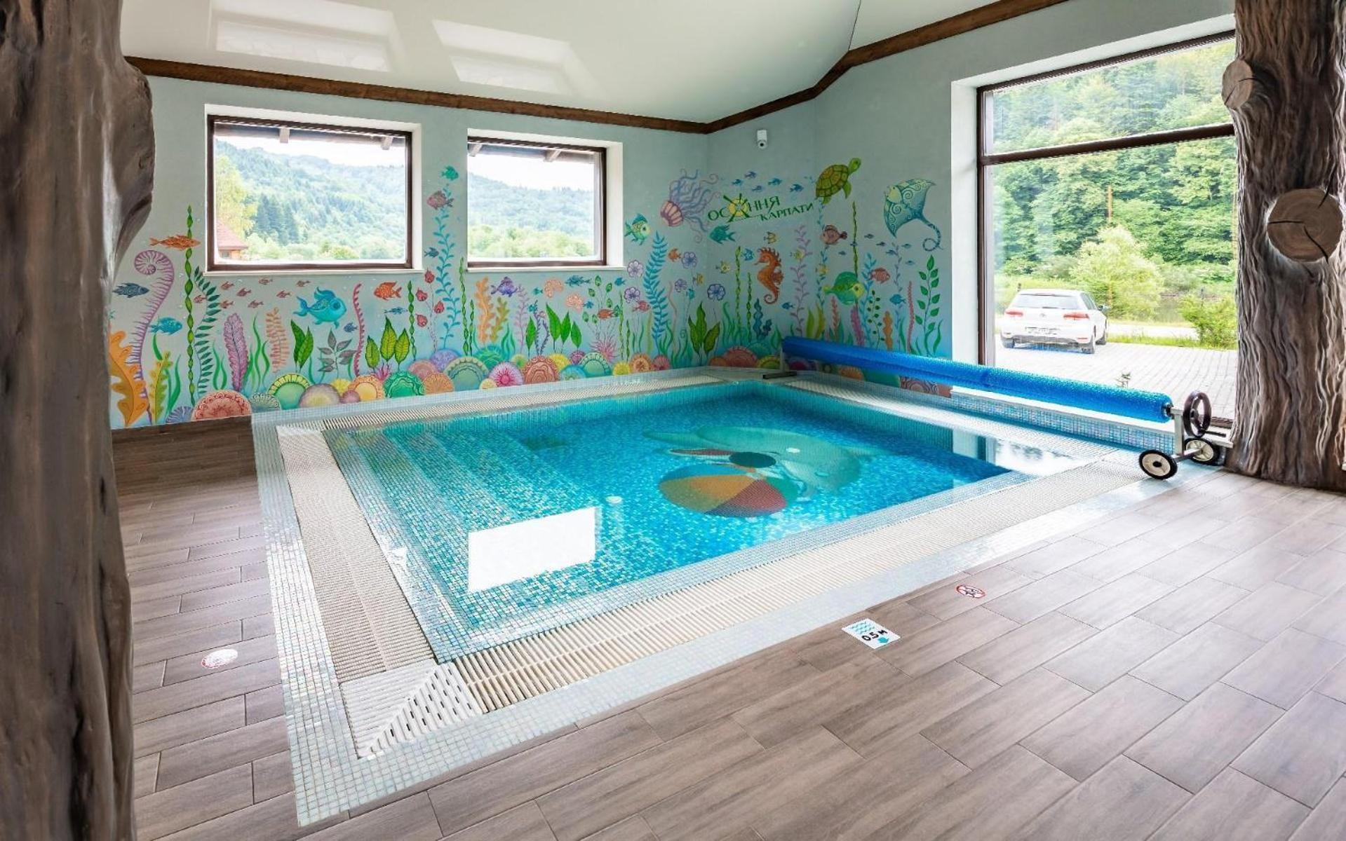 Osonnya Karpaty 4* offers a delightful escape with a seasonal outdoor swimming pool, terrace, and a restaurant and bar. Enjoy the convenience of room service and a children's playground, making it a perfect choice for families.
