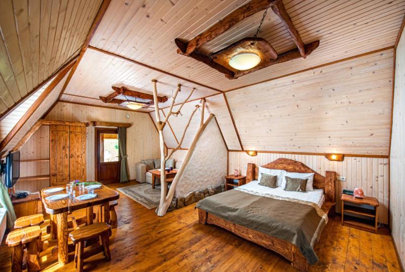 Вирішальну роль грає локація - дуже гарні види, усамітненість, поруч річка і співають пташки. На річці вдалося побачити чорного лелеку - величезна рідкість!