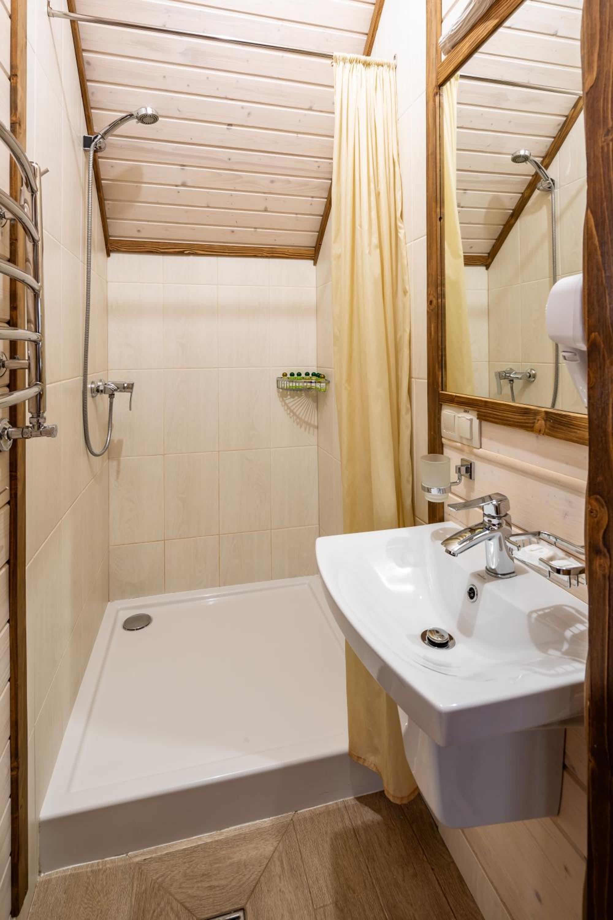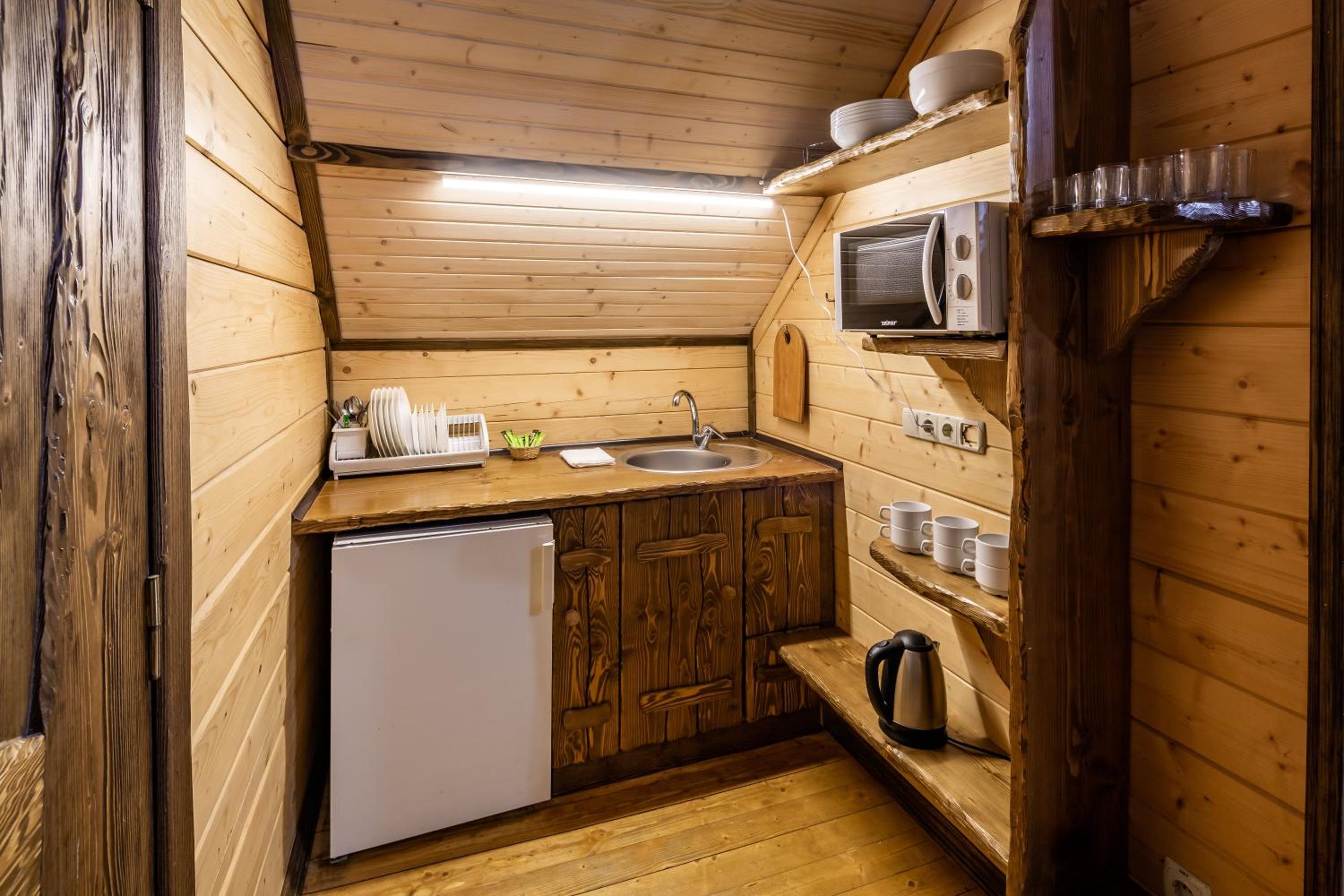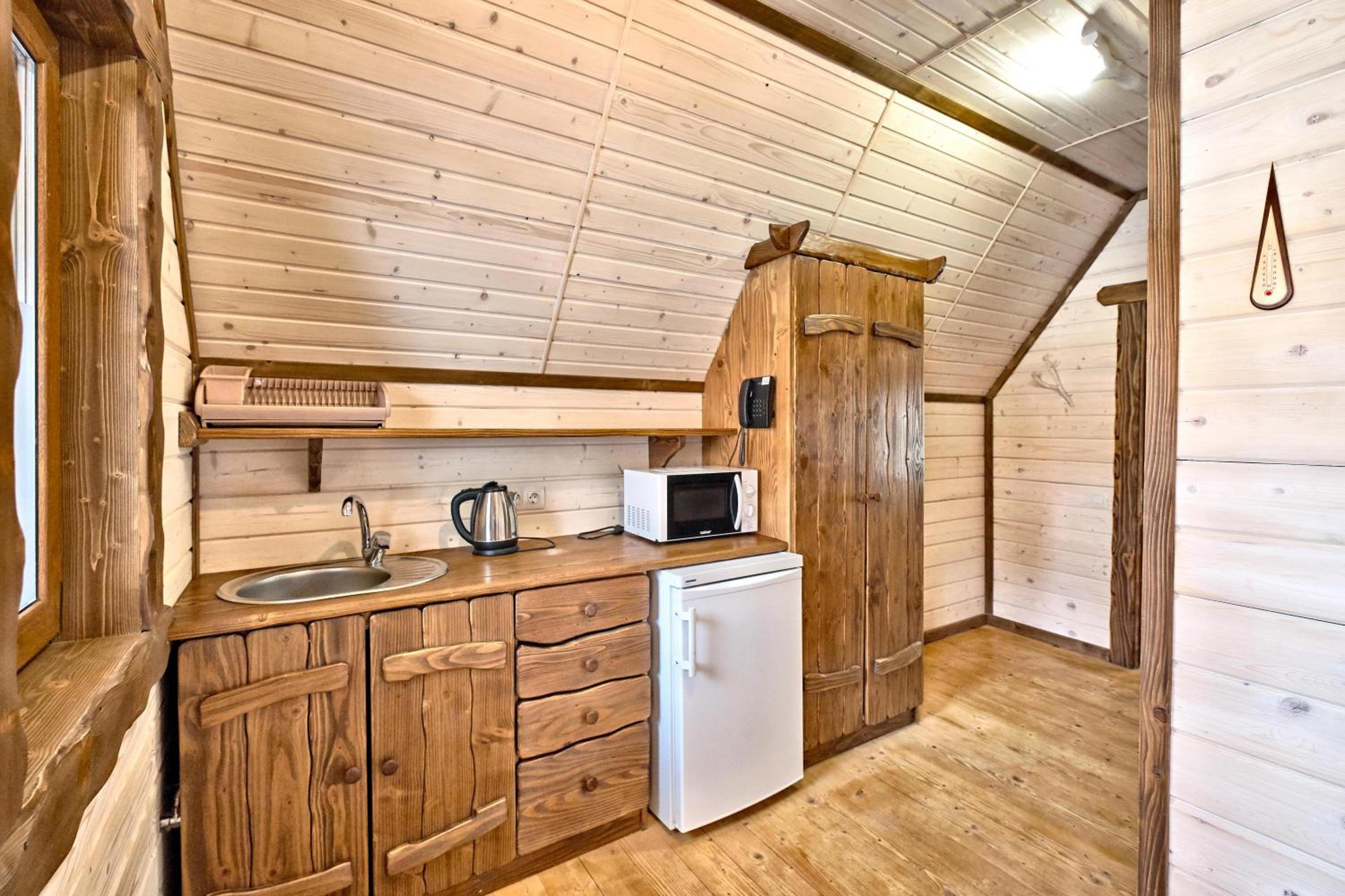 У номері було дуже холодно, ми жили на першому поверсі в деревʼяному секторі, де вхід просто з вулиці. Жахлива шумоізоляція, чути кожне слово і кожен крок сусідів зверху. У номері немає навіть пляшечки питної води, а до найближчого магазину їхати досить далеко, візьміть на замітку і купляйте питну воду з собою. Вода в басейні холодна, як для зимового сезону. Сніданок міг би бути кращим.