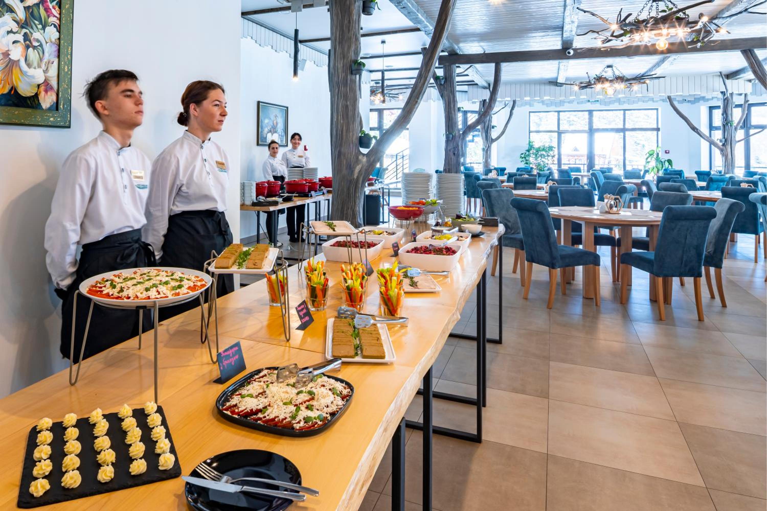 Персонал турботливий, по дзвінку на ресепшн відповідали дуже швидко і вирішували проблеми. Також дали можливість сходити на обід, а потім вже заселили. Бо ми приїхали майже під завершення обіду. Було приємно.
