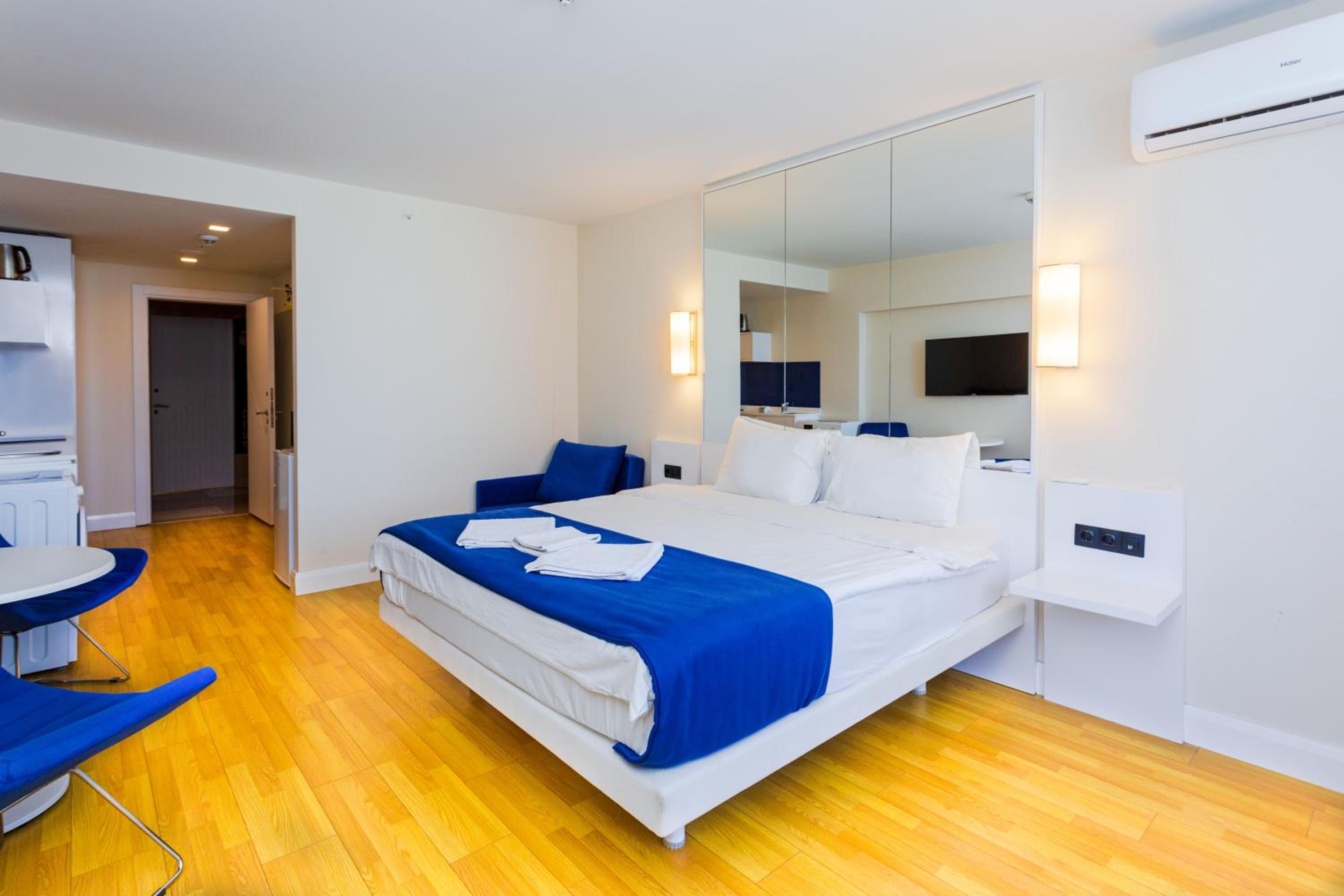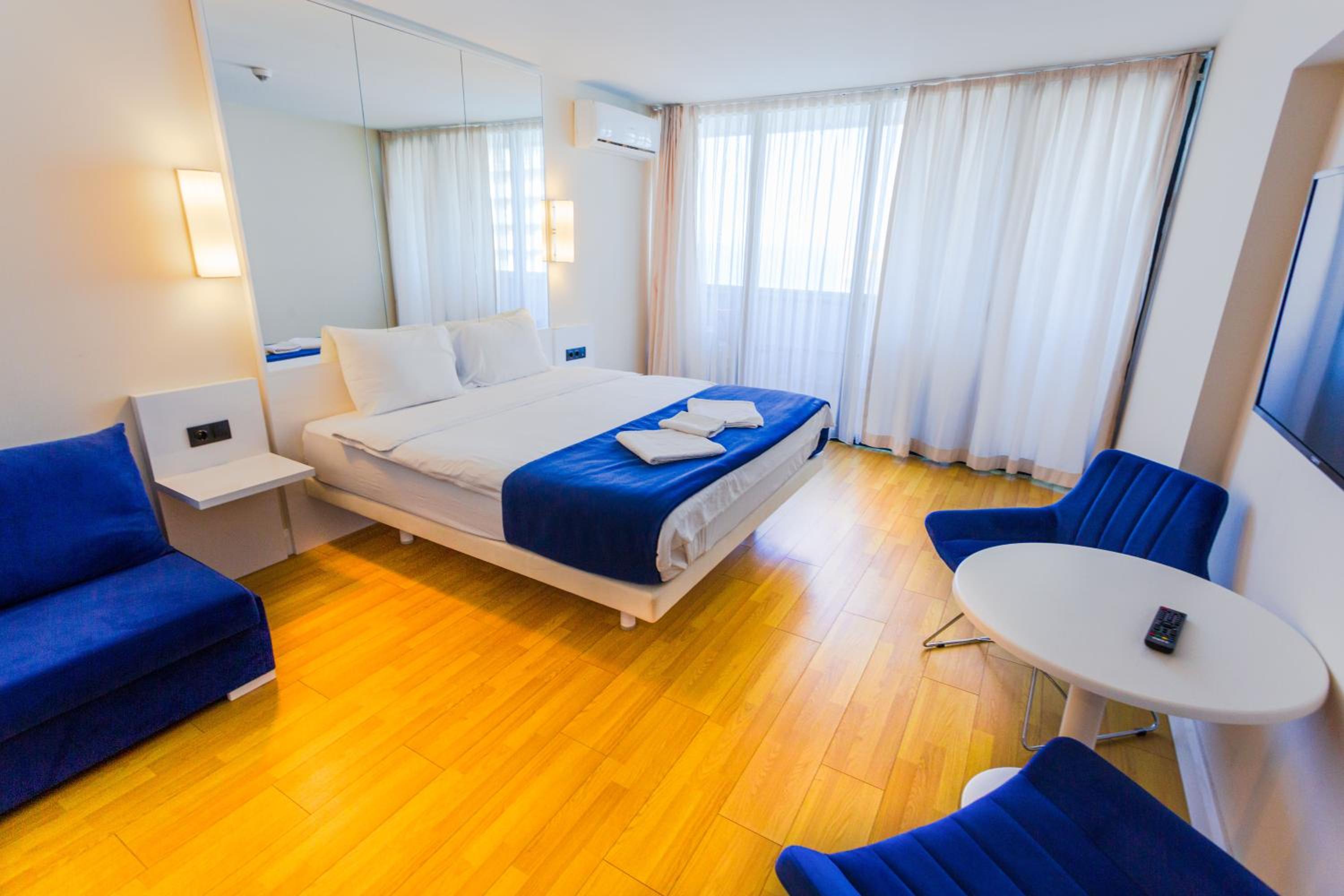 Indulge in comfort with our well-appointed rooms that include a desk, premium bed linen, and a terrace offering breathtaking sea views. Each room is equipped with air conditioning, a safety deposit box, and a flat-screen TV for your entertainment.
