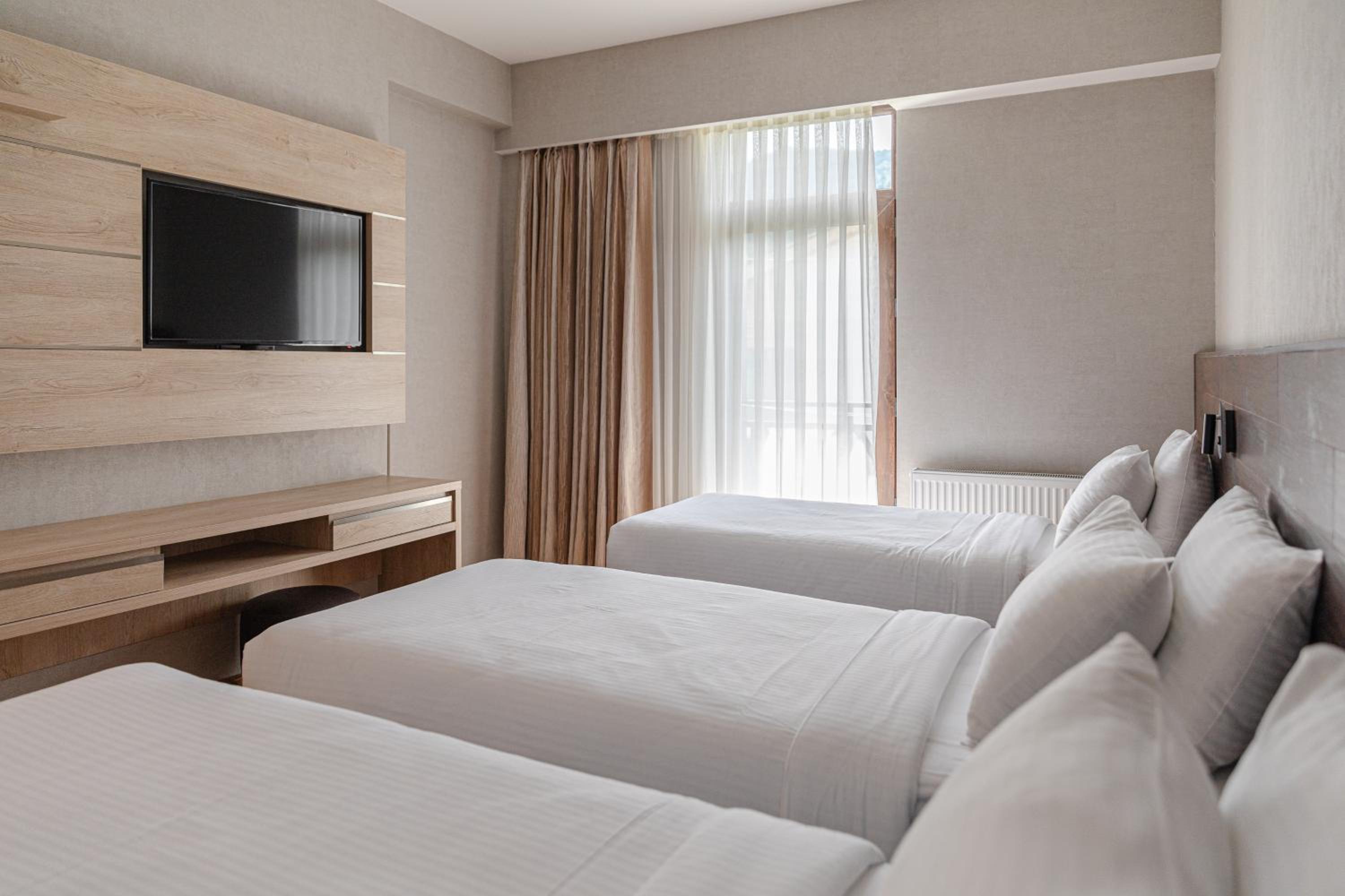 Each room at Hotel 25 Bakuriani is equipped with a desk, private bathroom, free WiFi, flat-screen TV, and a hairdryer, ensuring a convenient and enjoyable stay for all guests.