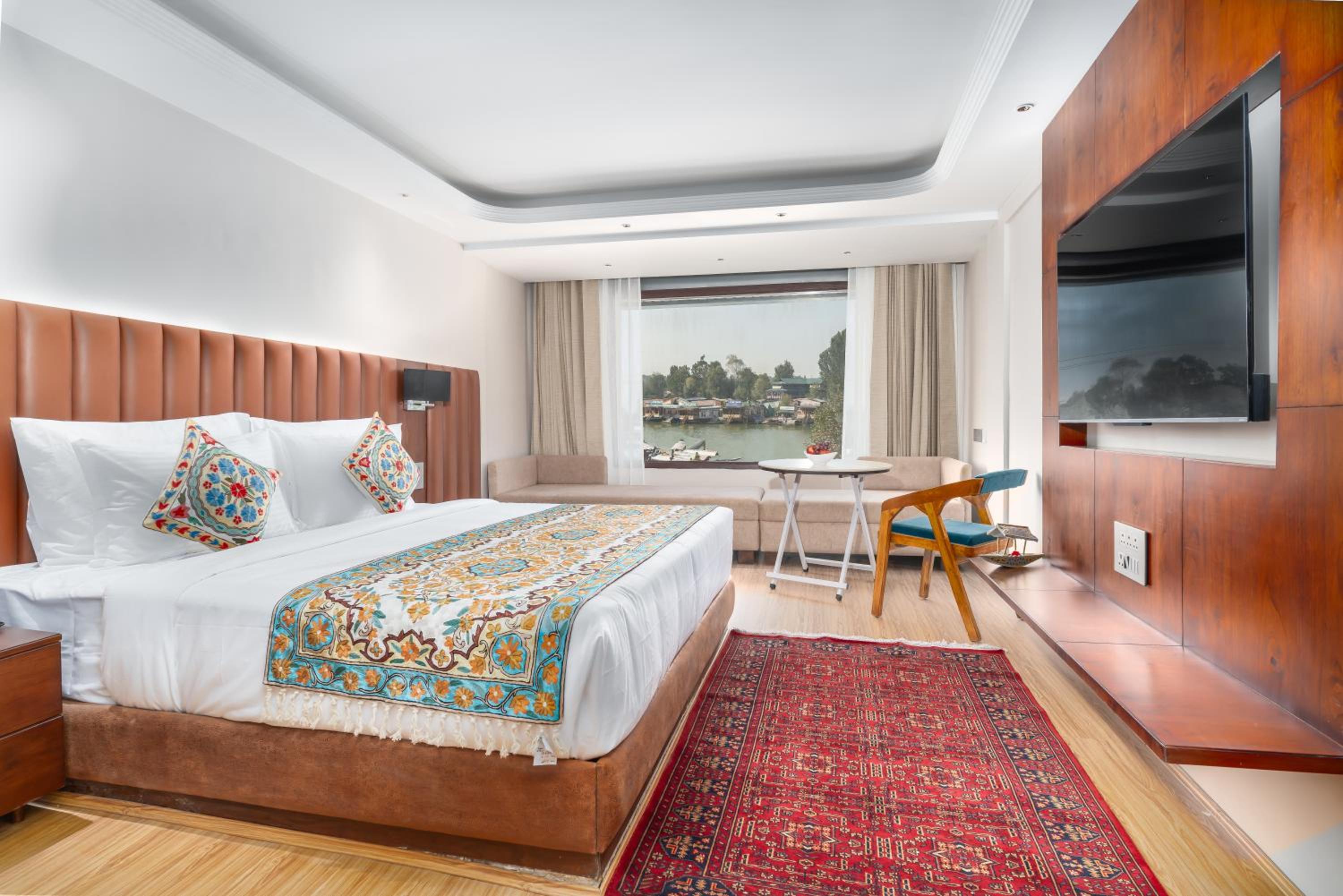 Nice large room with Dal lake view and modern amenities. Comfortable ambience overall and great location for local sightseeing.