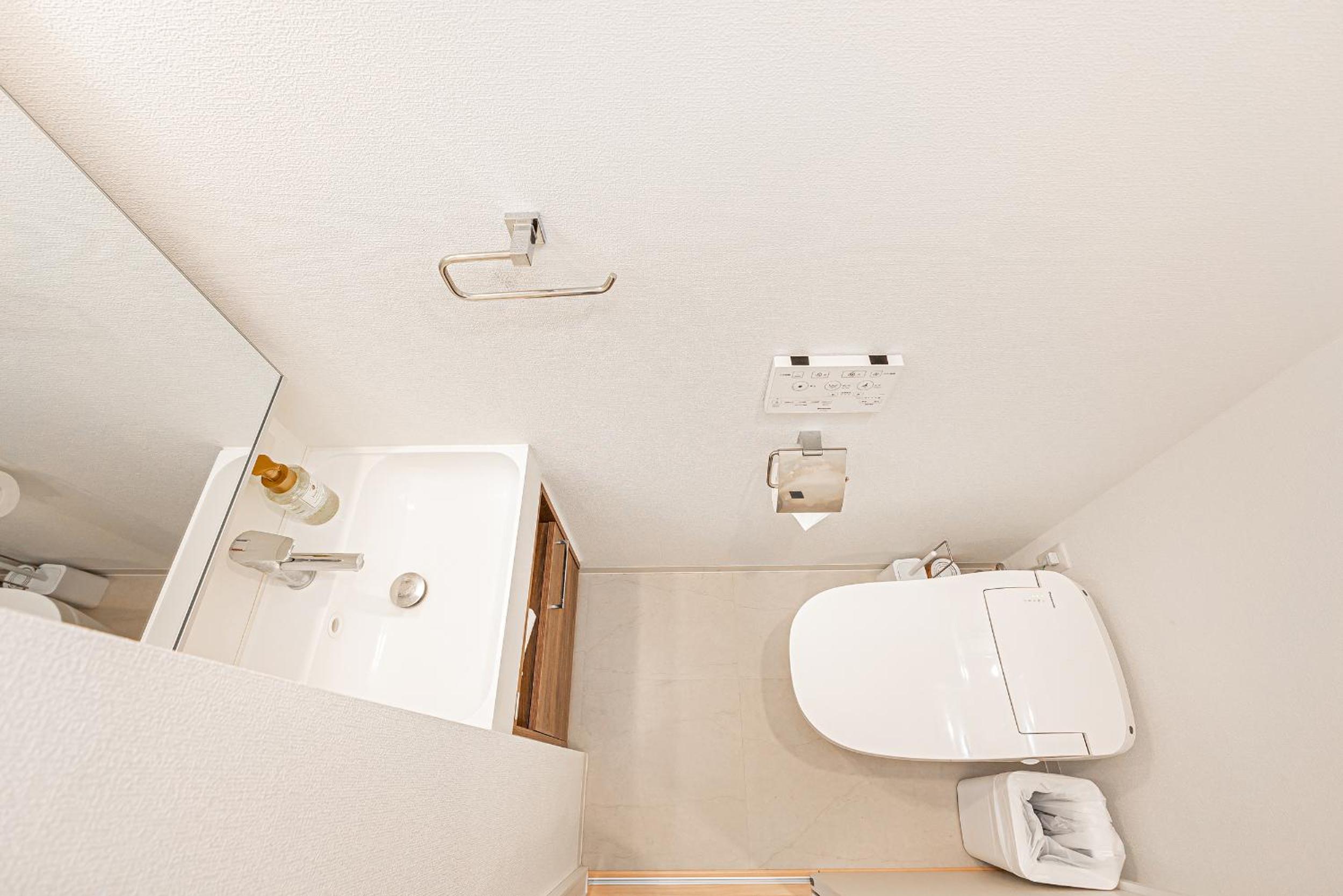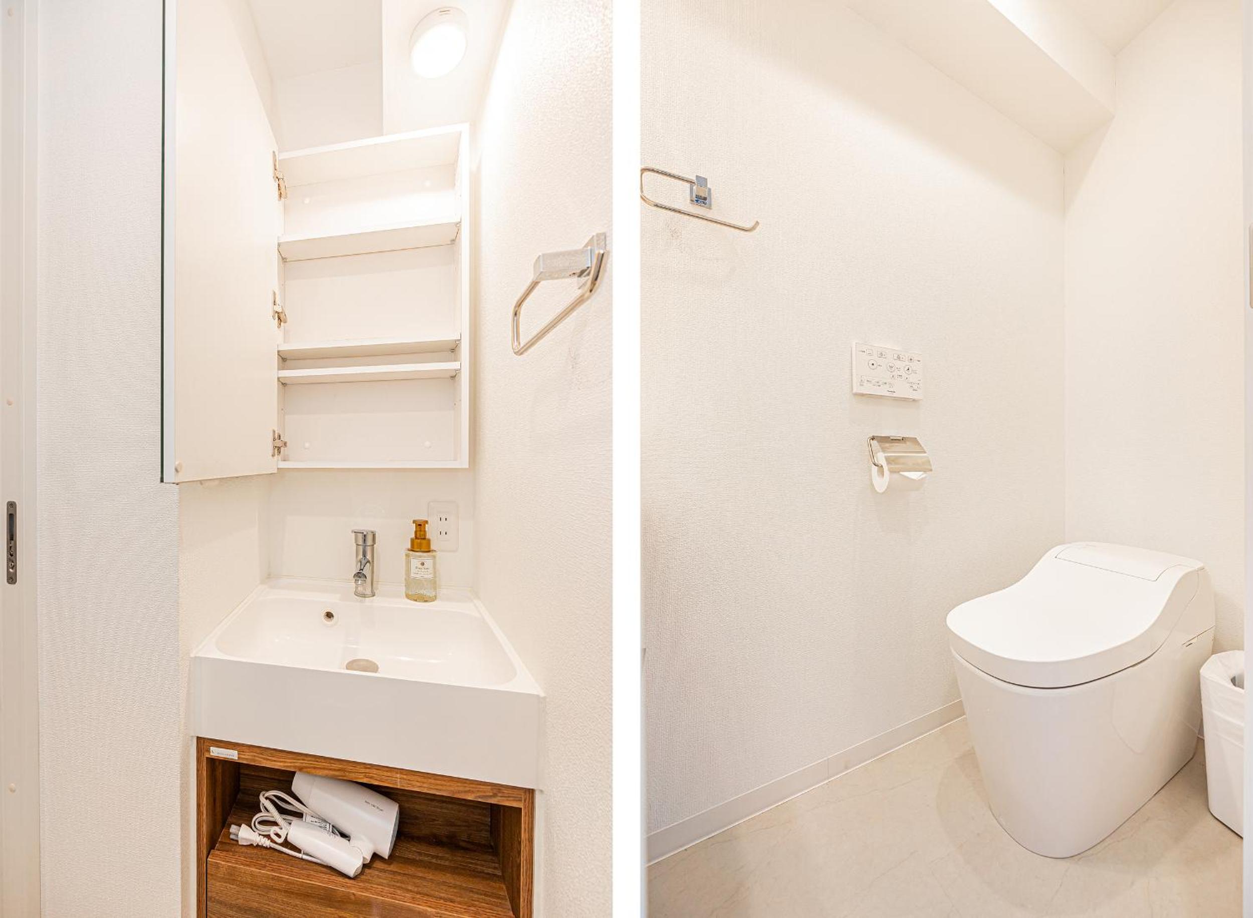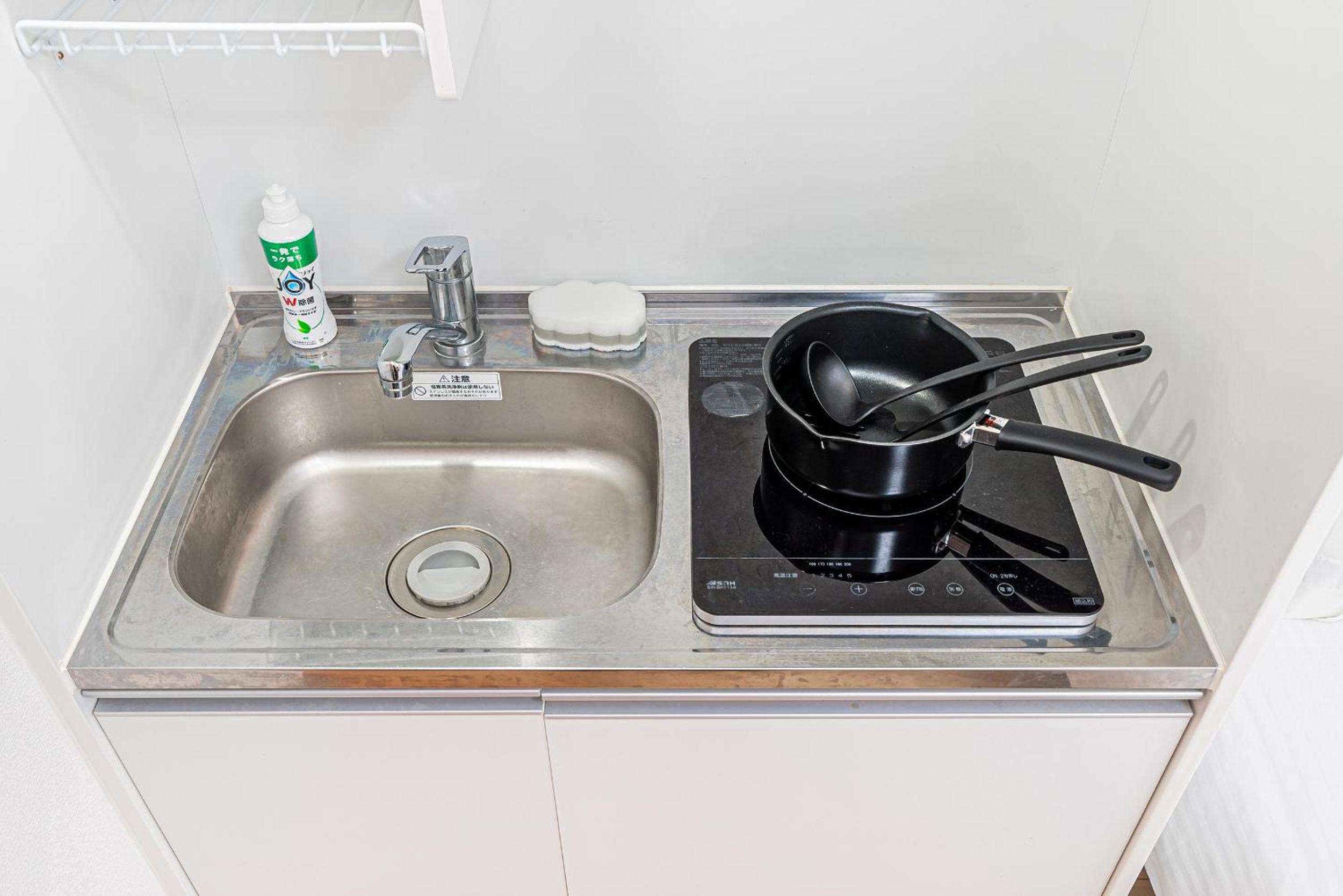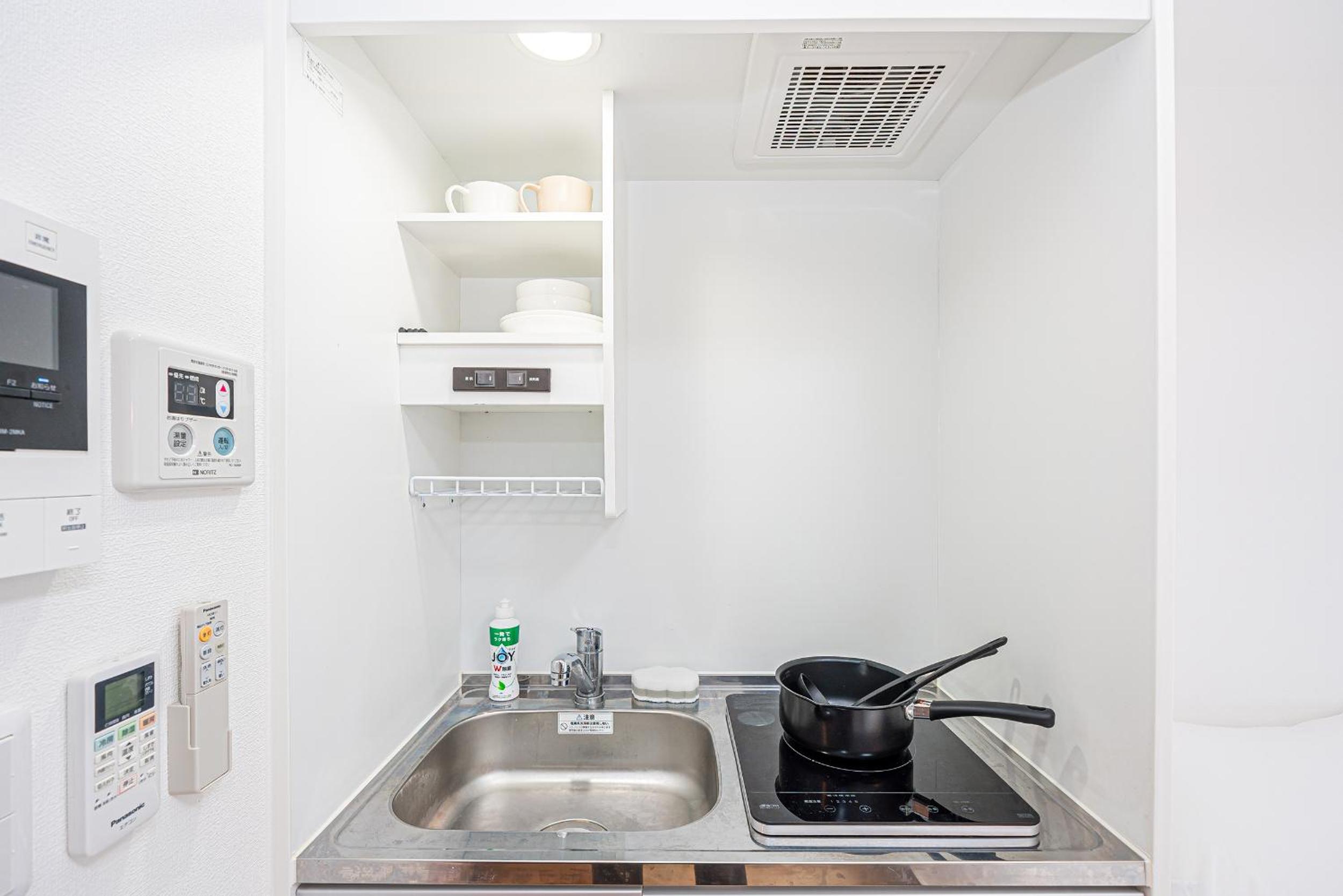 房間很新也很乾淨,設備非常齊全 (洗衣機、電視、冷暖氣、微波爐、電磁爐與餐具鍋具等),消耗品也充足 (沐浴乳洗髮精、衛生紙、洗衣精等)。廁所與淋浴間是分離的。地點超好,周邊有很多便利商店、餐廳及百貨公司,走路五分鐘可到錦糸町車站 (車站前後都有很多餐廳喔)。
