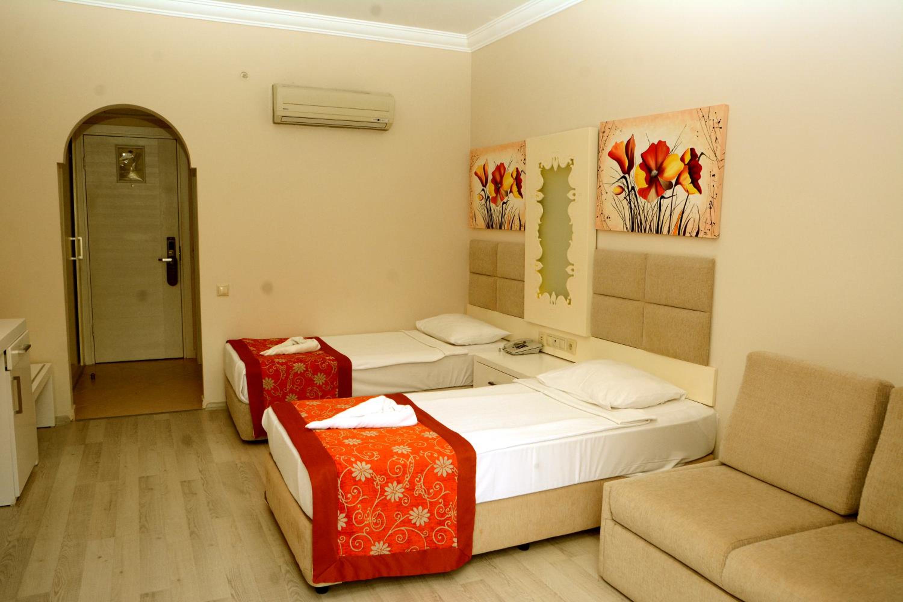 as we checked in the staff didnt give us a warm welcome or care about us. they priorotize their russian customers, which are 90 percent of their visitors. The staff that is managing and in control is rude and brush you off whe you need something. but the ground people, like waiters, bar workers and cleaning staff is friendly still. the entire hotel caters to the russian customers, and despite there being food all day it tasted horrible. it doesnt taste authentic or turkish at all and if you want options outside the hotel there might be 3-4 cafes nearby, but thats about IT. you have to take the taxi to kemer city which is 15-20 minutes by taxi.