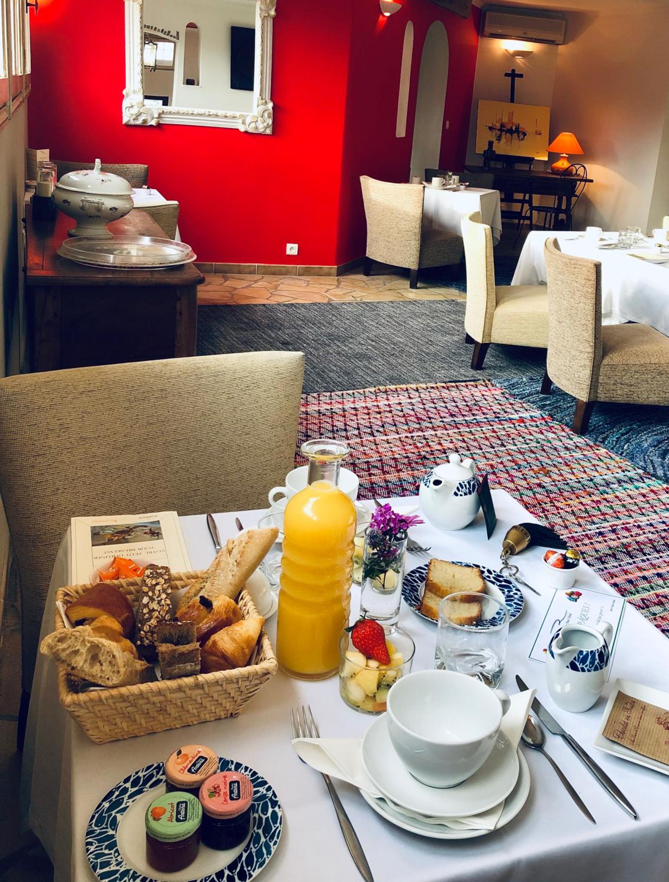 La taille du logement, l'accueil, les petits déjeuners, le calme, le joli parc, la piscine, ...