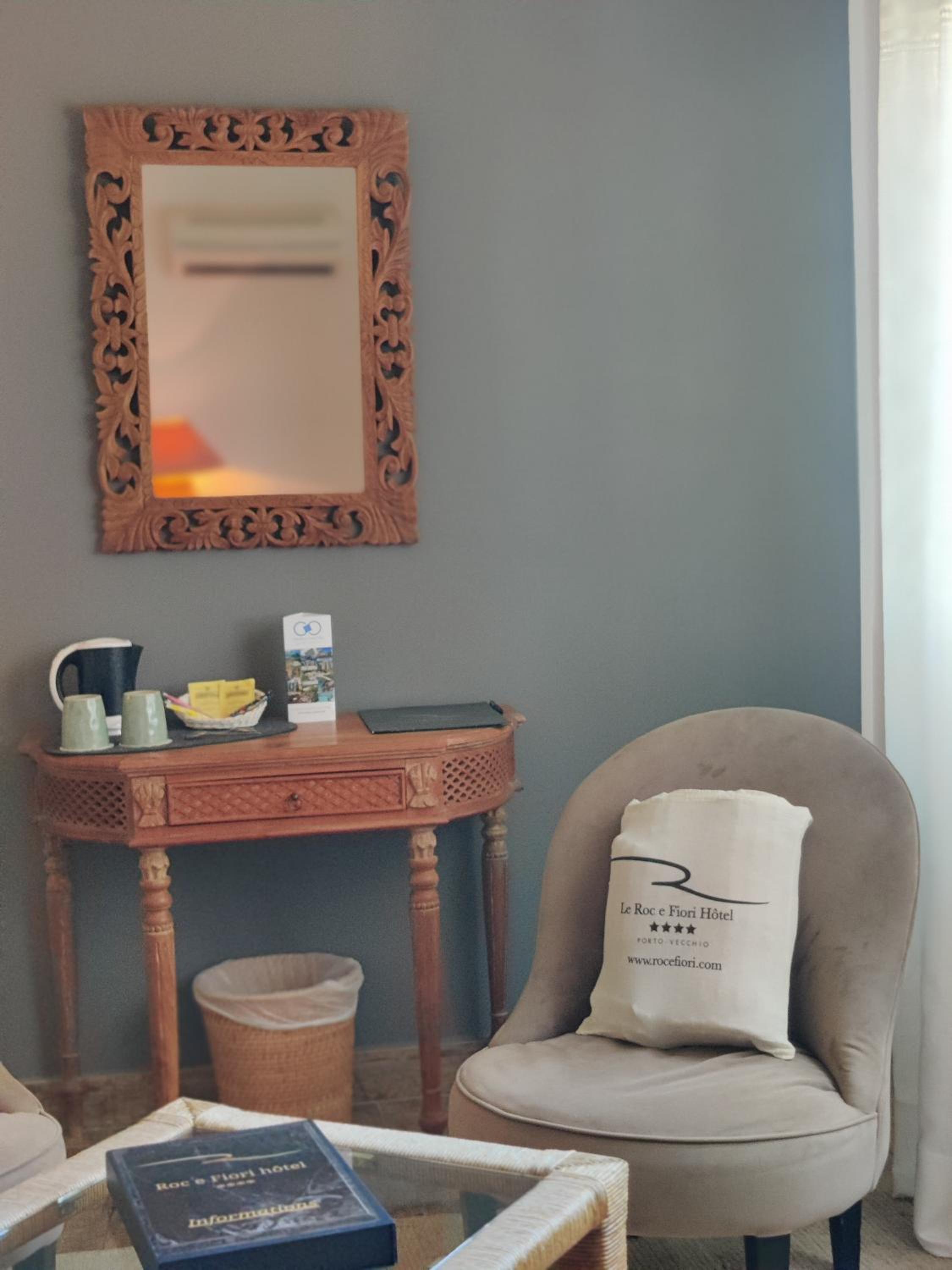 Alexandra and Beatris were very gracious hosts. The ambiance is one of quiet comfort. The grounds are beautifully appointed.The room was spacious and included a lovely deck with a view to the mountains and ocean. Enjoyed coffee every morning on the terrace. The restaurant and bar next door were fantastic in the evening. Beautiful beaches are a short drive away. It was the perfect spot to stay at for exploring southern Corsica.