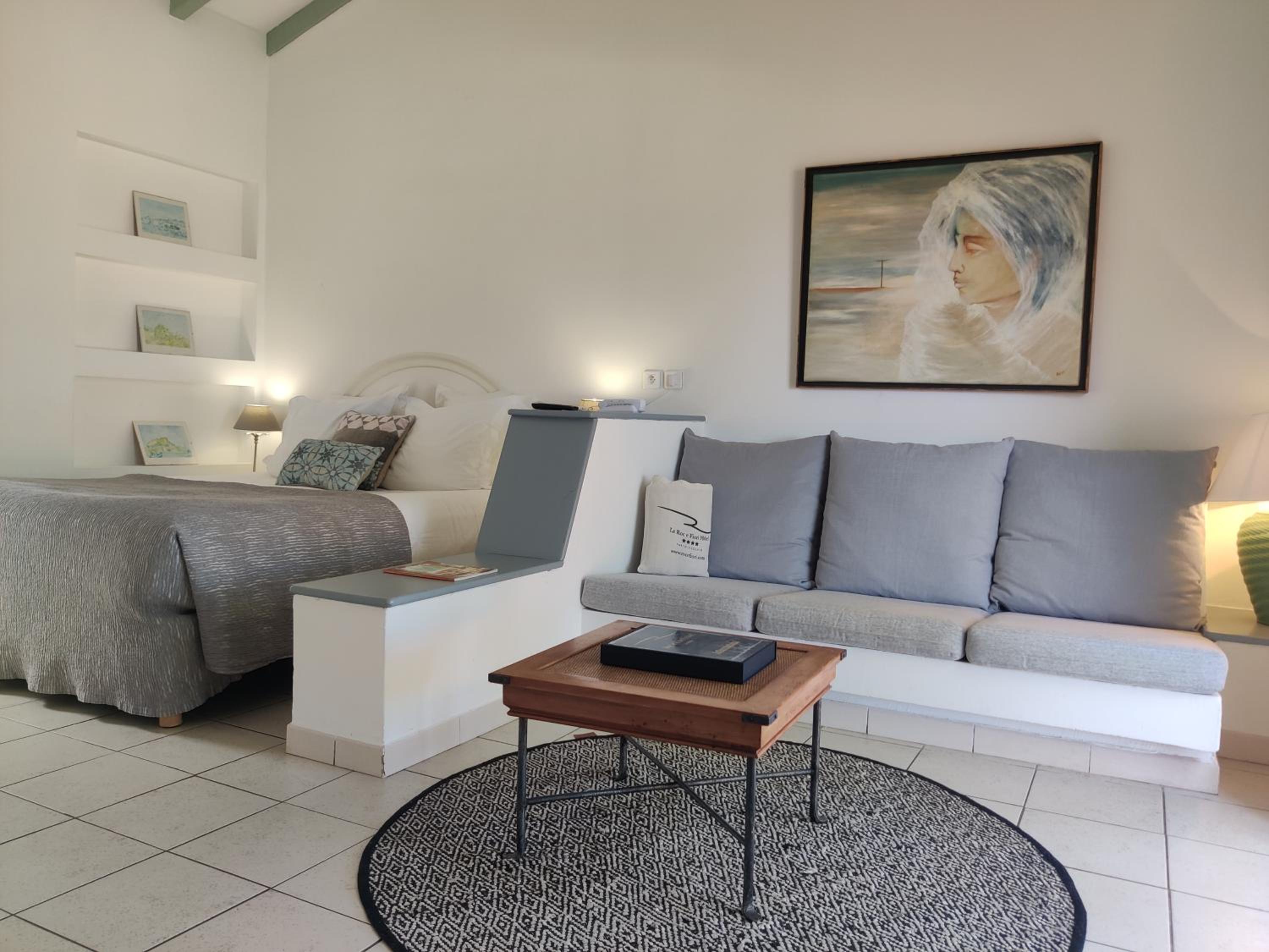 The Roc E Fiori Hotel, nestled near the picturesque Santa Giulia and Palombaggia beaches in Corsica, offers elegantly designed rooms with private terraces overlooking the lush garden and majestic mountains. Each room features a cozy seating area with a flat-screen TV for your entertainment.