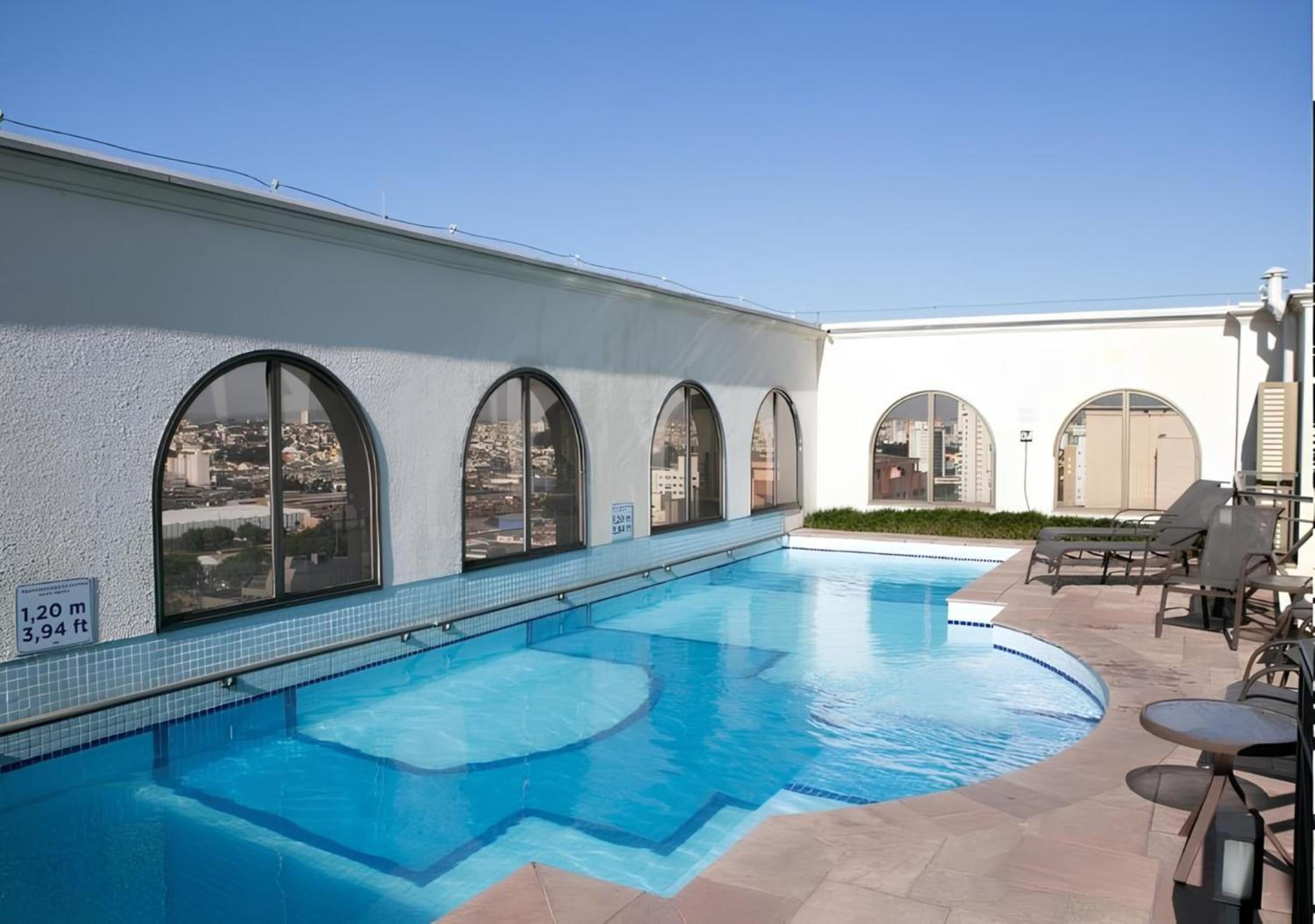 Enjoy a refreshing swim with a stunning city view and relax on your own private balcony at O Melhor Apart-Hotel, da Cidade!