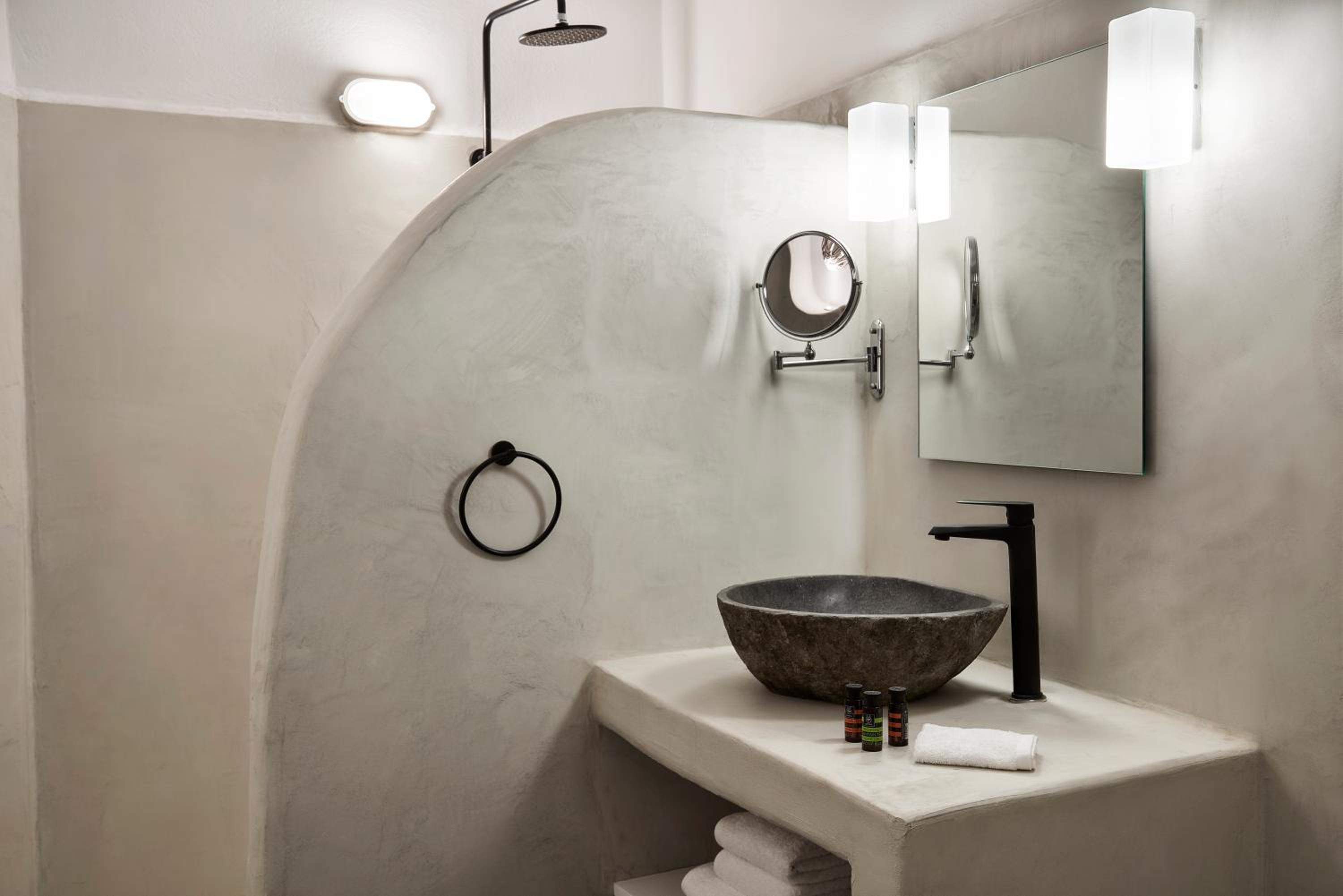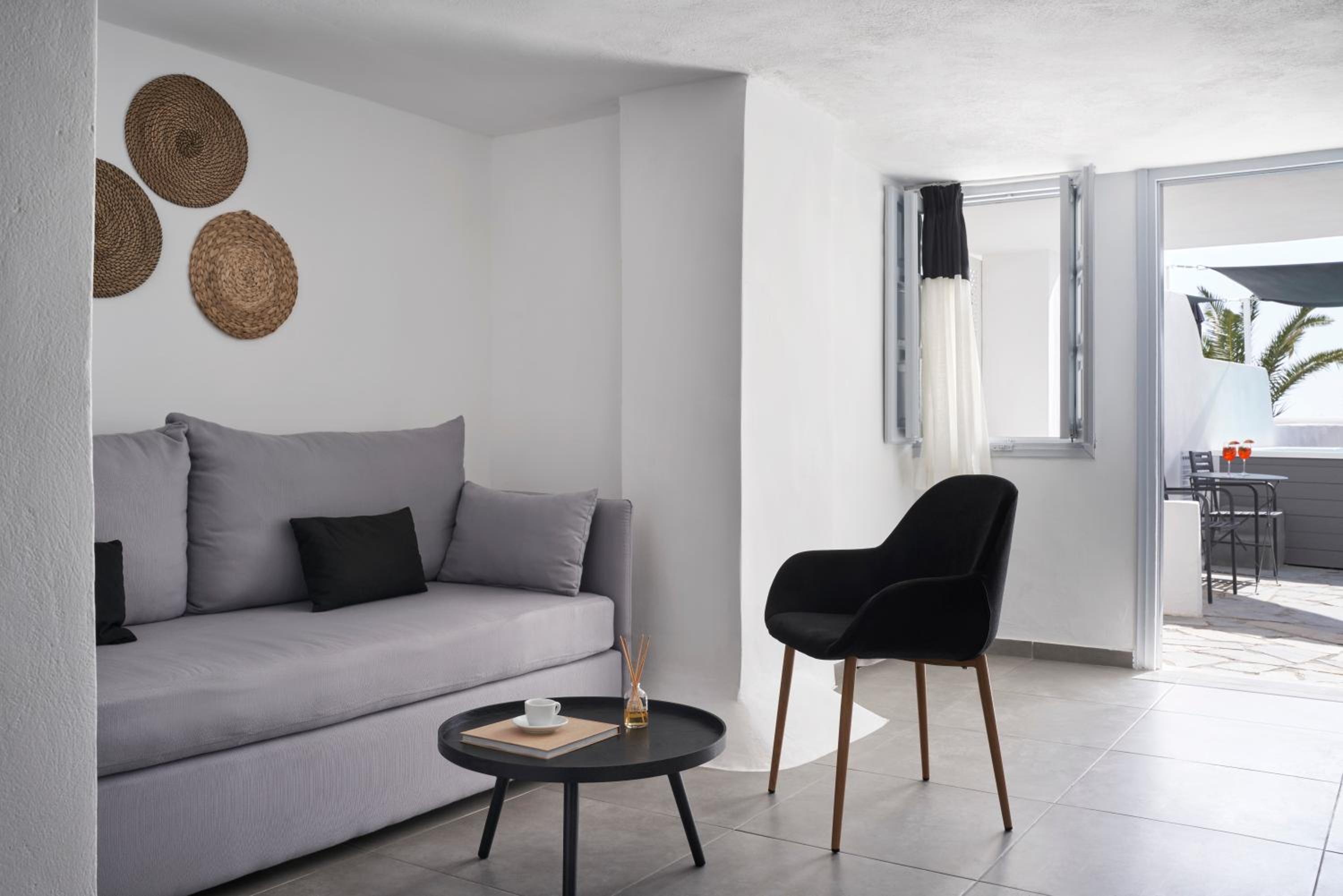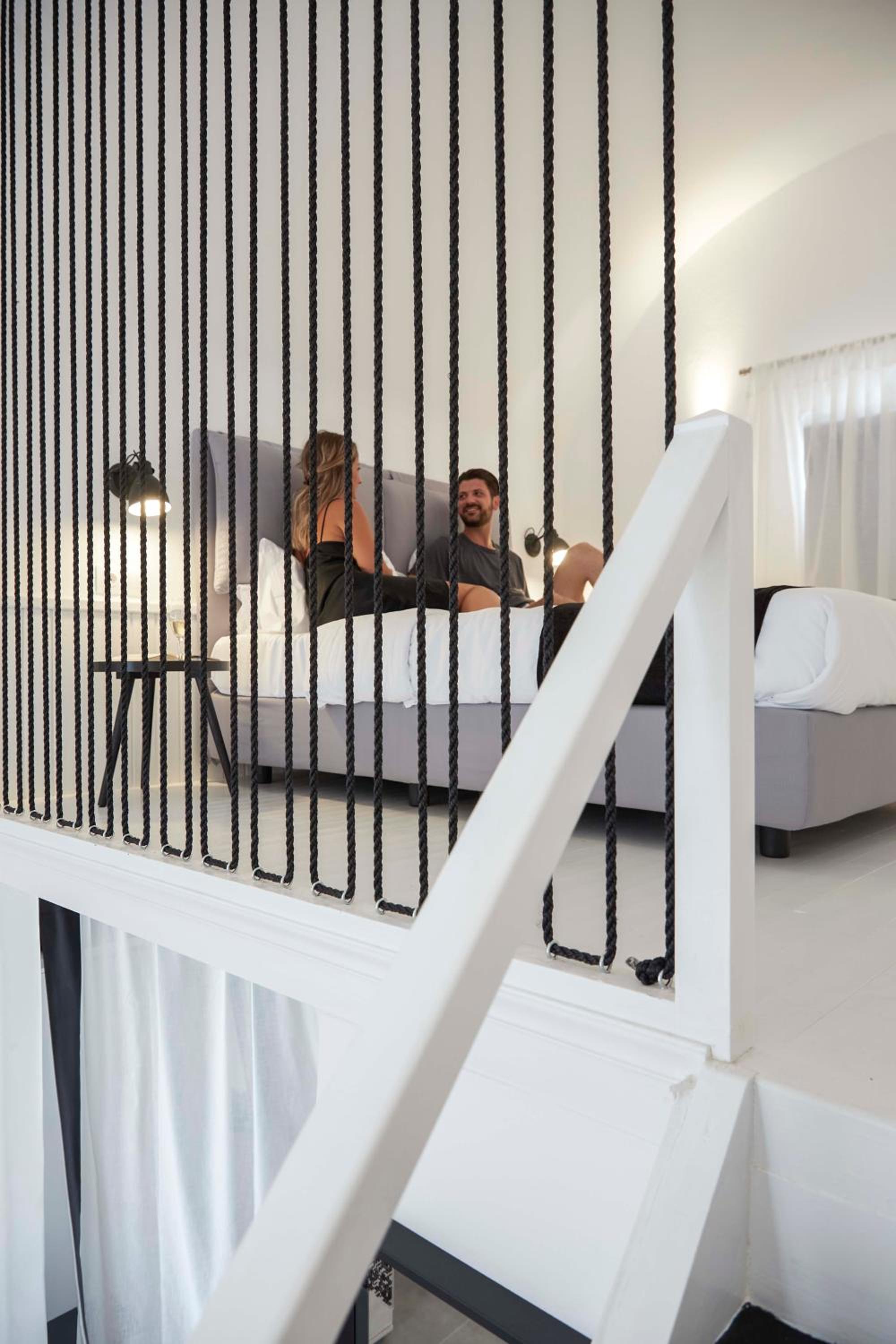 Unwind in Style: Mr and Mrs White Santorini offers air-conditioned rooms with a flat-screen TV, seating area, and modern amenities.
