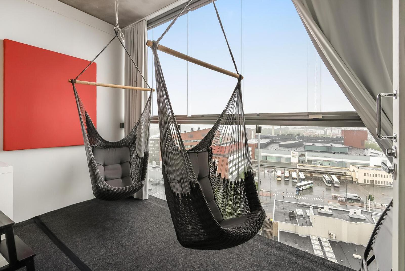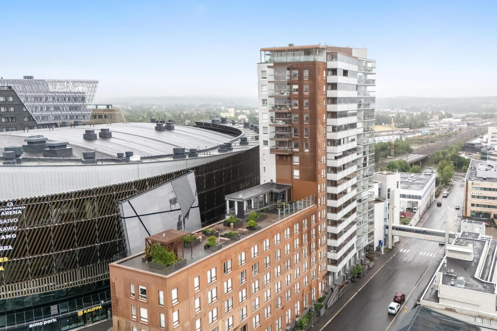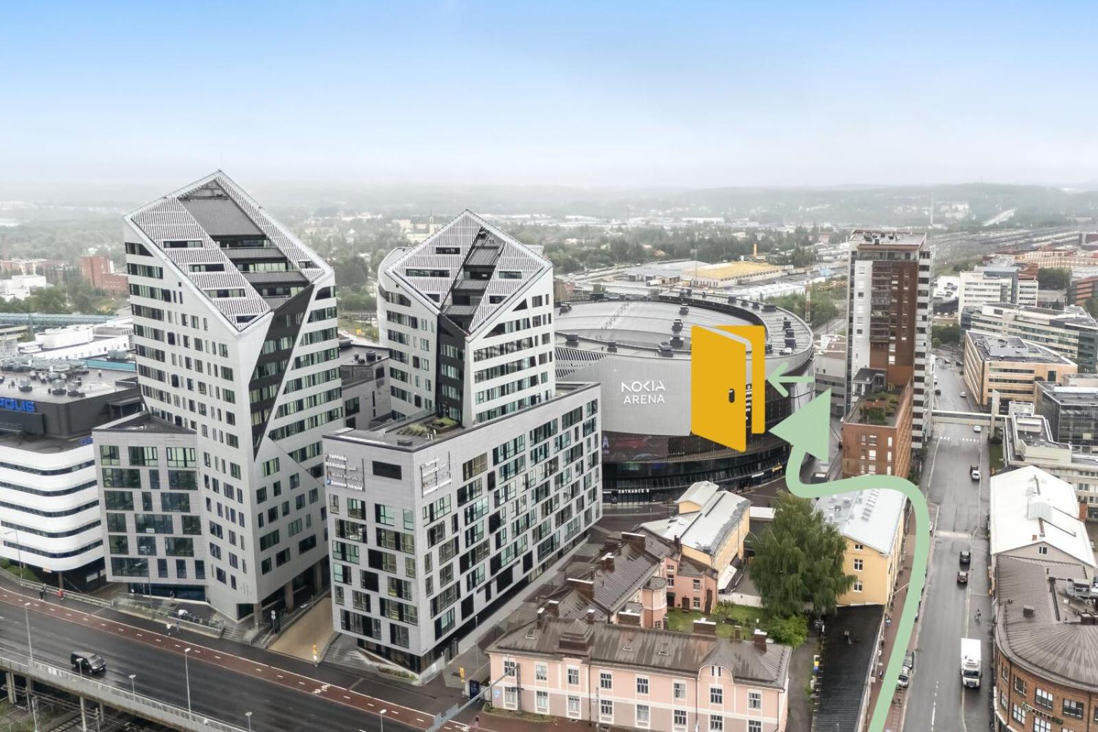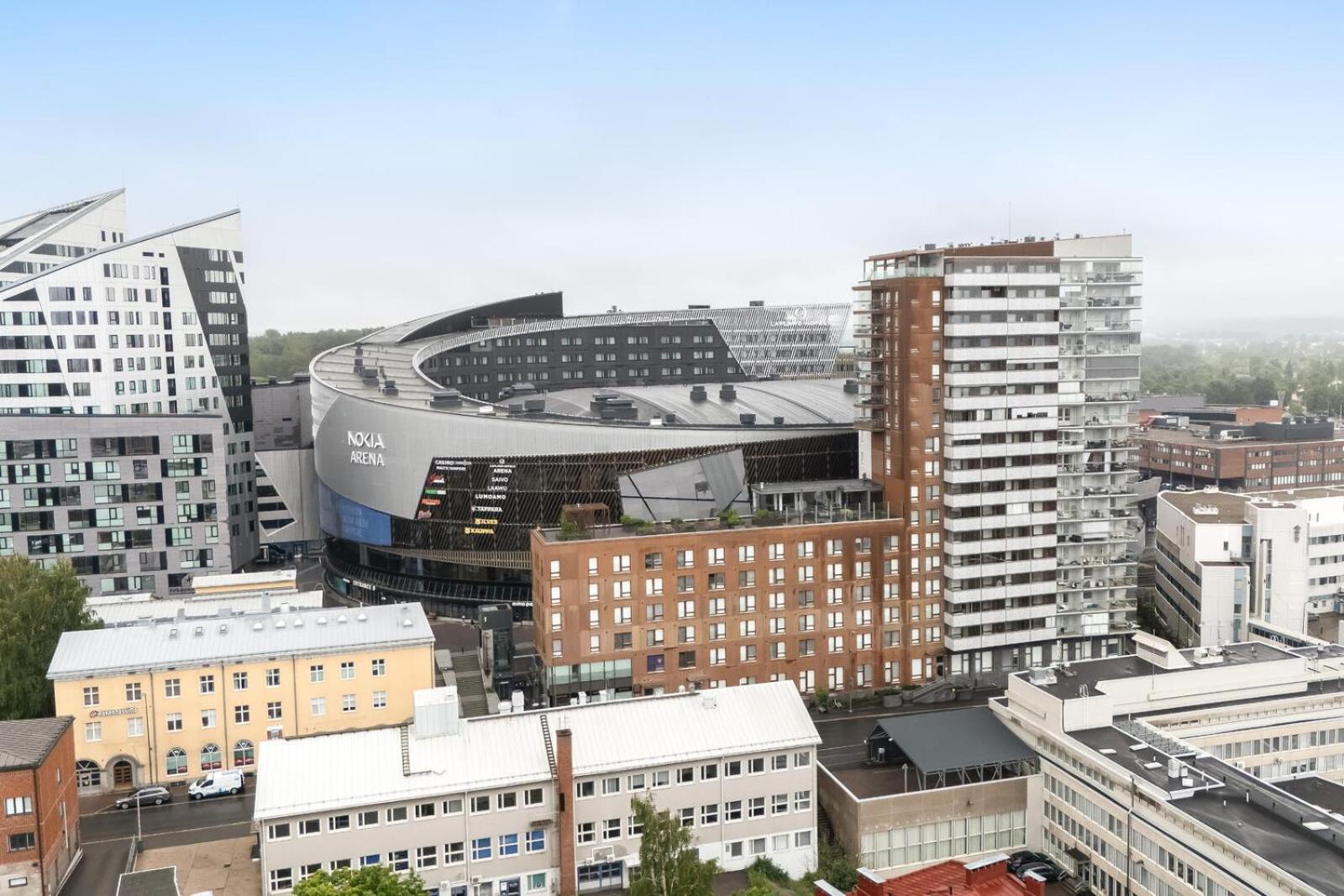 Sijainti oli loistava, kun käytti Nokia Arenan palveluita. Lapset oli huomioitu syöttötuolilla ja matkasängyllä. Viisihenkinen perhe mahtui majoittumaan hyvin!