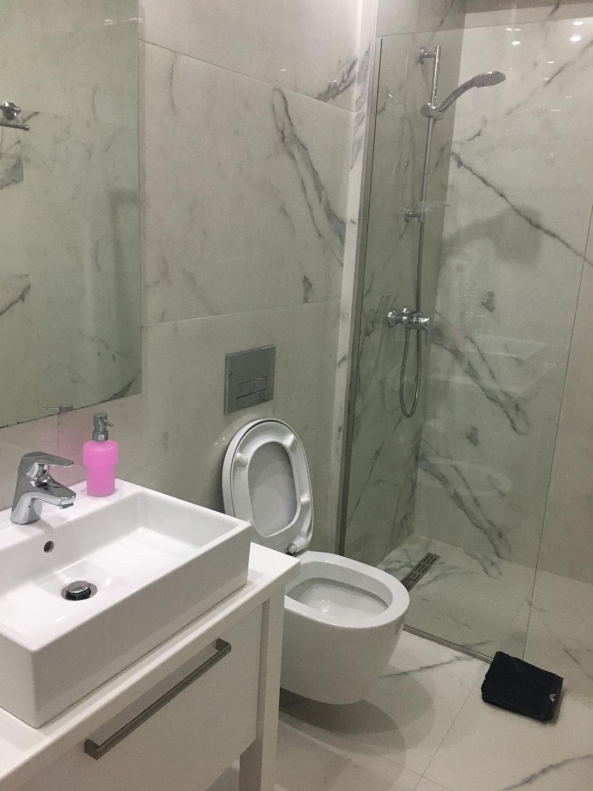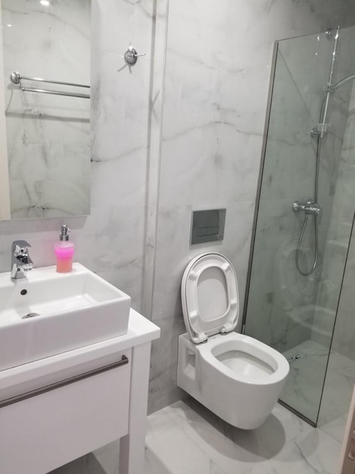 La chasse d eau du wc coule en permanence., pas de produits de douche un simple distributeur de savon